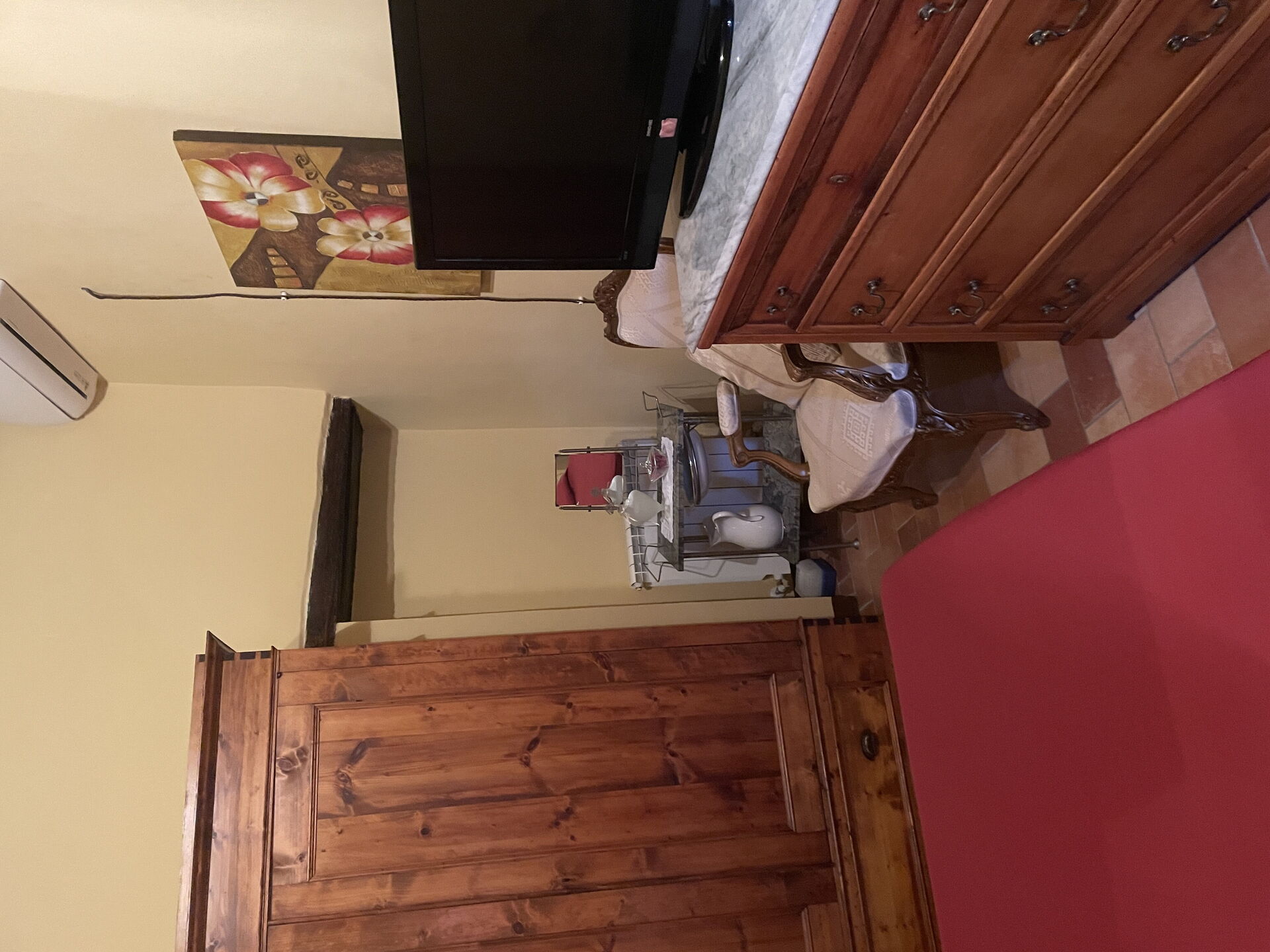Casa la Ruota was indeed a charming property and we had a very pleasant stay. It was very small, but with excellent weather we did not need a larger property. The garden and pool were lovely and we spent a great deal of time there. Duddova itself is tiny with no village shop although there is a nice restaurant. The downsides of the property were that there was no satellite TV or DVD player and the aircon was too loud to have on at night. A few fans would have been more effective. The owner very kindly provided us with some essentials as we arrived . We would go back to this charming residence, but a DVD player would be a cheap addition that would be very welcome for those evenings we weren't eating out.