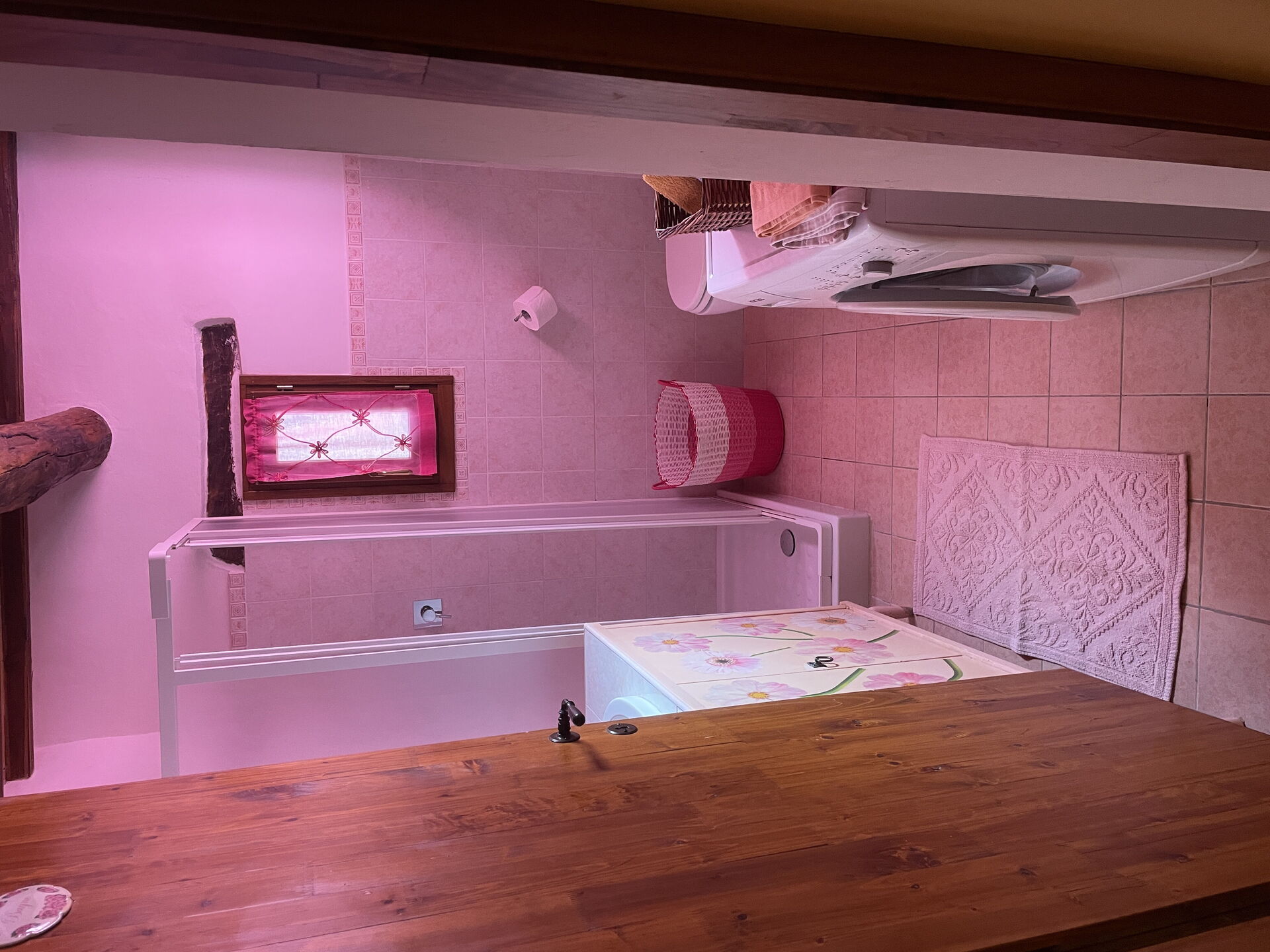3 steps lower: bathroom with shower and washing machine.