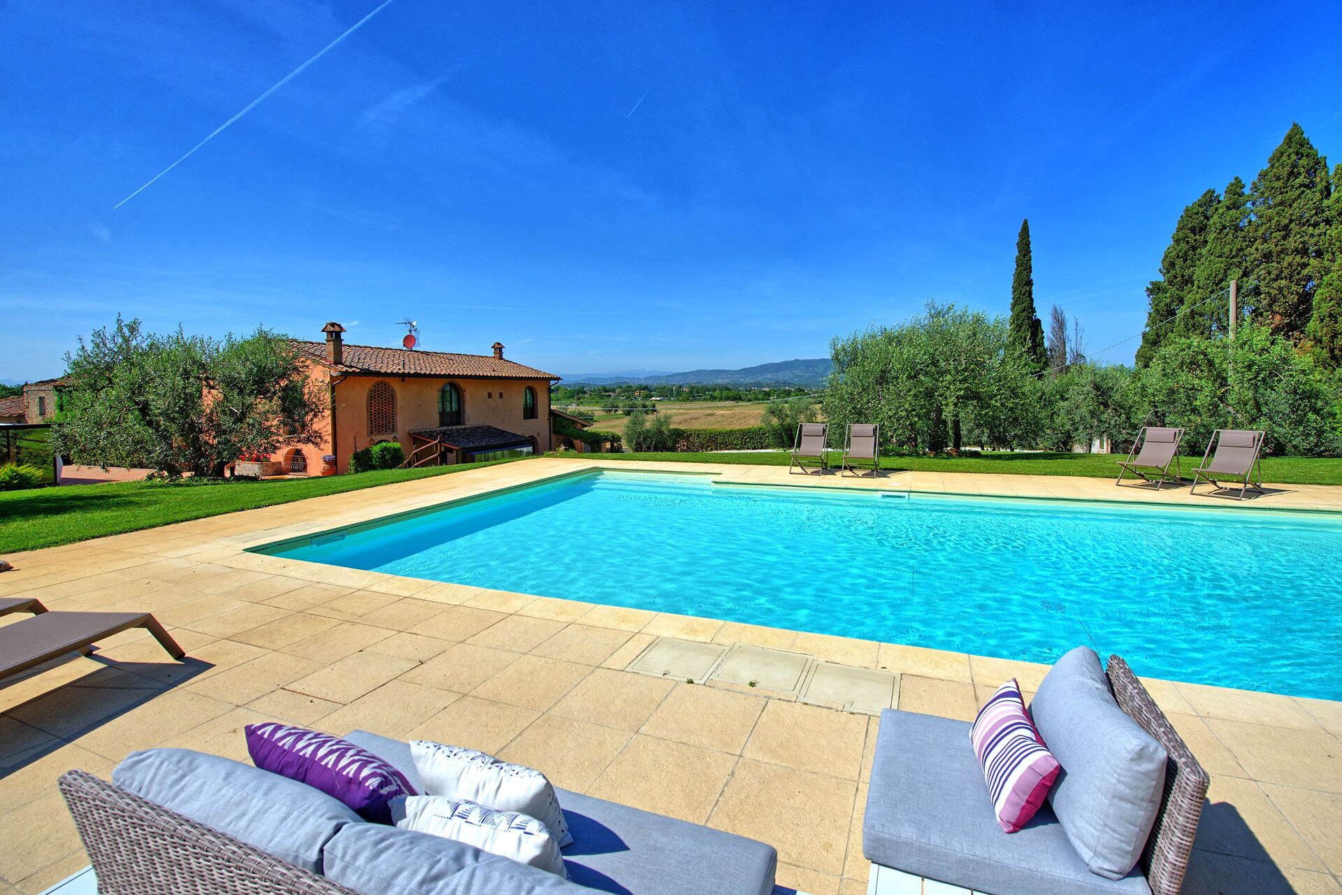 Villa Nora is particularly comfortable and tastefully furnished. Outside, together with a large porch and terraces, there are extensive gardens and a generously sized private swimming pool. The private swimming pool will be the perfect oasis to spend relaxing hours under the Tuscan sun with family or friends.