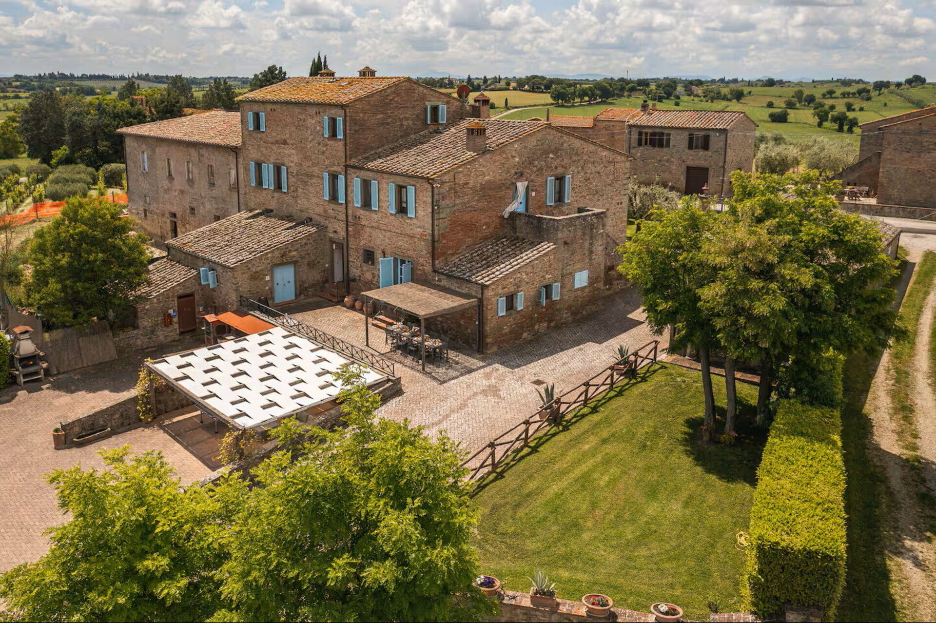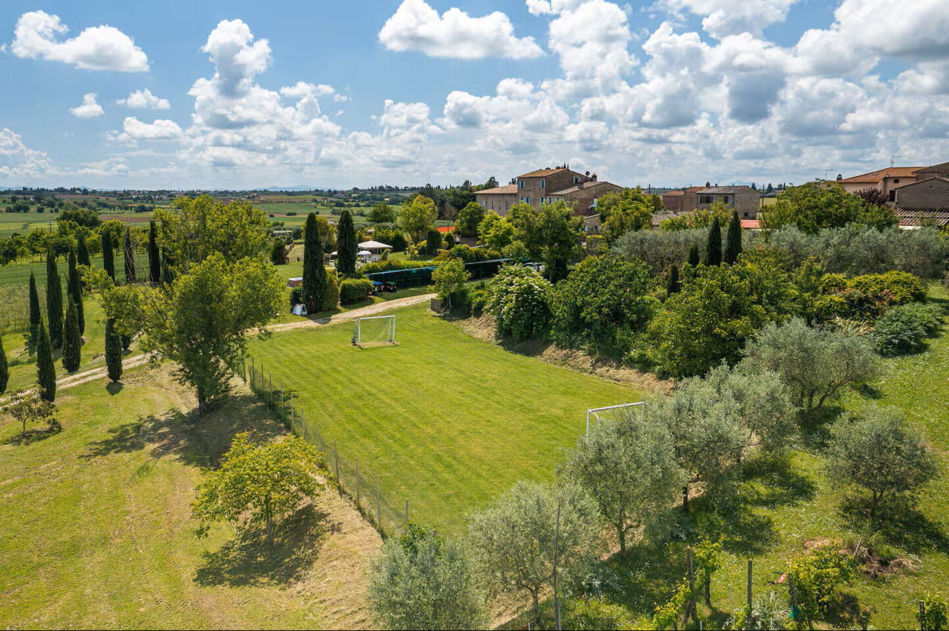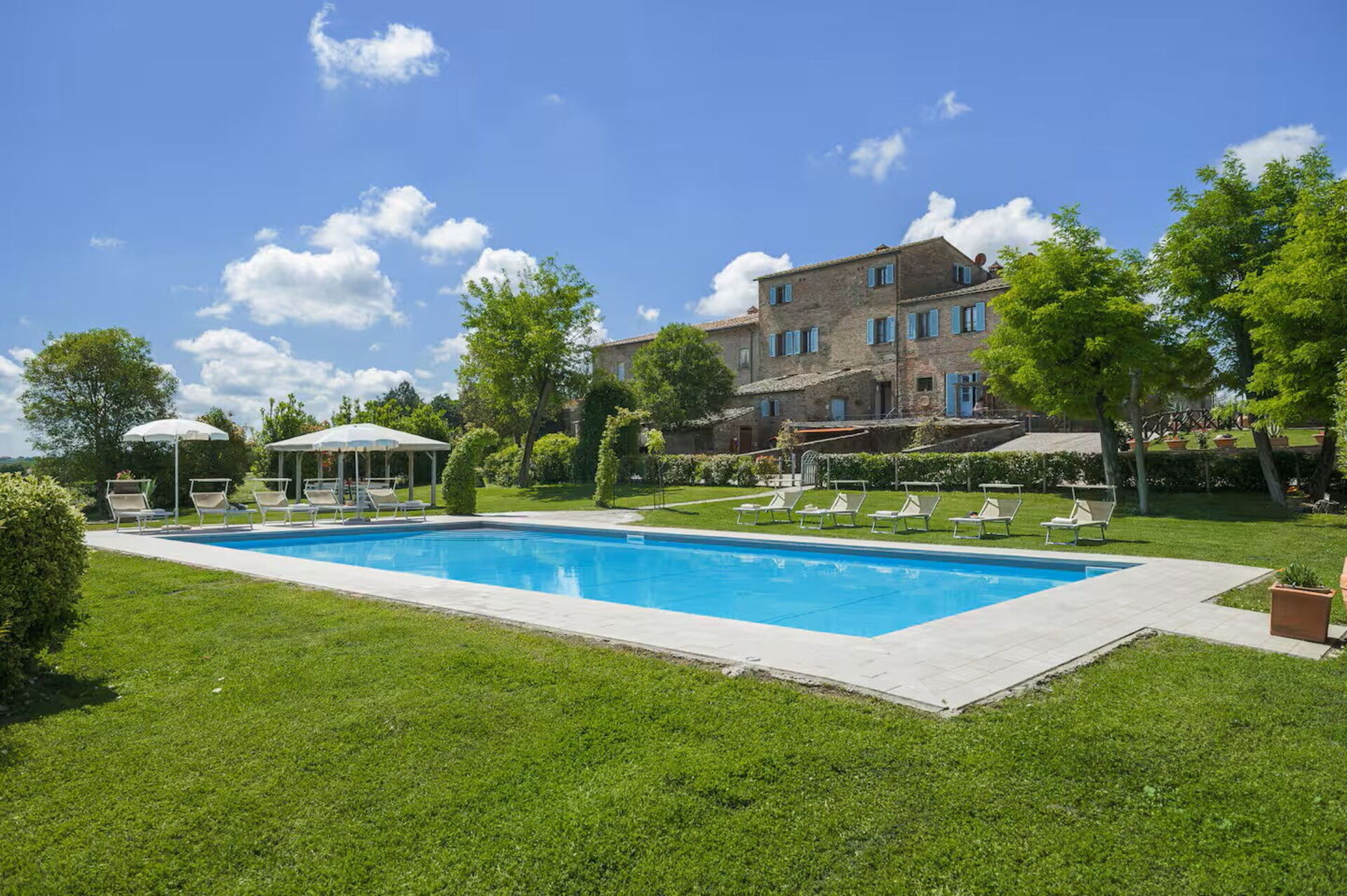 This large villa easily accommodated our group of 18 people. We had plenty of space to spread out aided by the fact that each apartment in the villa had its own bathroom and kitchen. There's also a main kitchen for nights when people want to cook together. The outdoor spaces are amazing - we were able to find cool, shady spots to congregate in throughout the day and the views from the pool can't be beat. Speaking of the pool, it was a godsend, as Tuscany was in the grips of a heatwave that week. Wasn't hard to soak in the pool with friends while taking in the view of Cortona. Our host, Isolina, was great as well - we had a problem with the air conditioners in a couple of rooms the first day and she was unrelenting in her efforts to fix them. Much appreciated! She also was able to sell us excellent and reasonably-priced wine on site, as well as offering olive oil produced on the farm itself. She made herself available for any questions or issues we might have - excellent service. Lastly, the village of Fratticciola is small and quiet, but near everything - you can easily take trips to Cortono, Sienna, Florence, Assisi, Arezzo, Montepulciano, etc. It was great to visit these locations and then escape the tourists to come home (and inevitably jump in the pool). It was hard to leave.