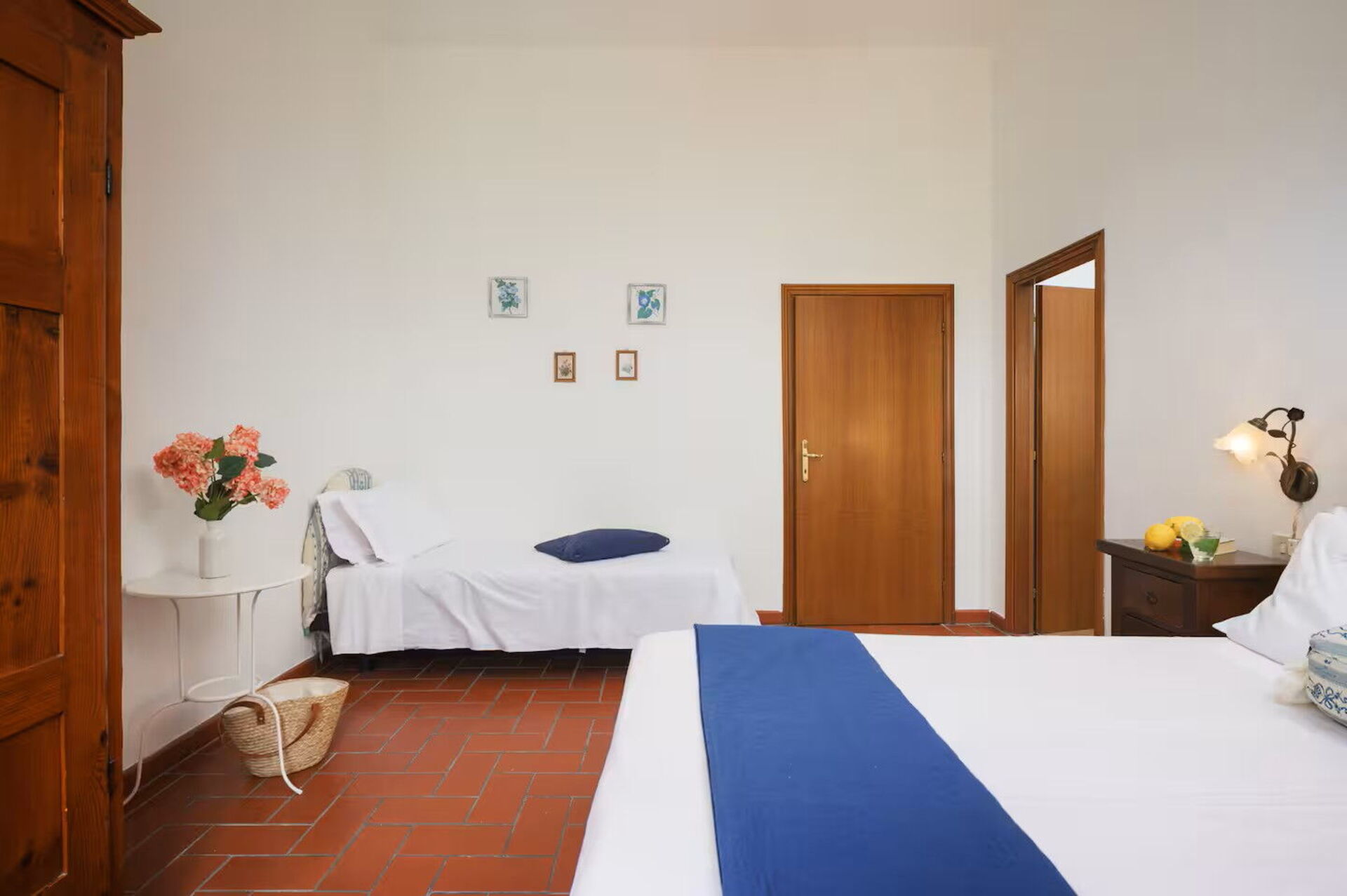 First floor: kitchen, large room with double bed and a single bed with air conditiong, bathroom with shower.