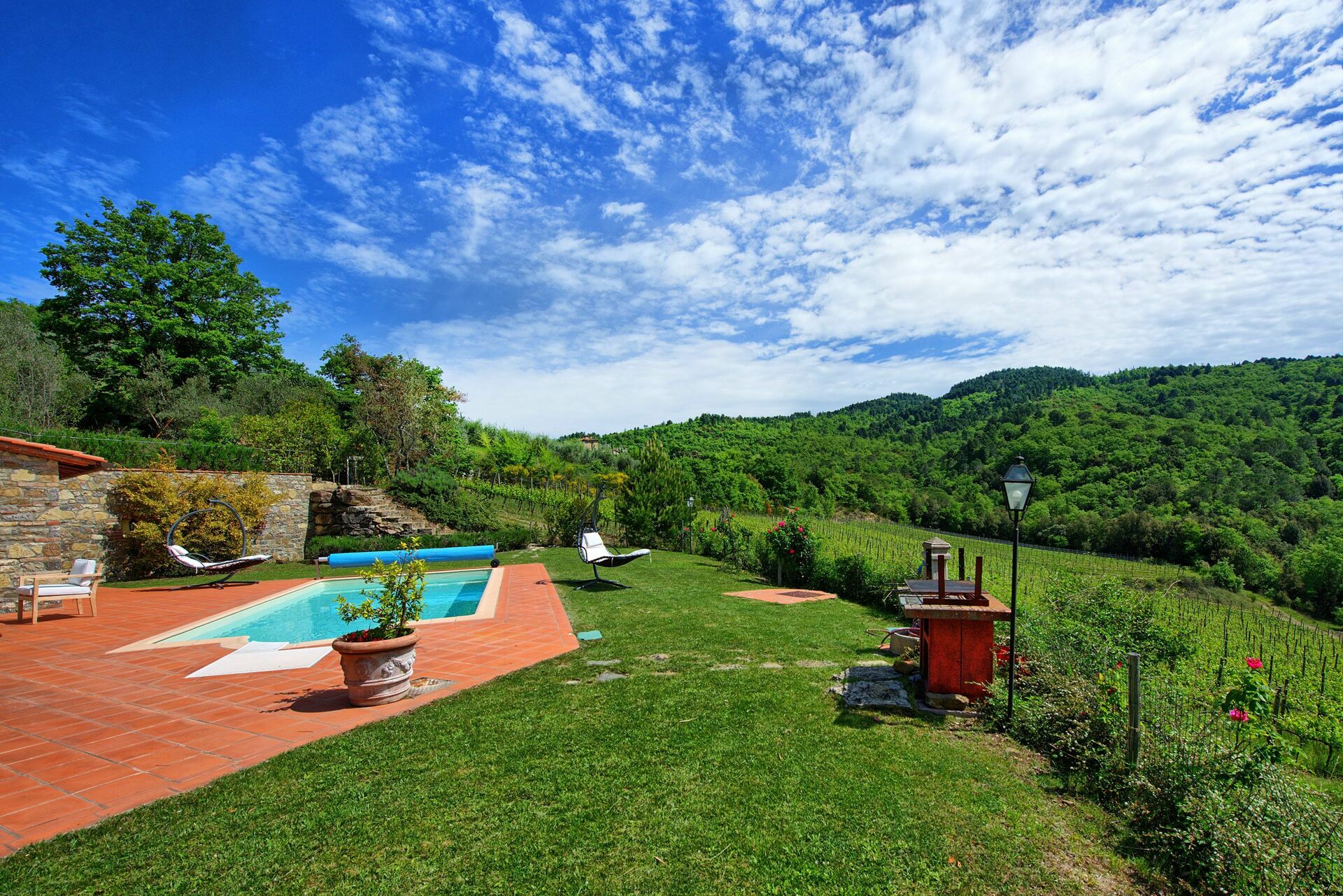 This villa, nestling deep in quiet position among vineyards and woods, offers full privacy and is the ideal place for those who seek a relaxing stay in contact with nature.