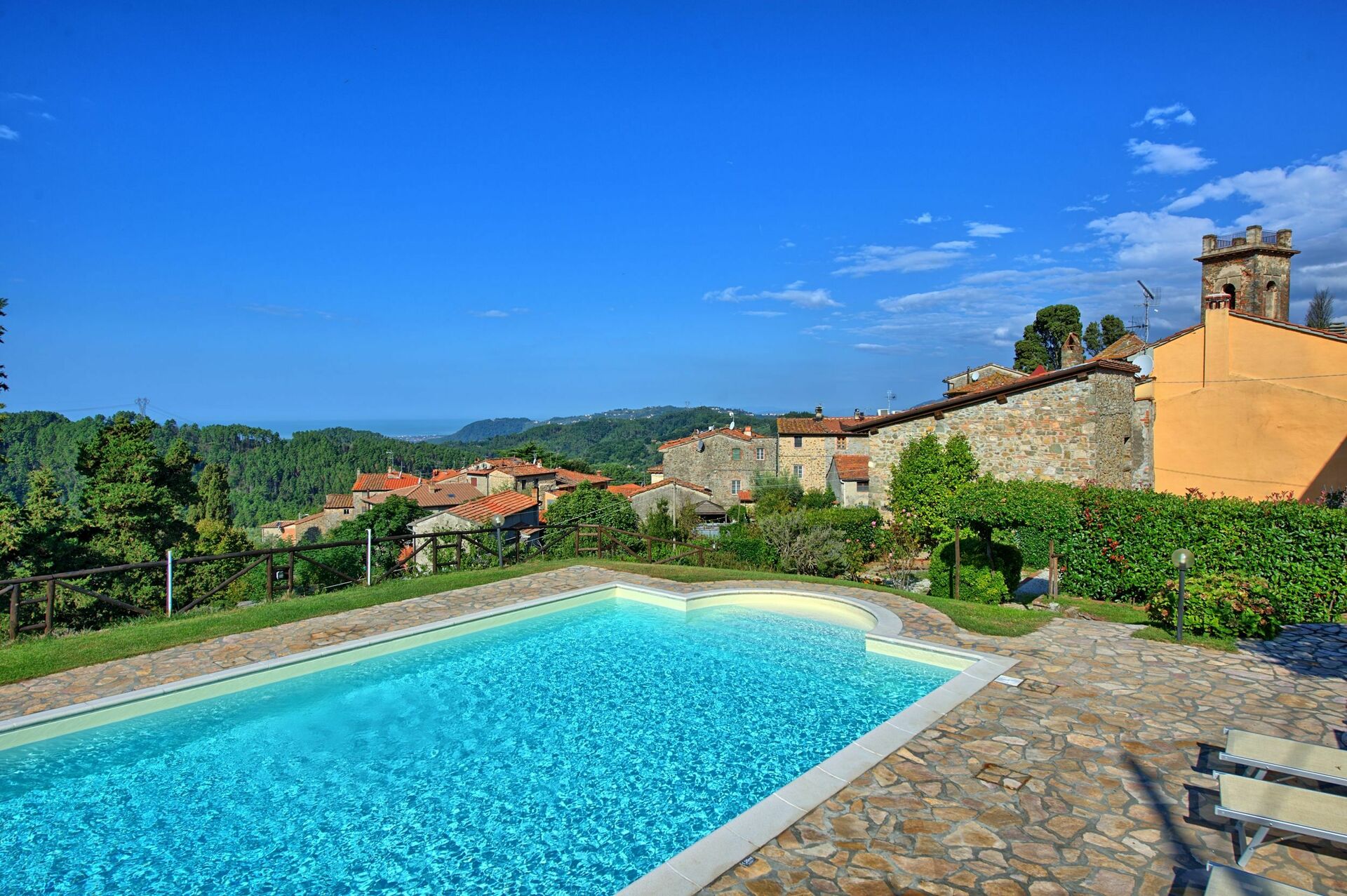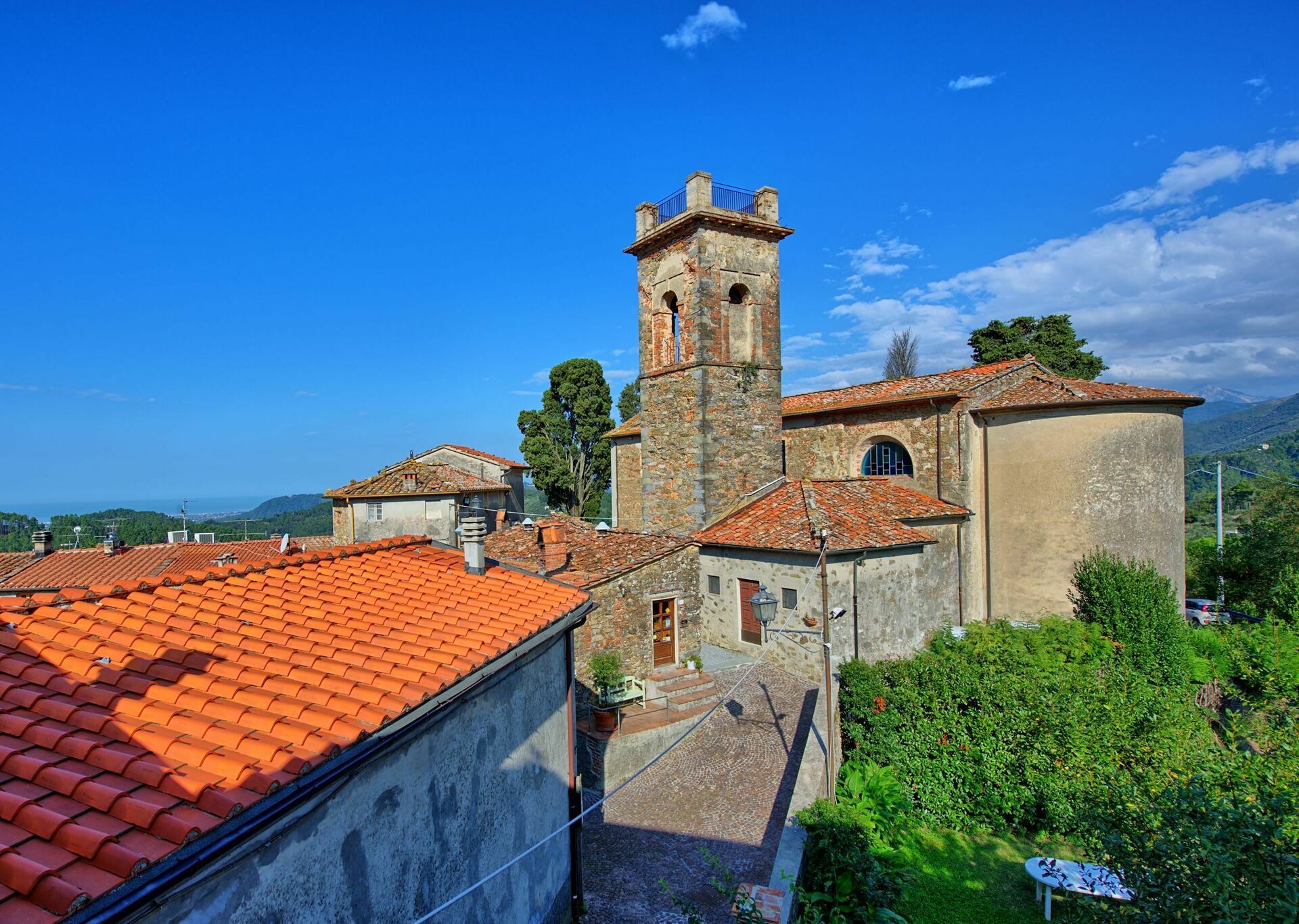 The 8 apartments for rent that make up this property lie in a charming and characteristic village upon the hills of Lucca that dates back to the 1400’s. Located in the gorgeous territory of the Tuscany region, this beautiful apartment rental offers a exclusive panoramic view over the charming landscape of tuscan coastline and islands and allows you to take advantage of the natural, historical and enogastronomical features of this beautiful location in Tuscany.