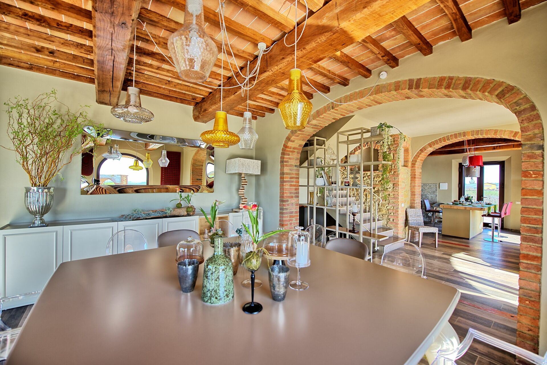 This wonderful villa with huge and private swimming pool is located in the beautiful area of Valdera a few kilometers from Volterra: it has 5 bedrooms, 5 bathrooms and many outdoor areas equipped to enjoy the view and the beautiful location. Situated on a hill it has a beautiful 360° view and a large swimming pool overlooking a lake and the hills of the owner's large farm.