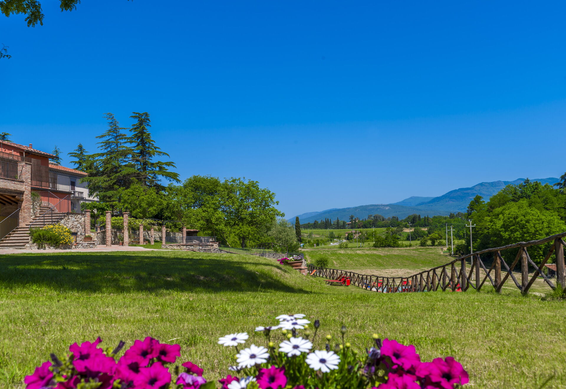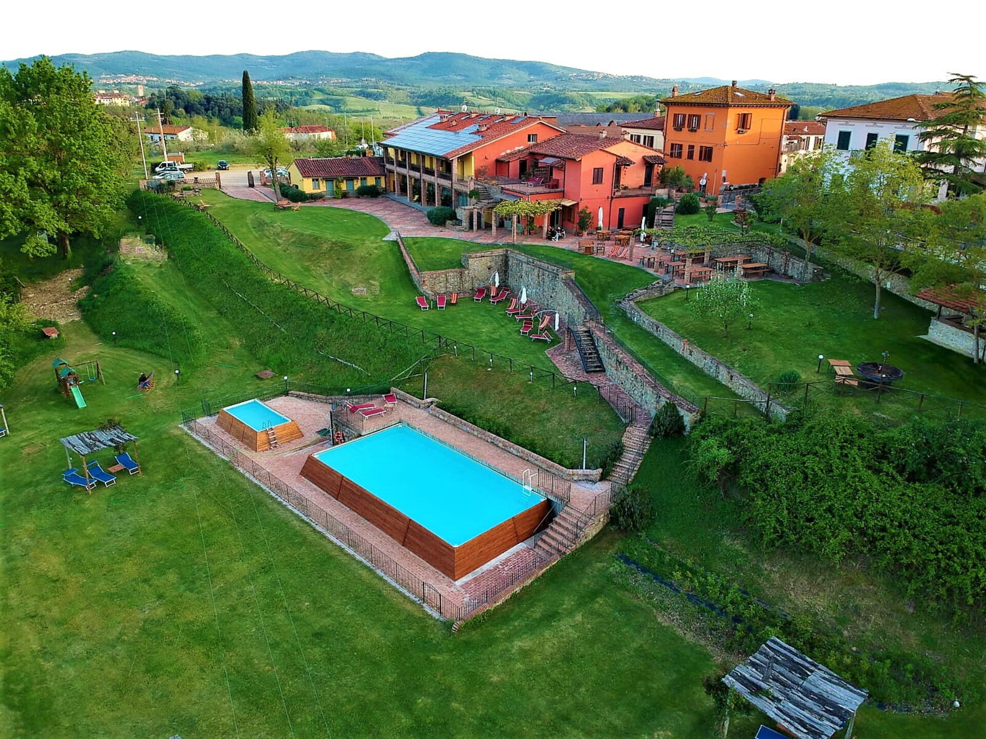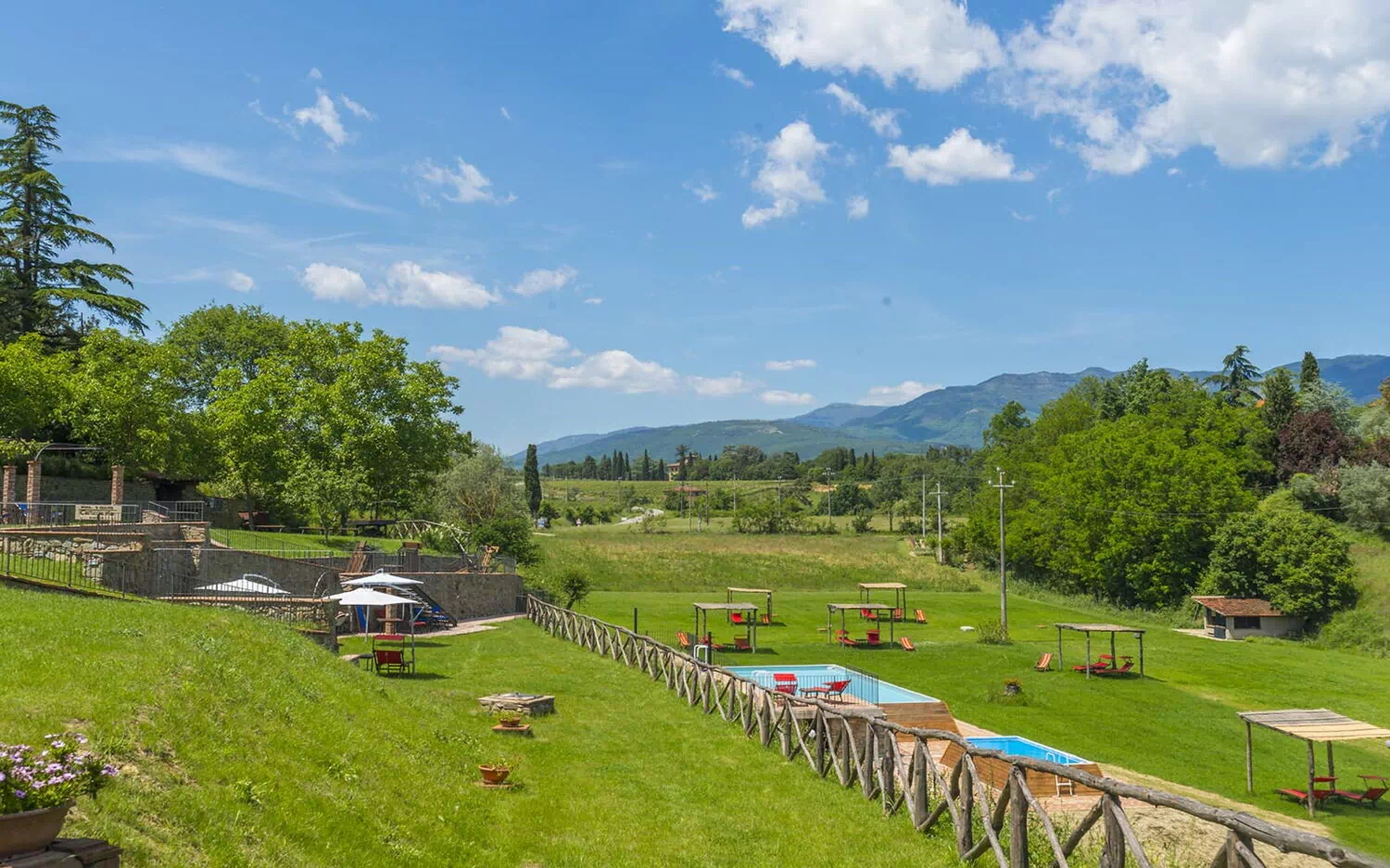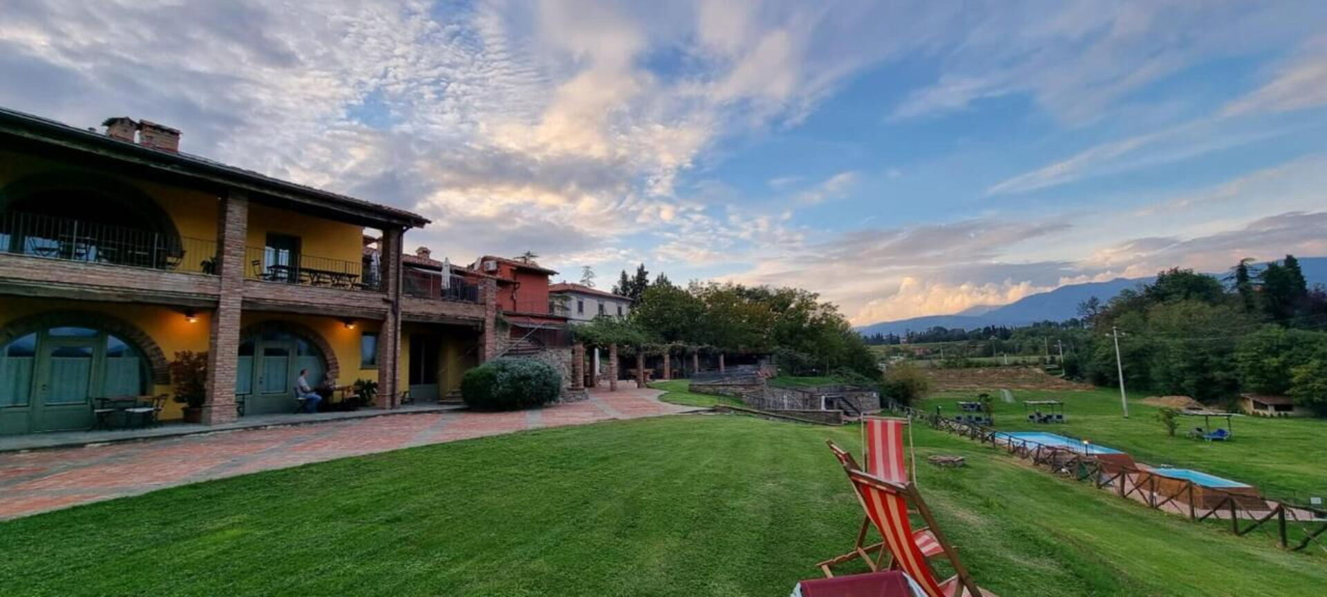 Complex of 15 comfortable vacation apartments in the hills of Laterina Pergine Valdarno, in the province of Arezzo, Tuscany.