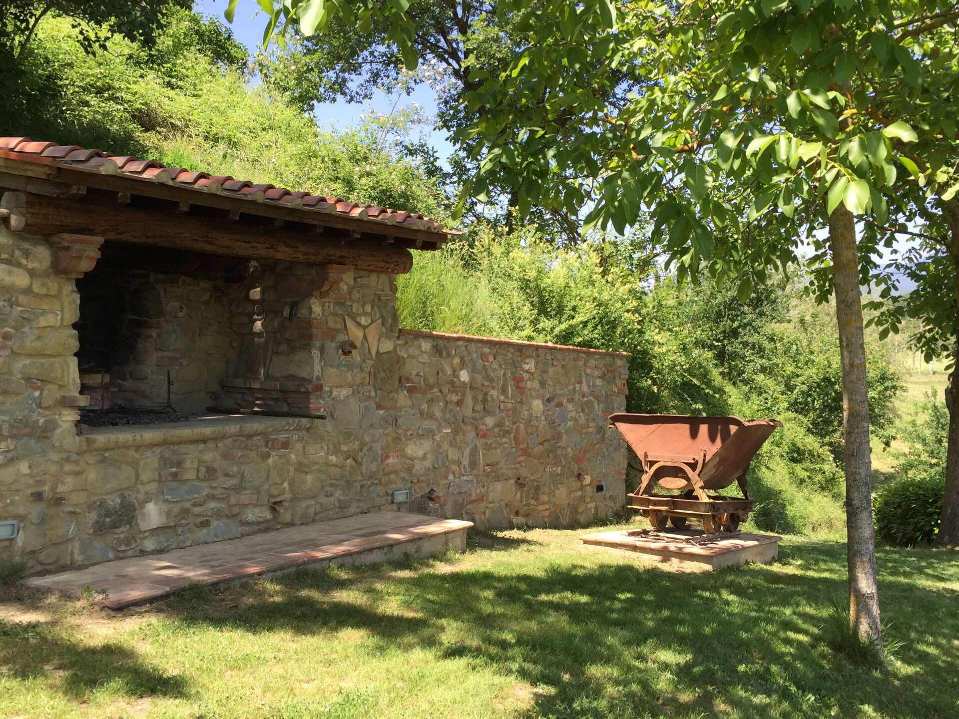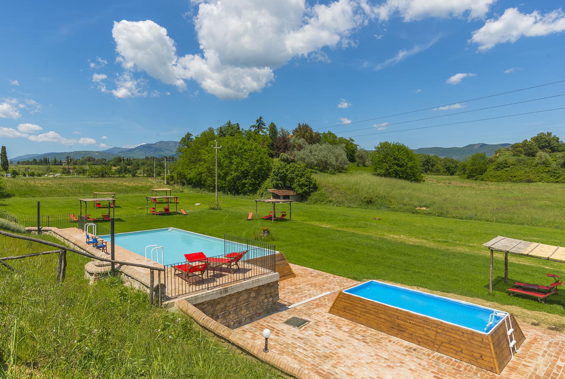 Outside, Le Fornaci has a large well-tended garden with panoramic views, and 2 above ground pools that are shared by the property guests (one is a children’s pool). By the pools there are sun loungers, umbrellas and plenty of space for relaxing the day away under the Tuscan sun. There is a large common area with a barbecue for fun meals together.