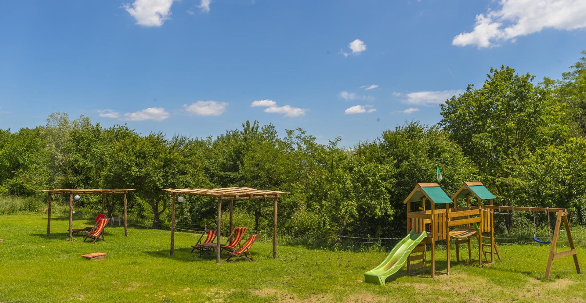 • children’s play area with wooden play equipment