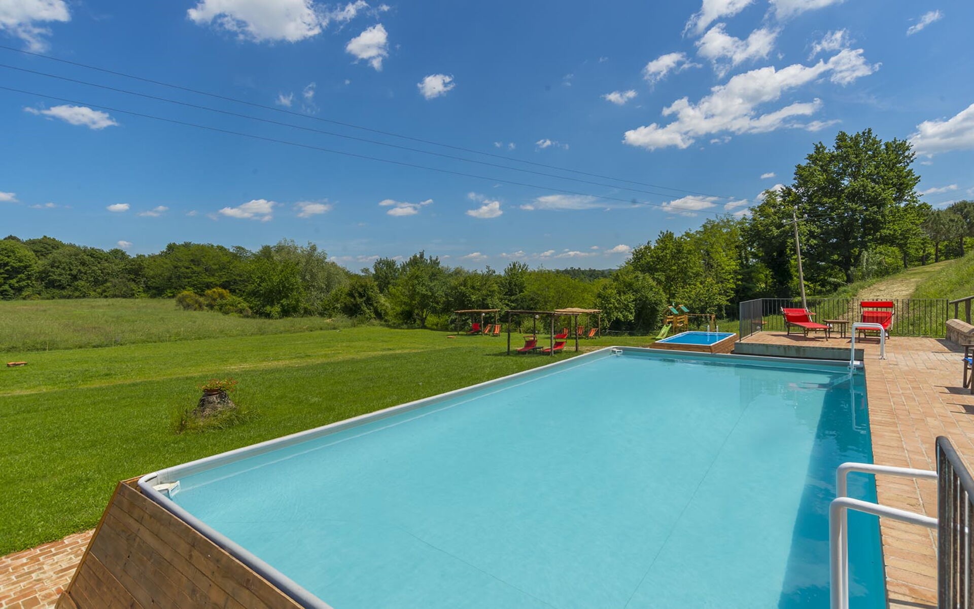 • 2 shared above ground pools: adult pool (12 x 6 m - maximum depth 1,4 m); children’s pool (4 x 3 m - maximum depth 0,8 m)