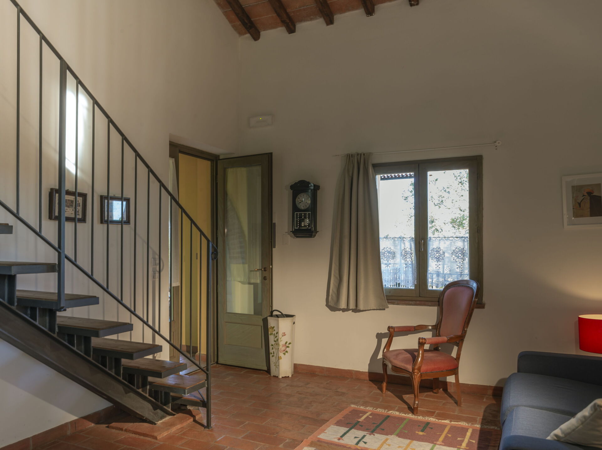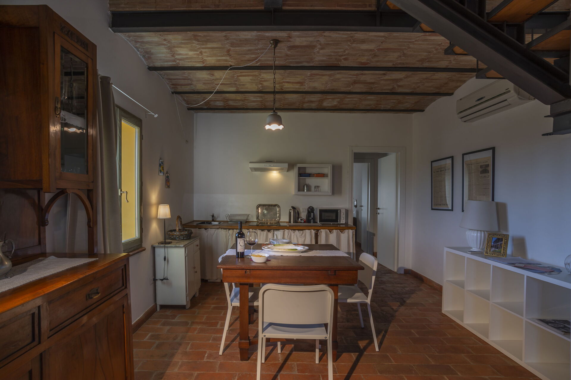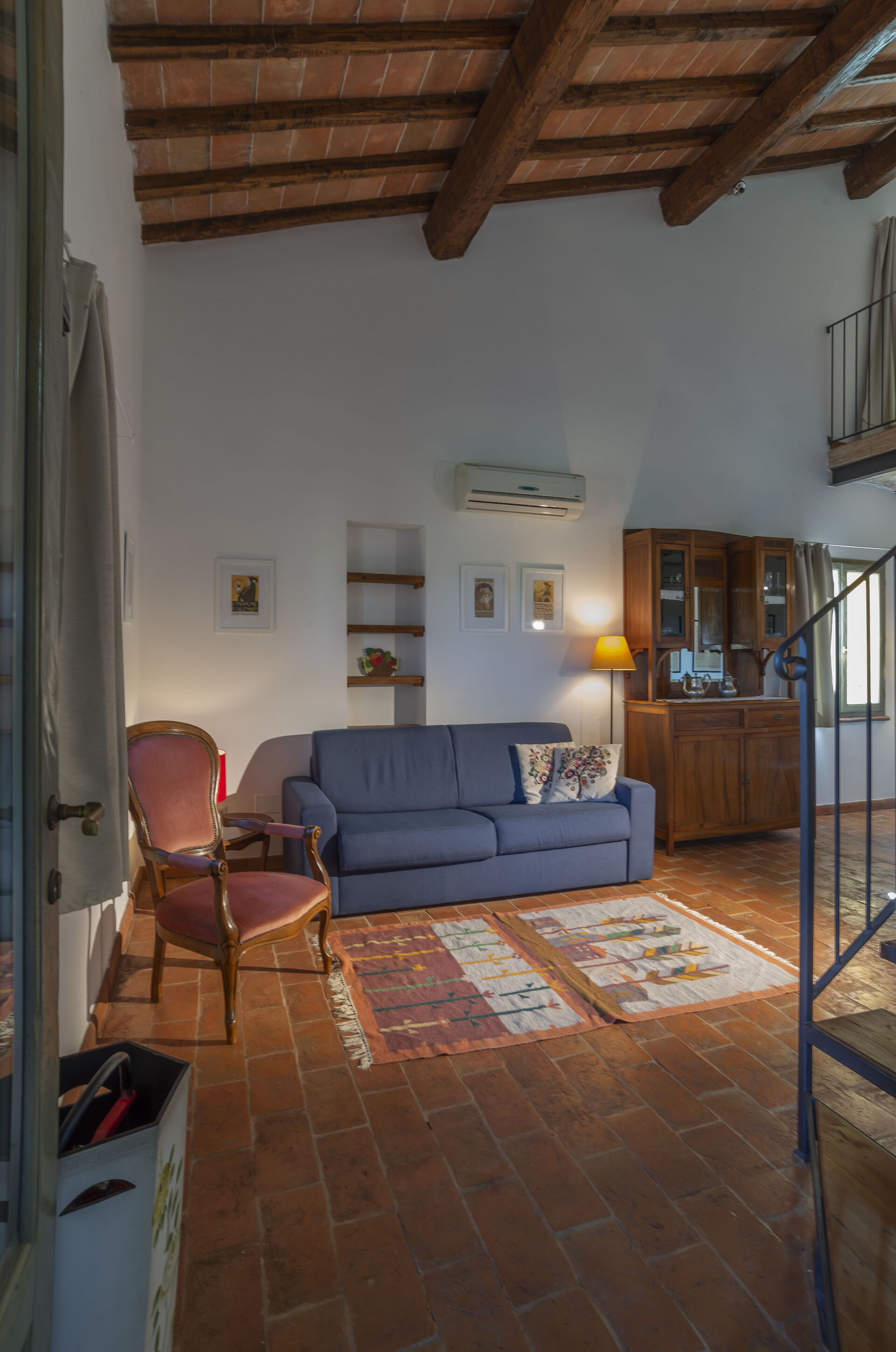 First floor: spacious living area with a living room (with an extra double sofa bed available upon request) and access to a loft with a double bed (convertible to 2 single beds upon request), a single bed and a bathroom with shower; dining area with kitchen (dishwasher, refrigerator, induction cooktop, microwave, coffee maker, fan), double bedroom, bathroom with shower.