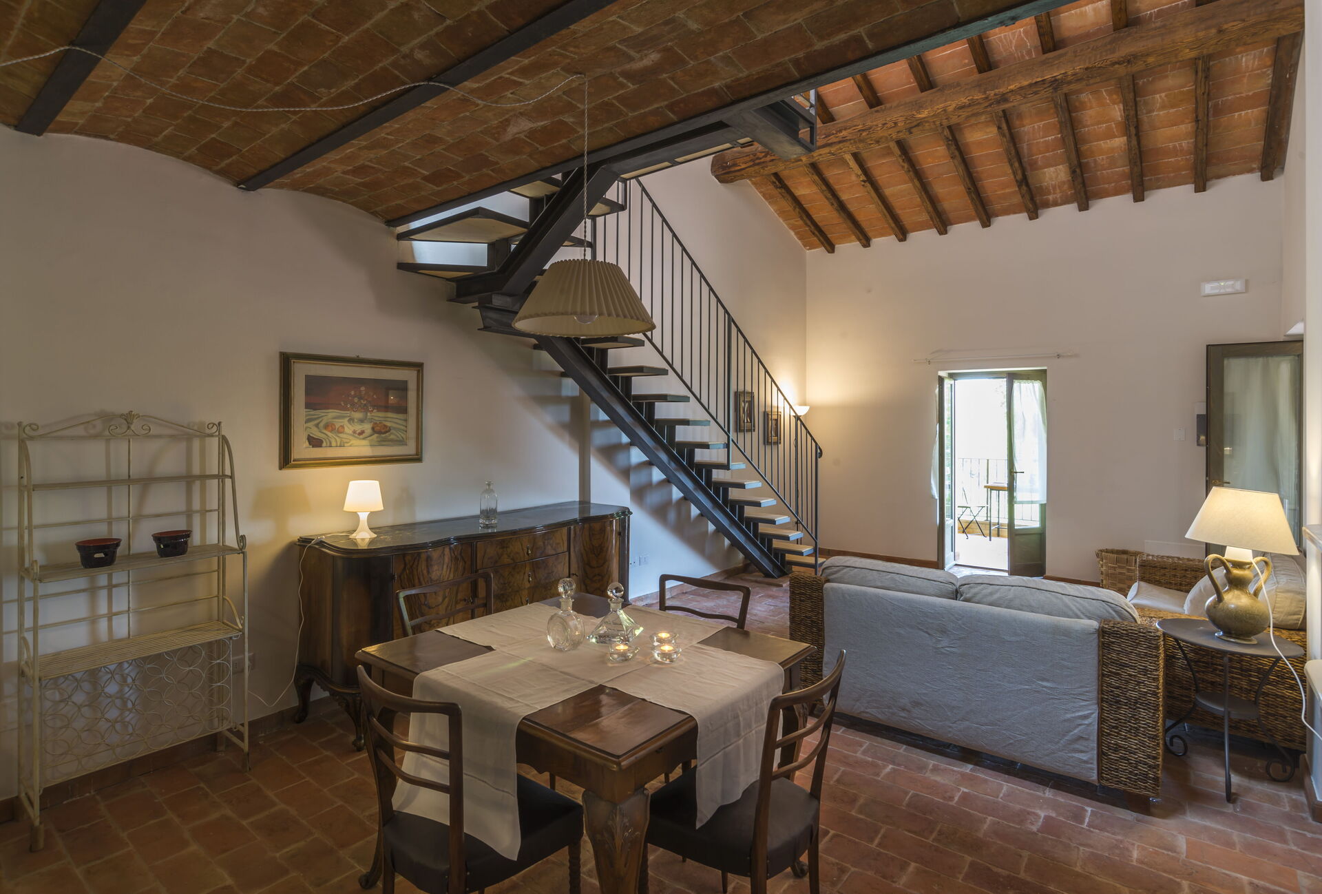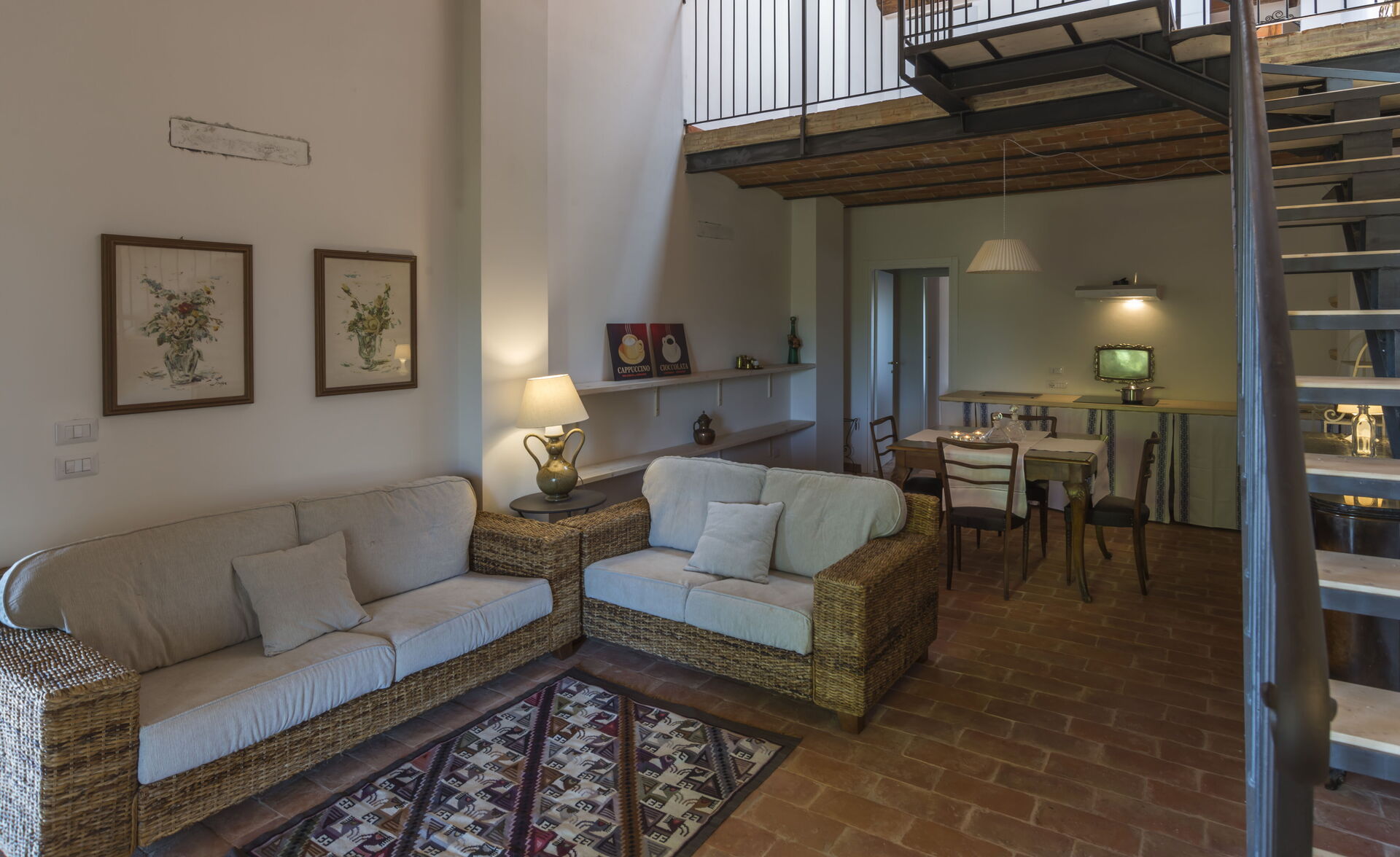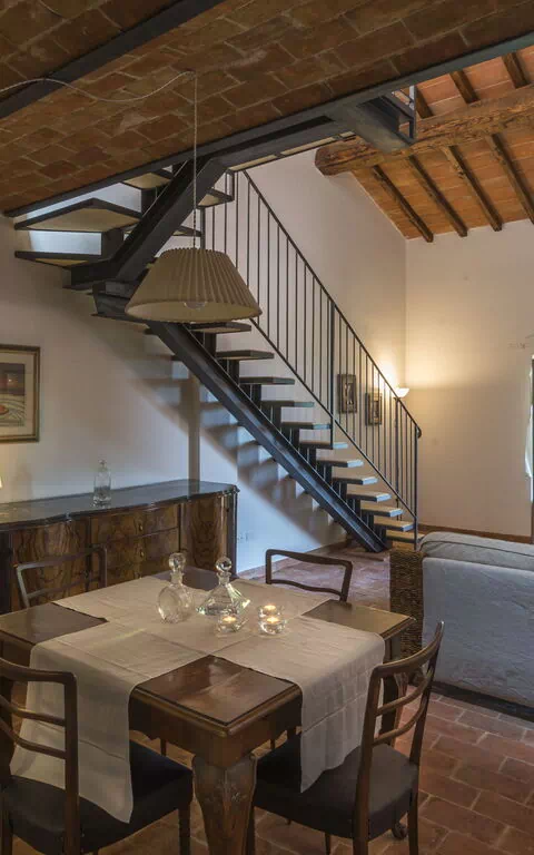 First floor: spacious living area with a living room (with an extra double sofa bed available upon request), and access to a loft with a bedroom with 4 single beds and a bathroom with shower; dining area with kitchen (dishwasher, oven, refrigerator, induction cooktop, microwave, coffee maker, fan), double bedroom, bathroom with shower.