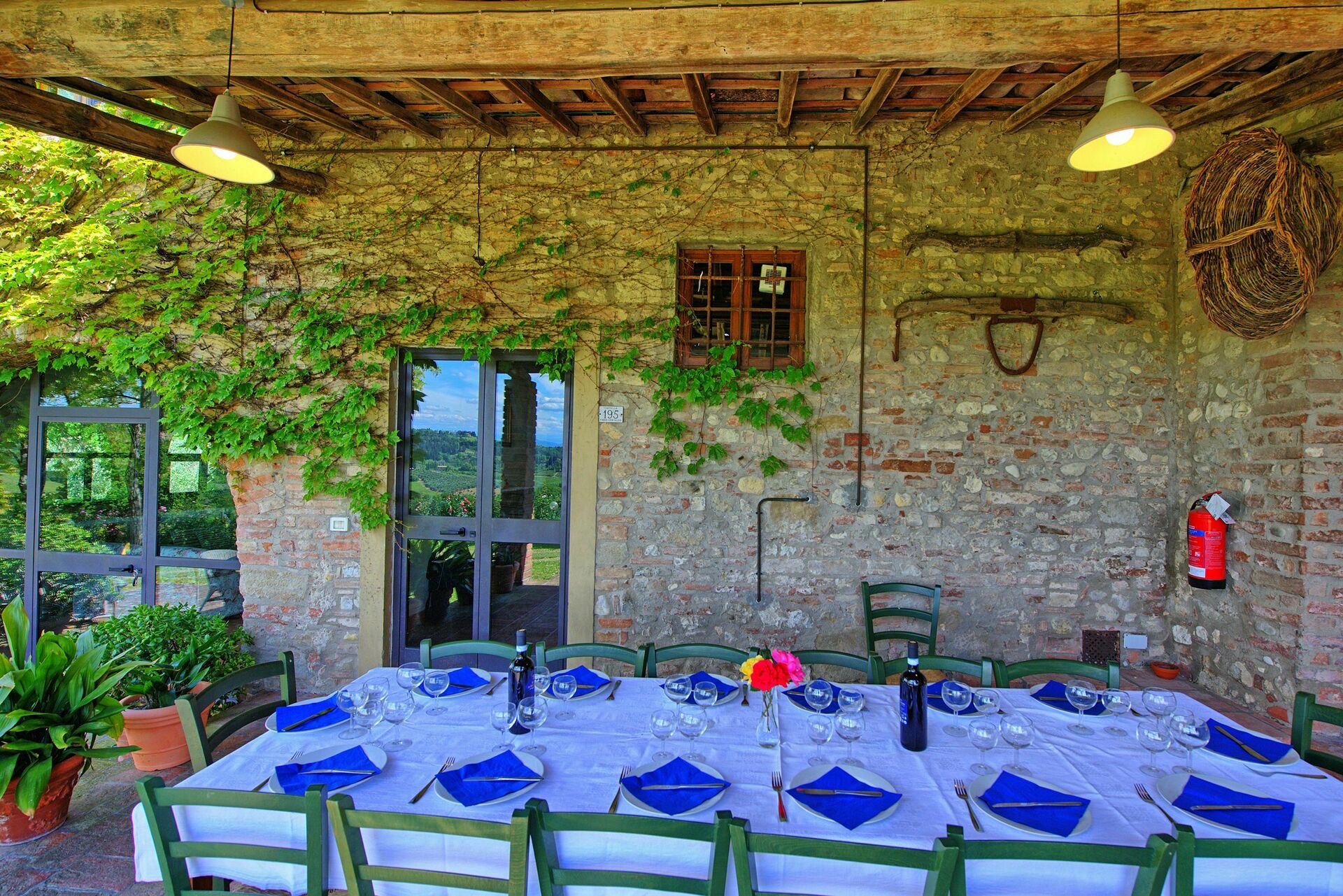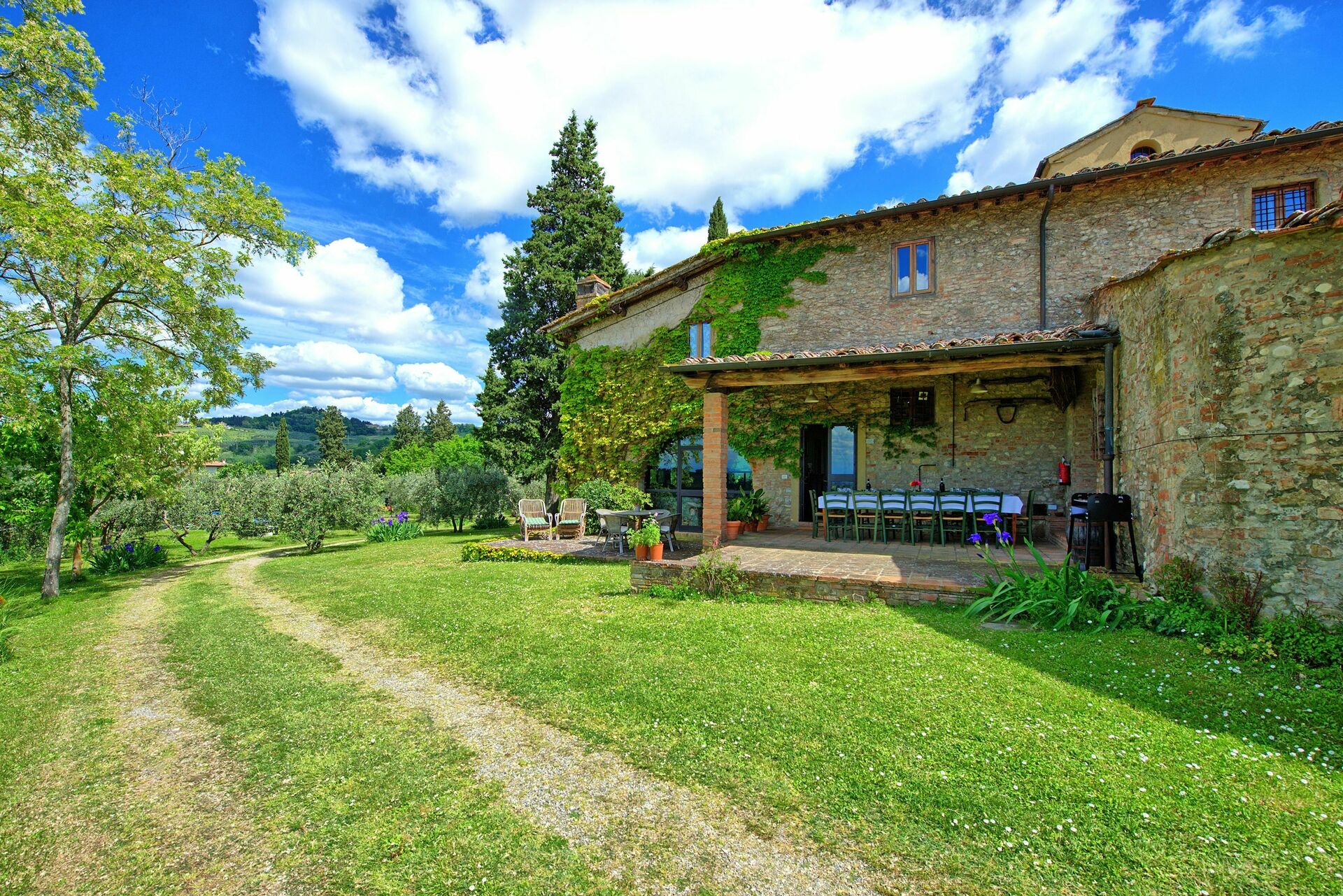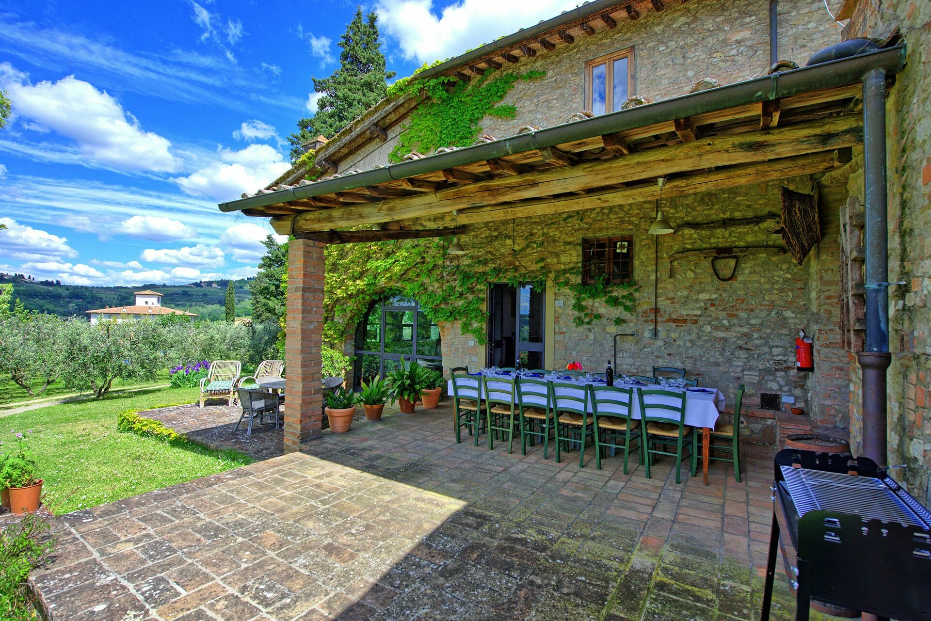 If you are looking for a holiday with family or friends, you will not be disappointed by this house with panoramic views, surrounded by nature in the Chianti hills near Florence. A beautiful portico equipped with table and chairs allows you to dine while enjoying fantastic views of the countryside.