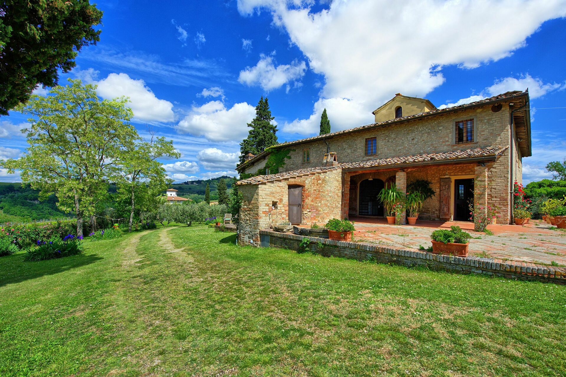 Belle villa au milieu des vignes, avec une très belle vue sur la campagne et les Apennins. Idéalement située : Florence, Sienne et Pise sont à moins d’une heure.