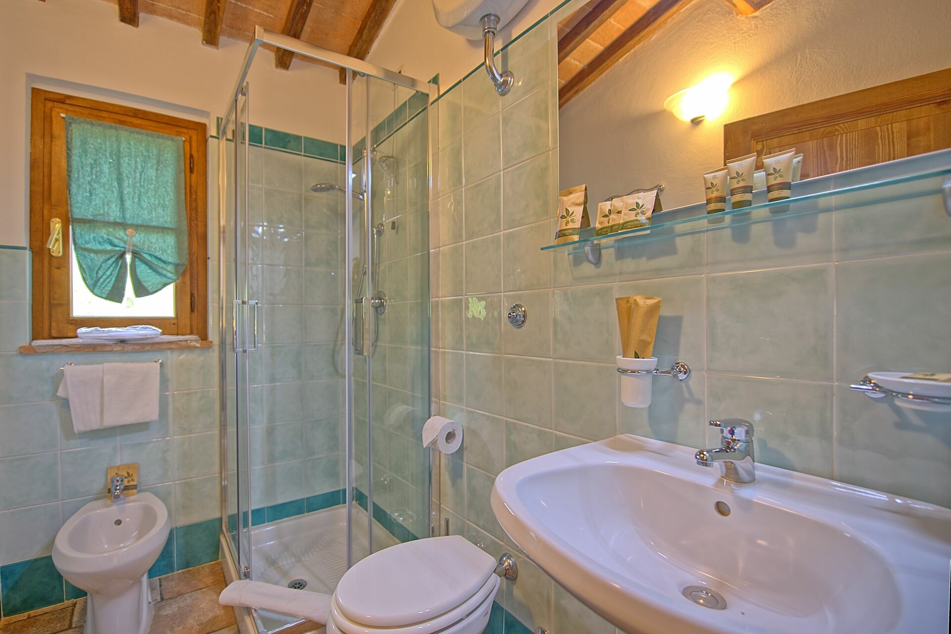 First floor: hallway with access to the outside, double bedroom, bathroom with shower, bedroom with a single bed.