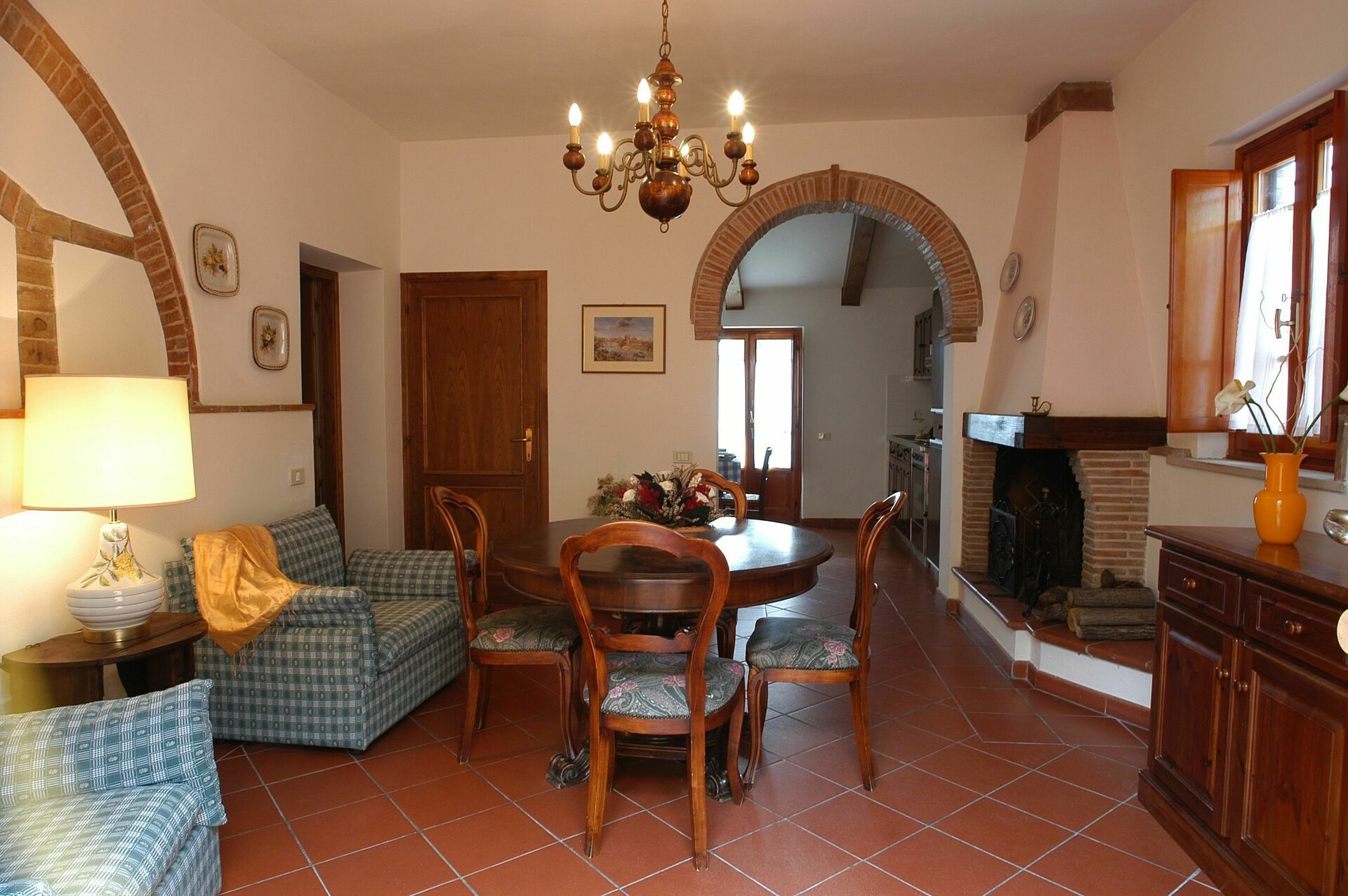 Ground floor: Entrance into living room (satellite TV) with dining area, fireplace, two single pull-out beds and cooking area (dishwasher, freezer, oven, American coffee maker), double bedroom, bathroom with shower.