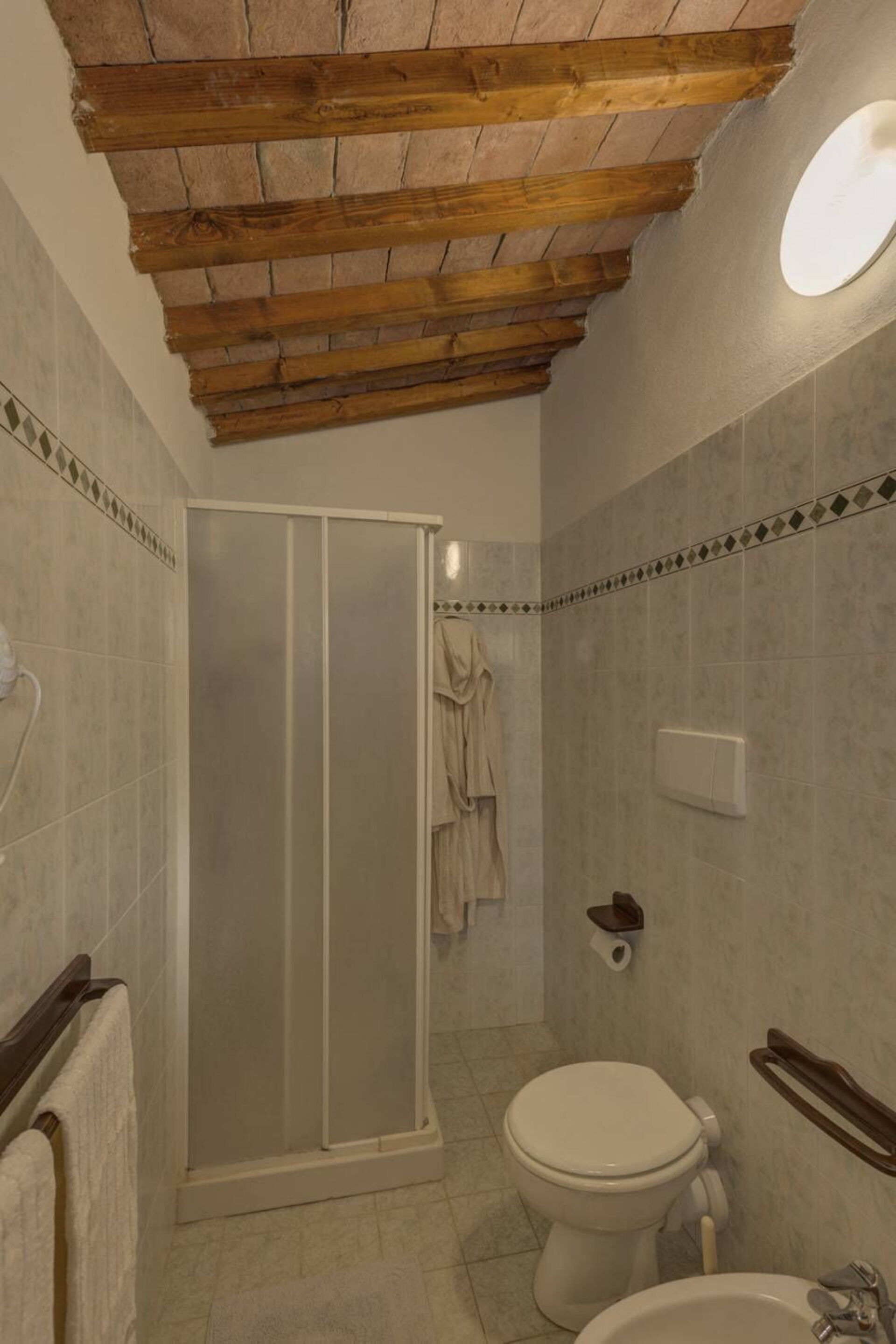 Ground floor: dining area with kitchen (oven, toaster, espresso coffee maker), double bedroom, bathroom with shower