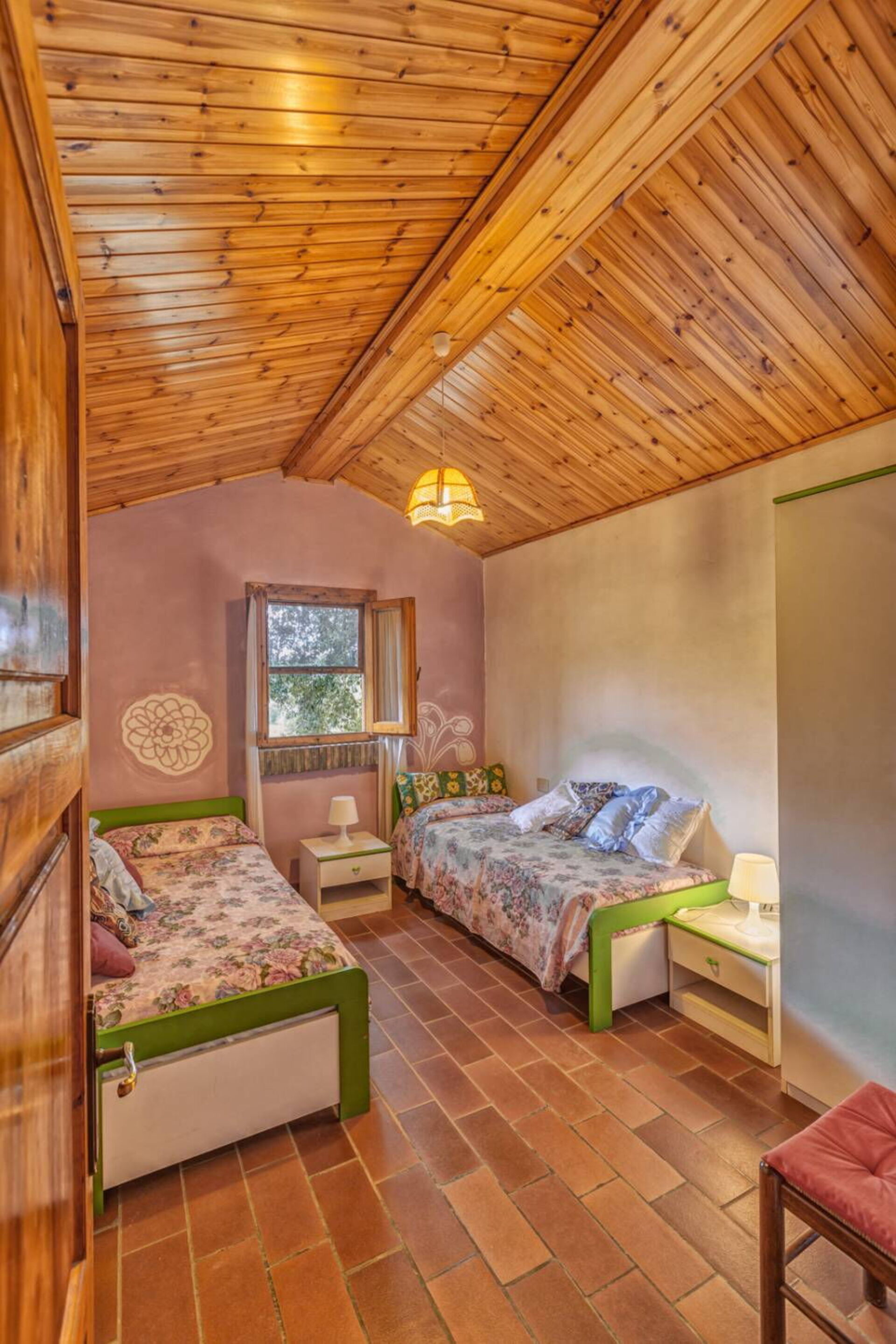Ground floor: living area with dining area and kitchen (dishwasher, oven, toaster, espresso maker, American coffee maker), bathroom with shower, double bedroom with access to a small bedroom with 2 single beds.