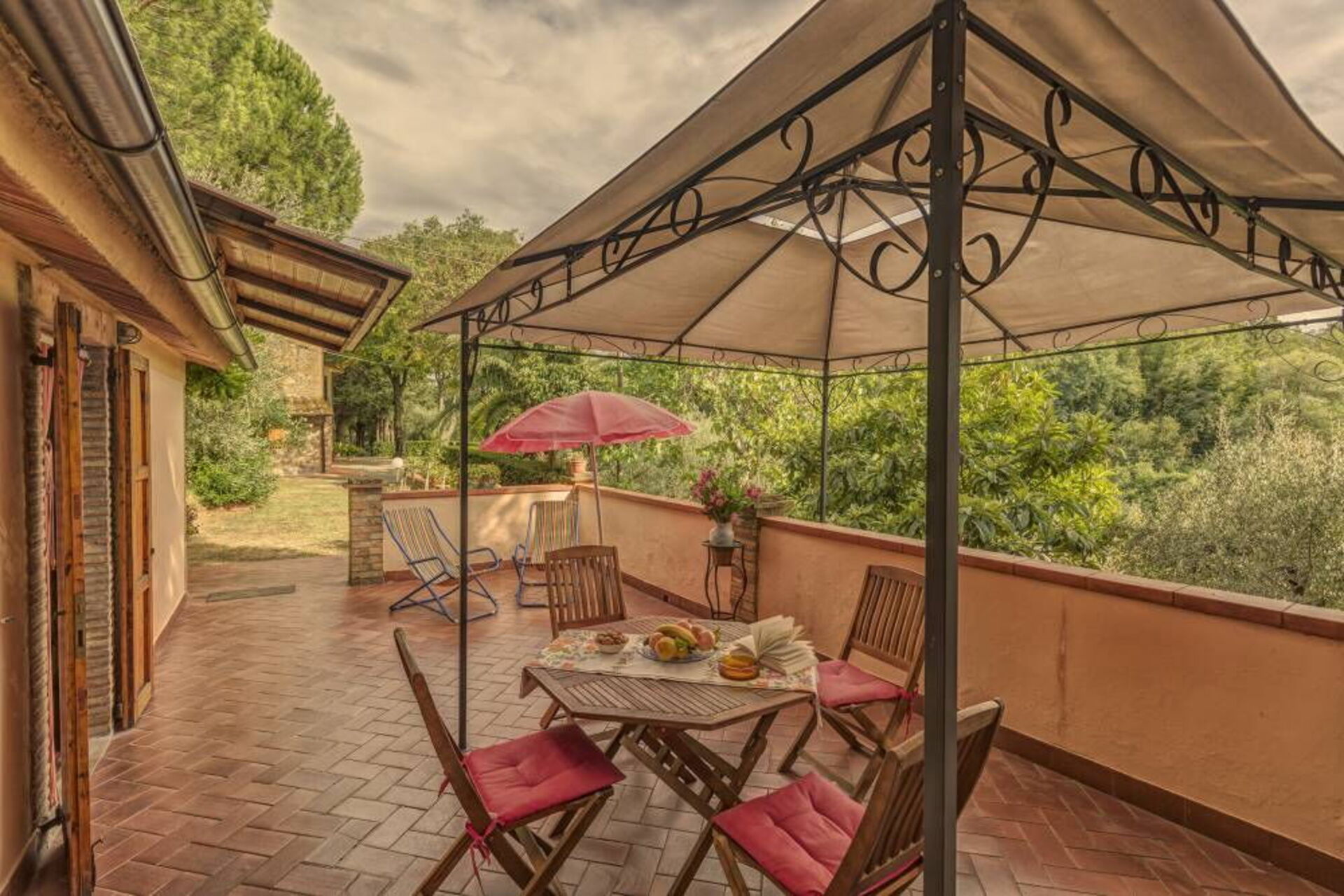 Scenic, 25 m2 sunbathing terrace furnished with a gazebo, table and chairs.