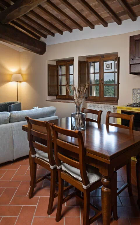 Outdoor area equipped with table, chairs and barbecue shared with the apartments Torri and Cipressi