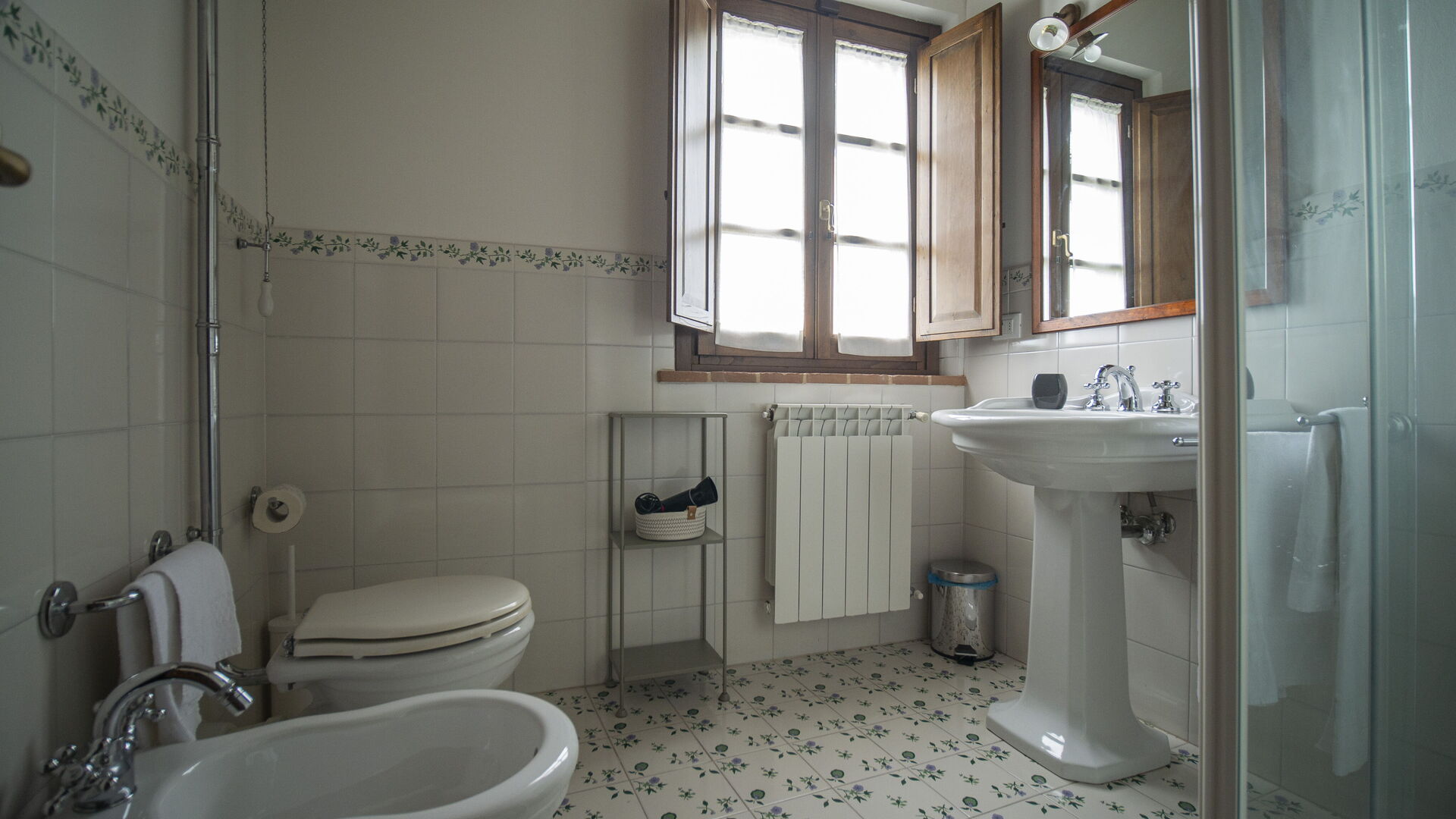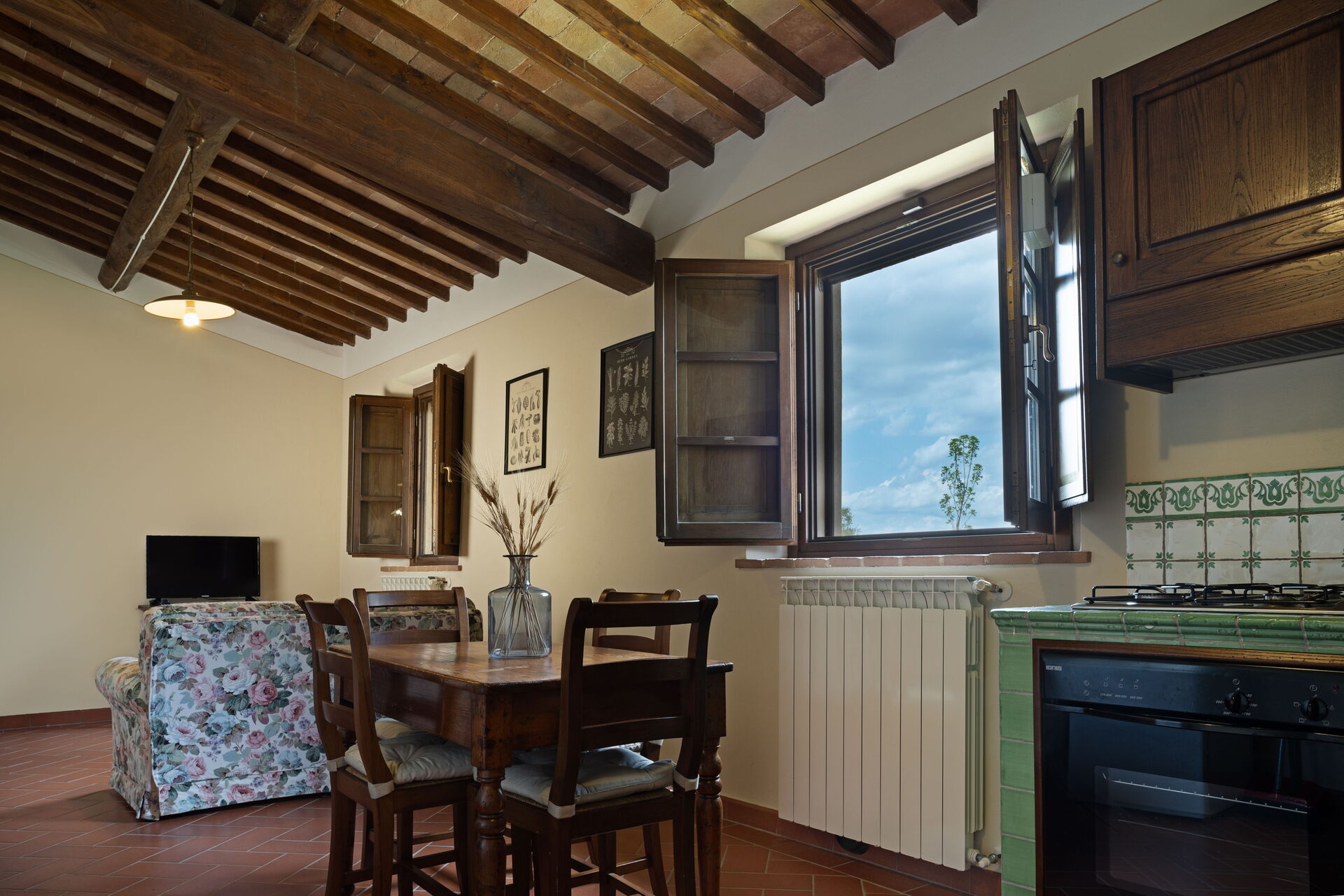 Outdoor area equipped with table, chairs and barbecue shared with the apartments Camino and Cipressi