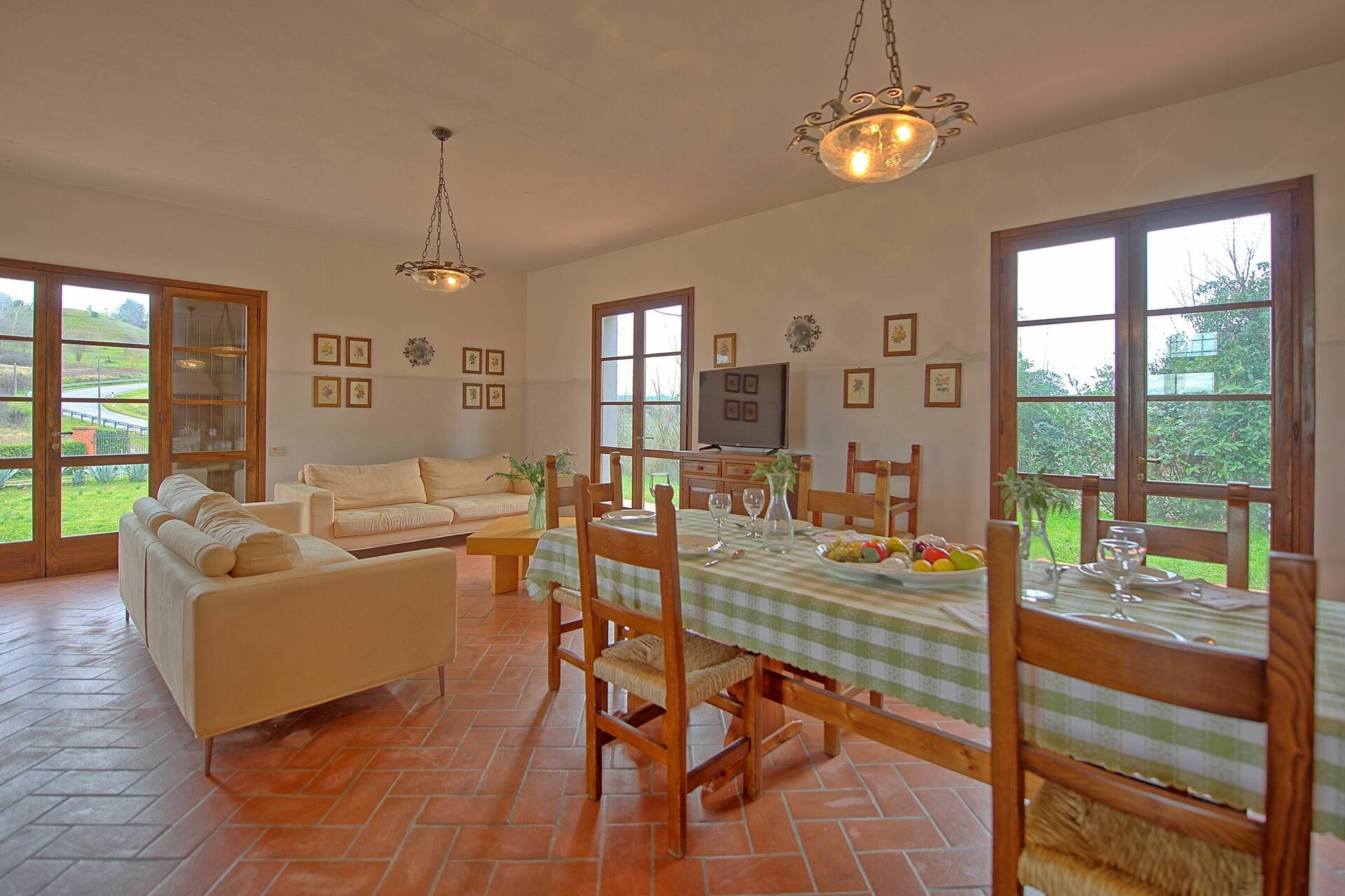 Distances: Legoli (offering food shops) - 2 km, Montefoscoli - 3 km, Forcoli/Peccioli (wide variety of shops) - 9 km, Pontedera - 20 km, Volterra - 30 km, San Gimignano - 33 km, Pisa - 46 km, Lucca - 60 km, Florence - 70 km, Siena - 75 km, the Cinque Terre zone lies roughly 140 km away.