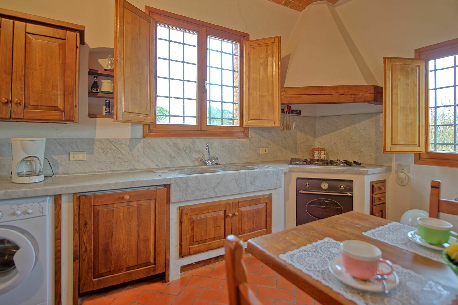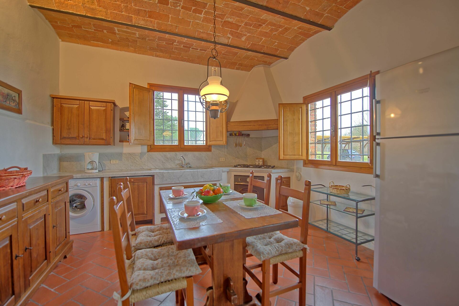 This comfortable Tuscan holiday rental is found in a beautiful panoramic location with views over hills and the charming town of Montefoscoli, roughly 30km from Volterra and 45 km from Pisa.