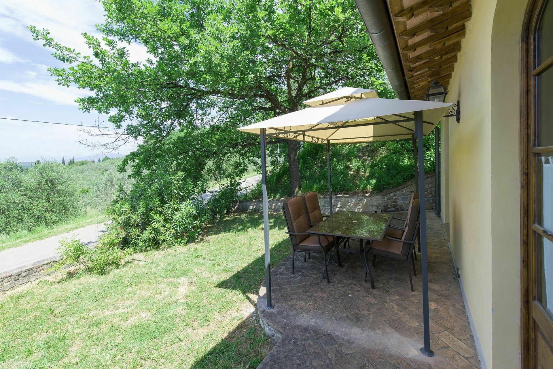 Personal, furnished garden with gazebo, table and chairs.