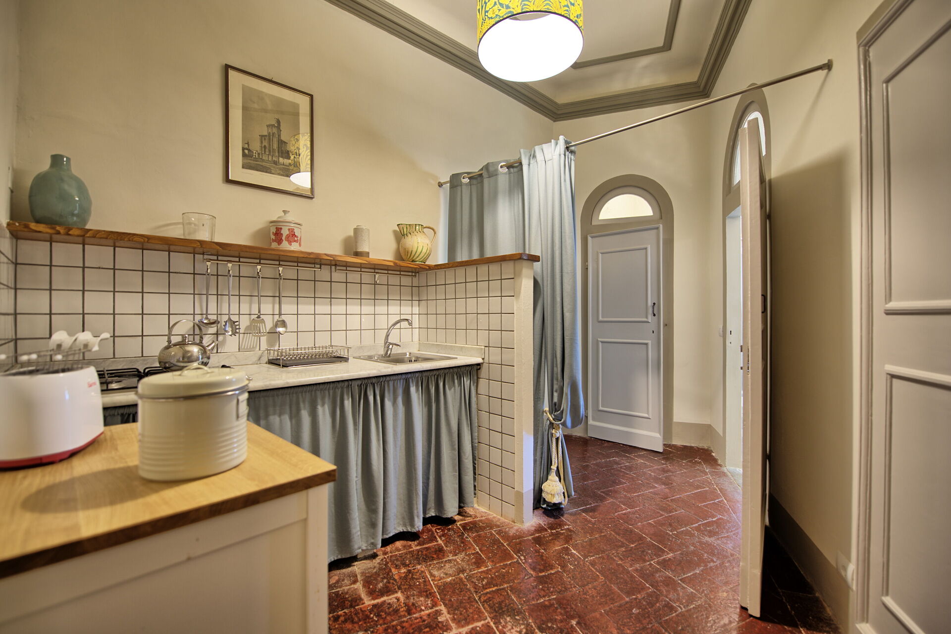 l'environnement est magnifique dans le chateau de Montegufoni, avec ses cours, jardins et vues. L'appartement est spacieux, et la terrasse permet de profiter du soleil au petit dejeuner, l'équipement est vraiment minimal dans la cuisine, et aucun produit n est fourni, vous pouvez tout acheter dans une commune voisine. Le restaurant ouvert le soir est très bon et propose aussi des options gluten free très appréciées. La piscine est très agréable.