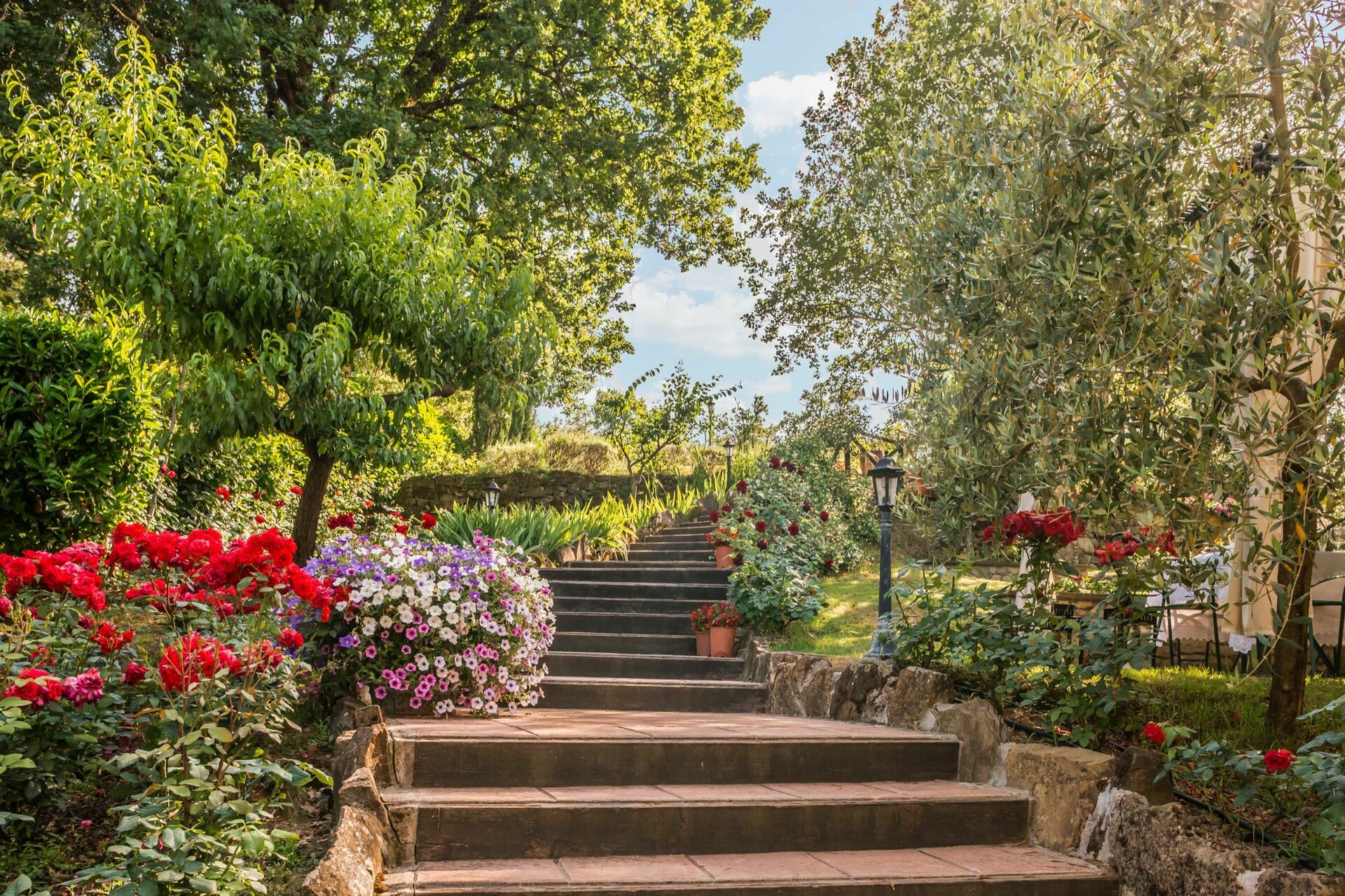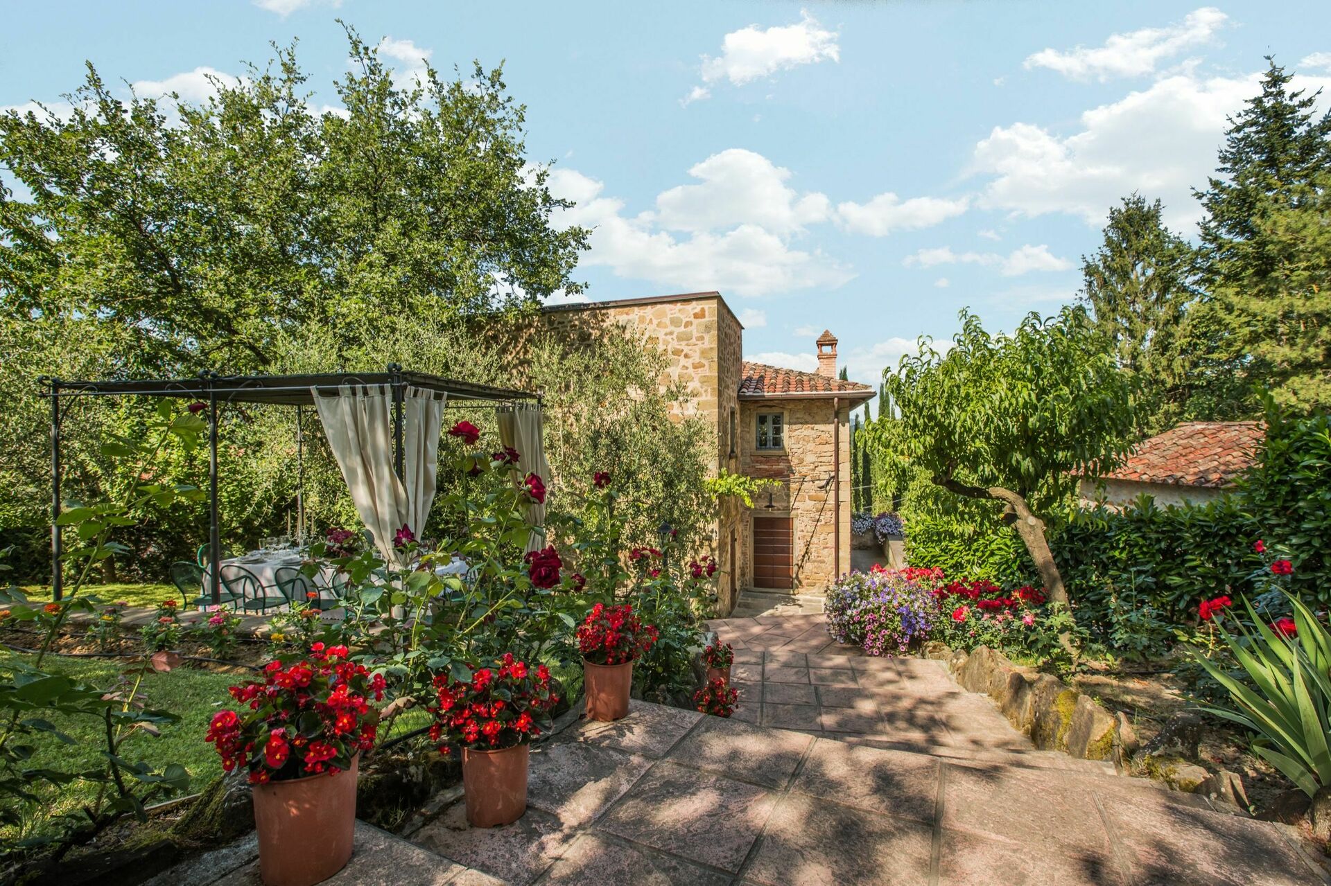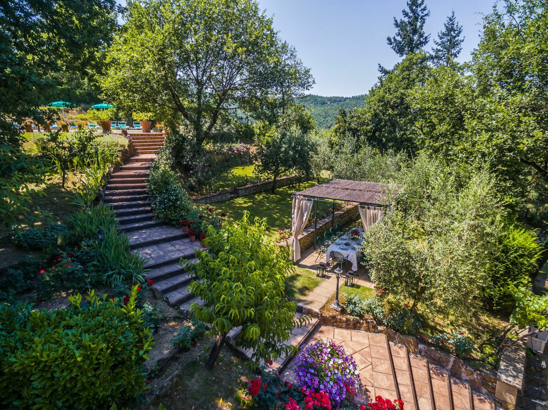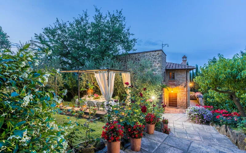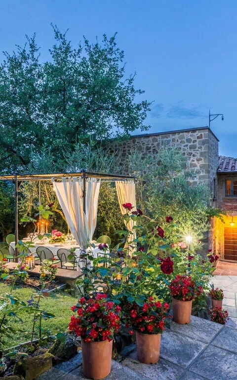 There is a new pool (12 x 6 m depth 1.5 mt) in a beautiful garden with roses , lavender, jasmine, with cypresses and olive trees, offering stunning views over the valley towards the lush green tuscan hills.