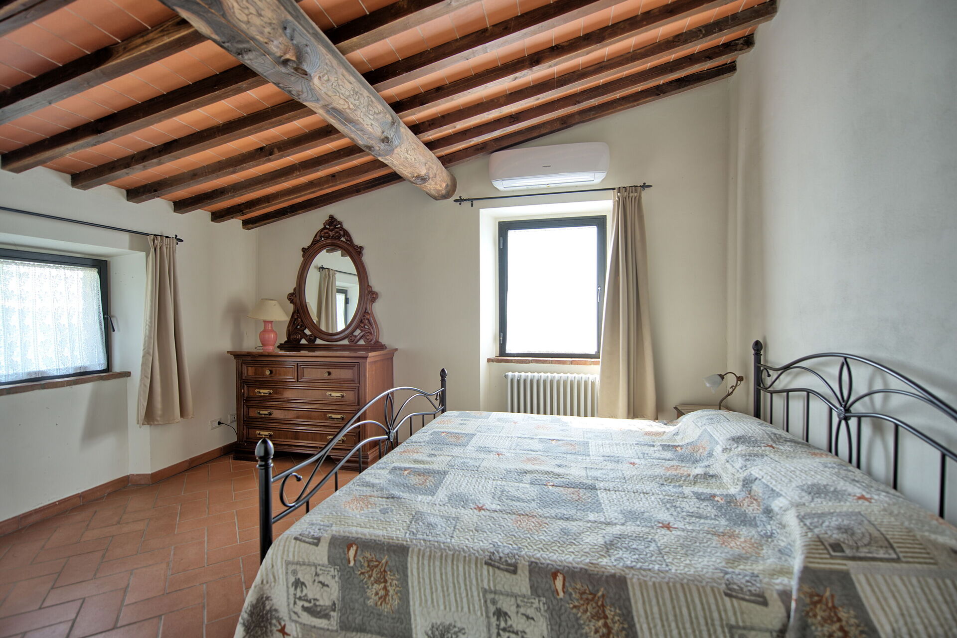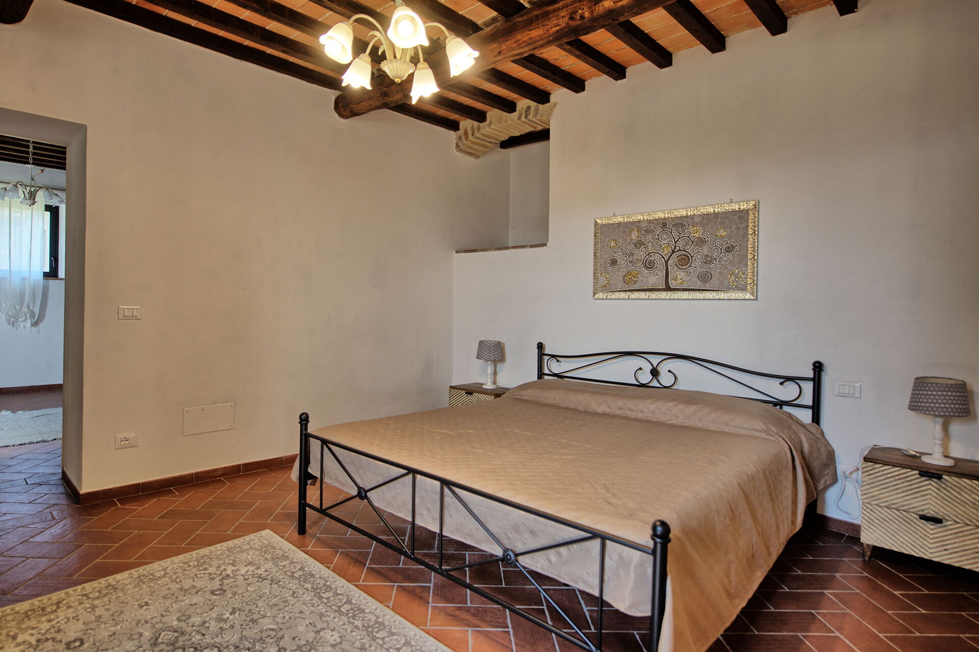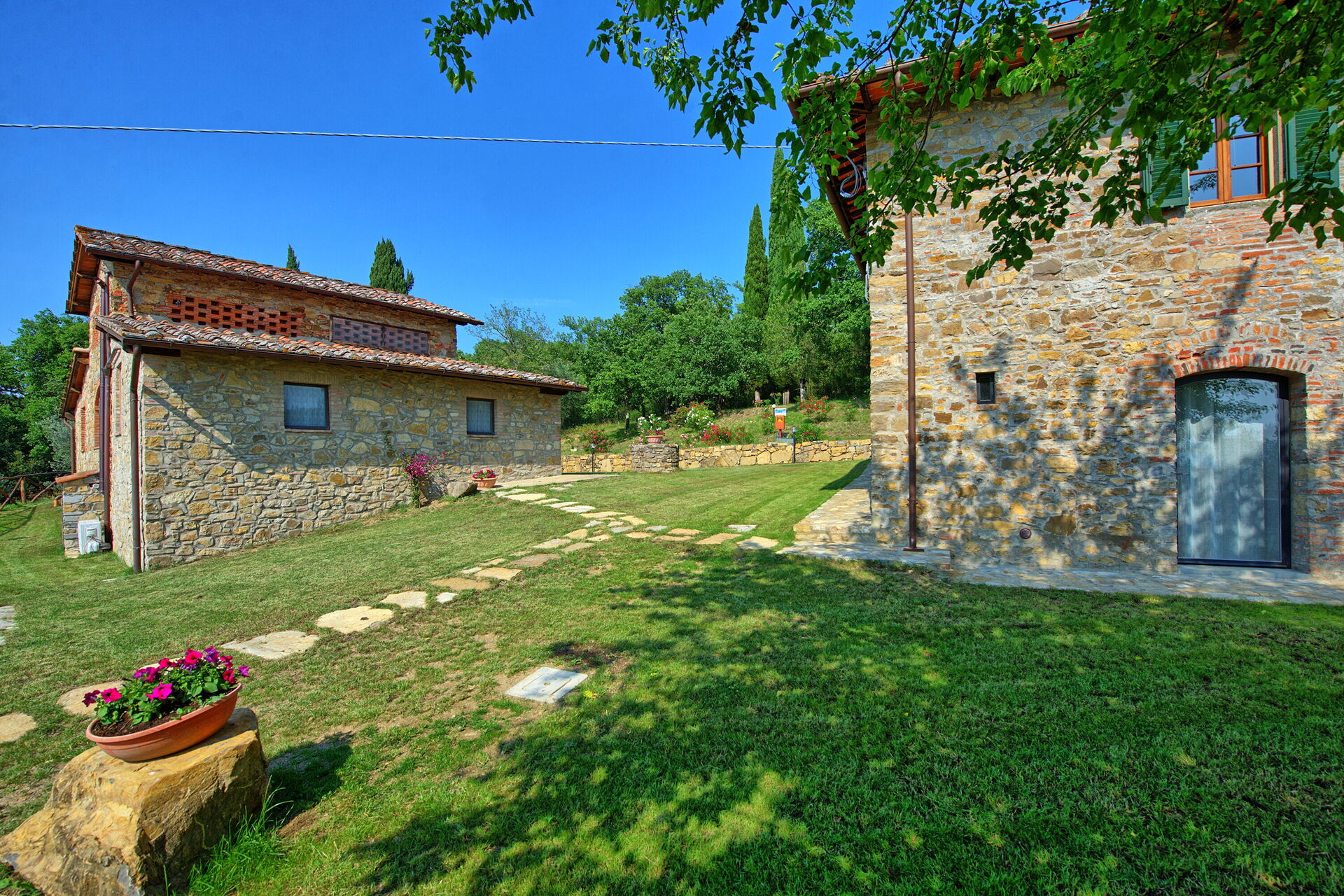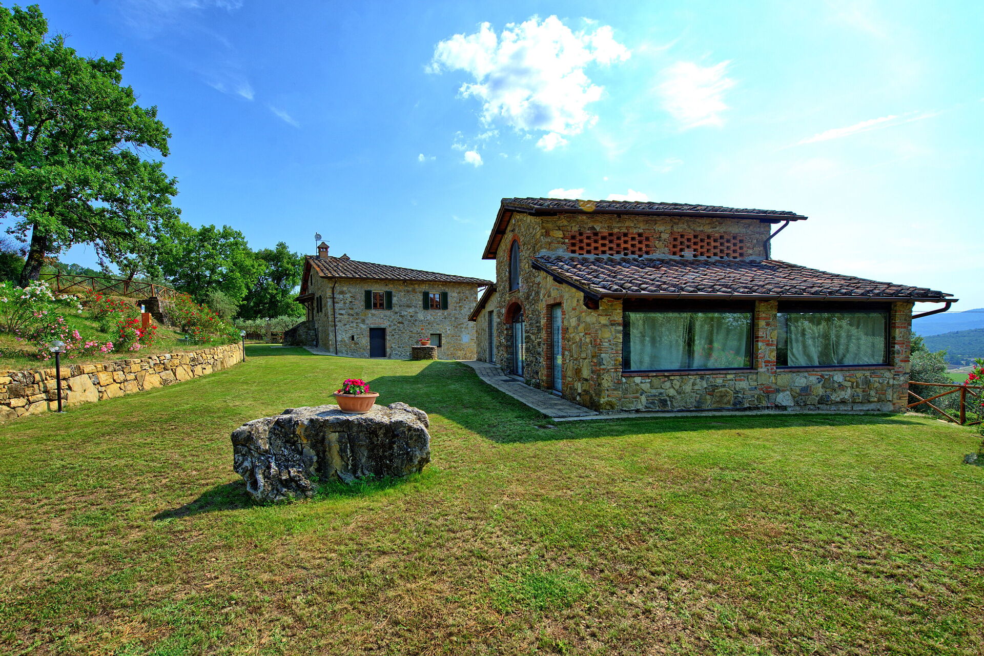 Set between the rolling hills of Chianti and Arezzo, Querciolaia boasts magnificent views of vineyards, woodlands, and open fields. The property features a main house with four bedrooms and two bathrooms, along with a separate barn just a few meters away, offering two additional bedrooms and bathrooms—ideal for families and groups looking for both space and privacy.