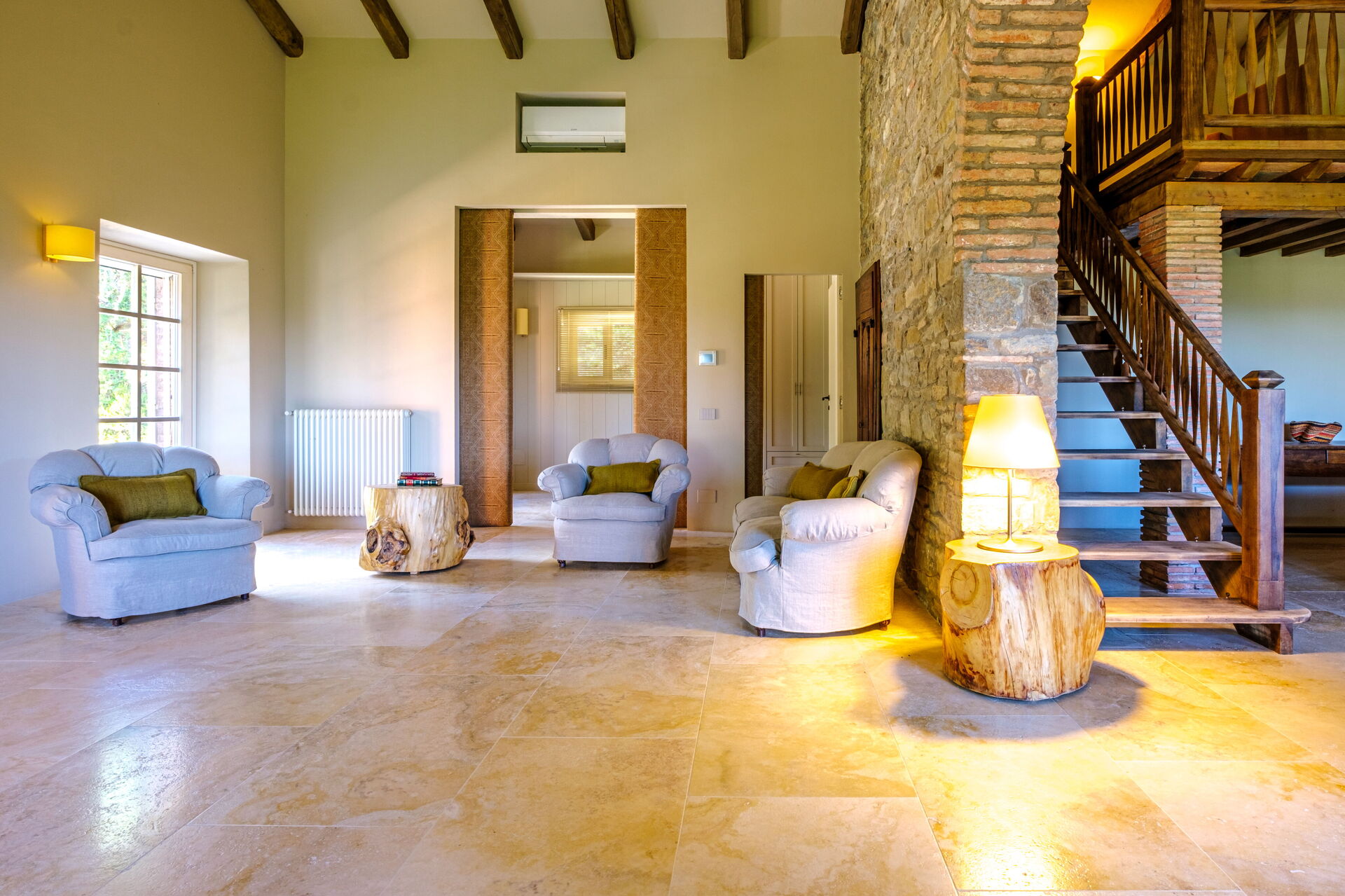 On the upper floor of the villa there are rooms that remain empty and are not accessible during the rental season.