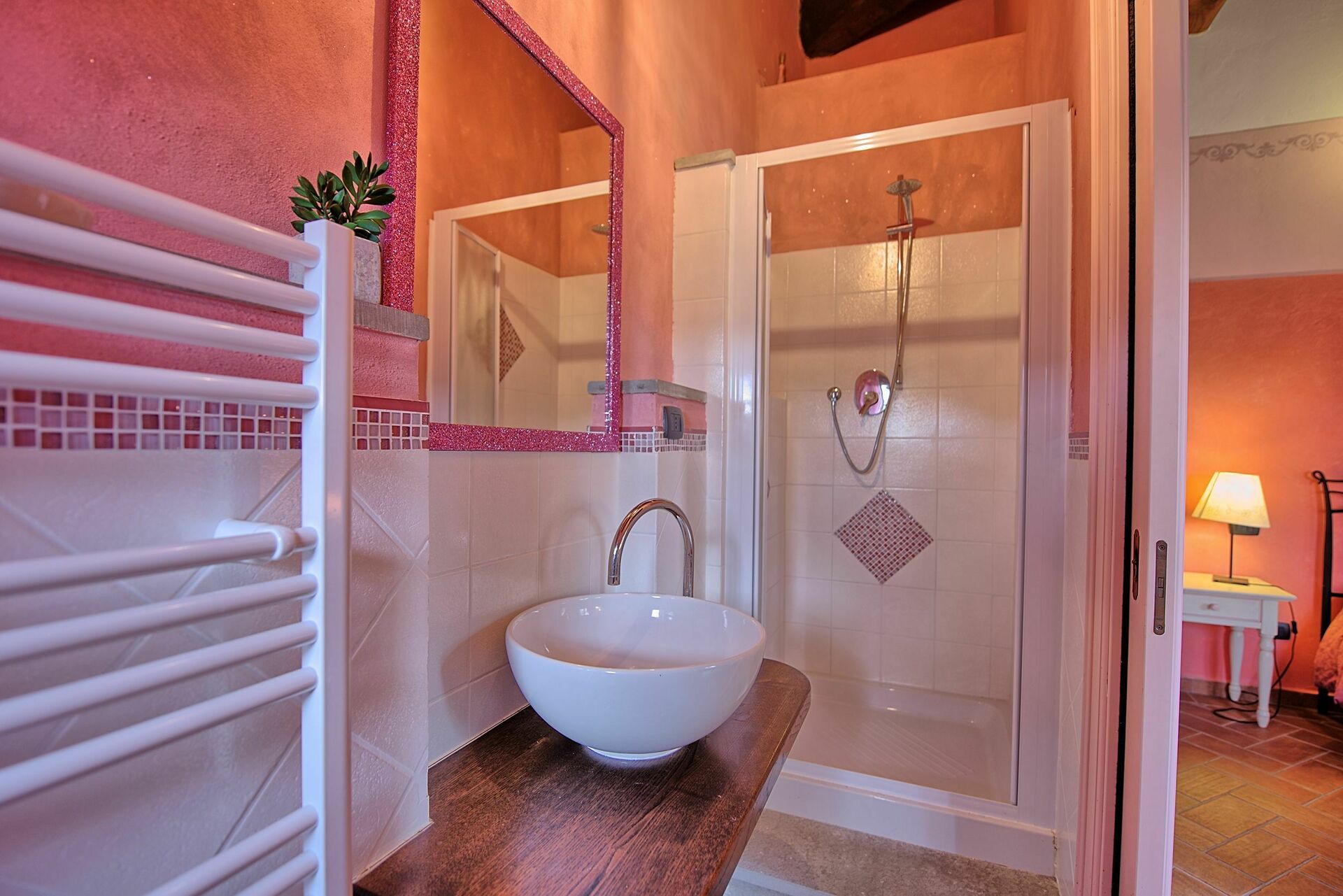 4 steps below: double bedroom with private bathroom with shower (no bidet), double bedroom, bathroom with shower and hydro massage bath.