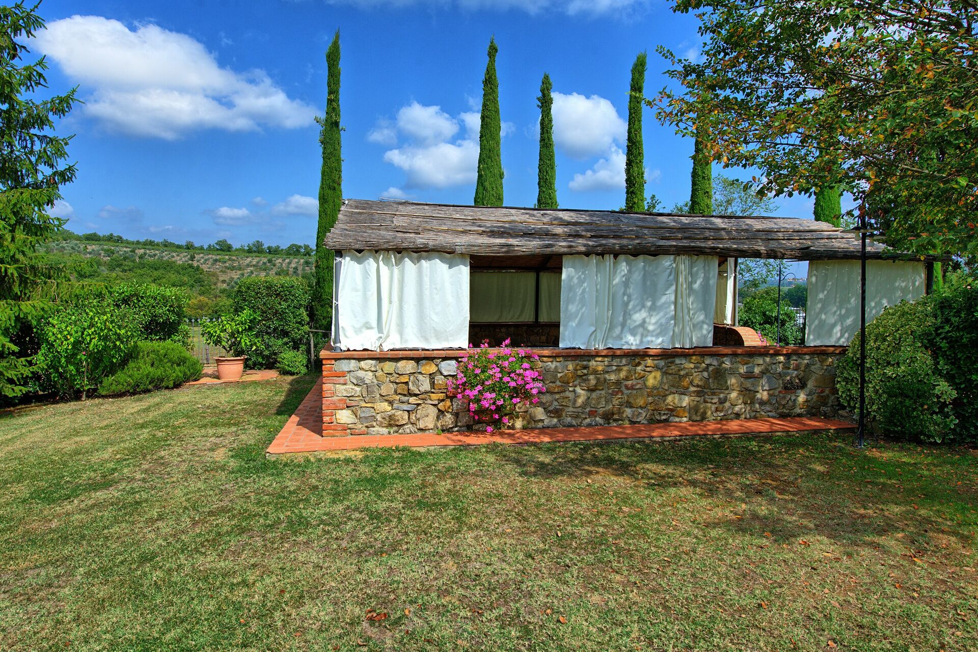 Distances: Badia Agnano (offers a wide variety of shops, bar, restaurants, pharmacy) - 2 km, Bucine (wide variety of shops) - 9 km, Arezzo - 25 km, Rapolano terme (famous thermal springs) - 28 km, the Chianti Classico wine region (Castelnuovo Berardenga, Gaiole in Chianti, Panzano, Castellina in Chianti, Greve in Chianti) lies within a range of 20 - 50 km, Siena - 40 km, Cortona - 45 km, Florence - 70 km, San Gimignano - 80 km, Volterra - 90 km.