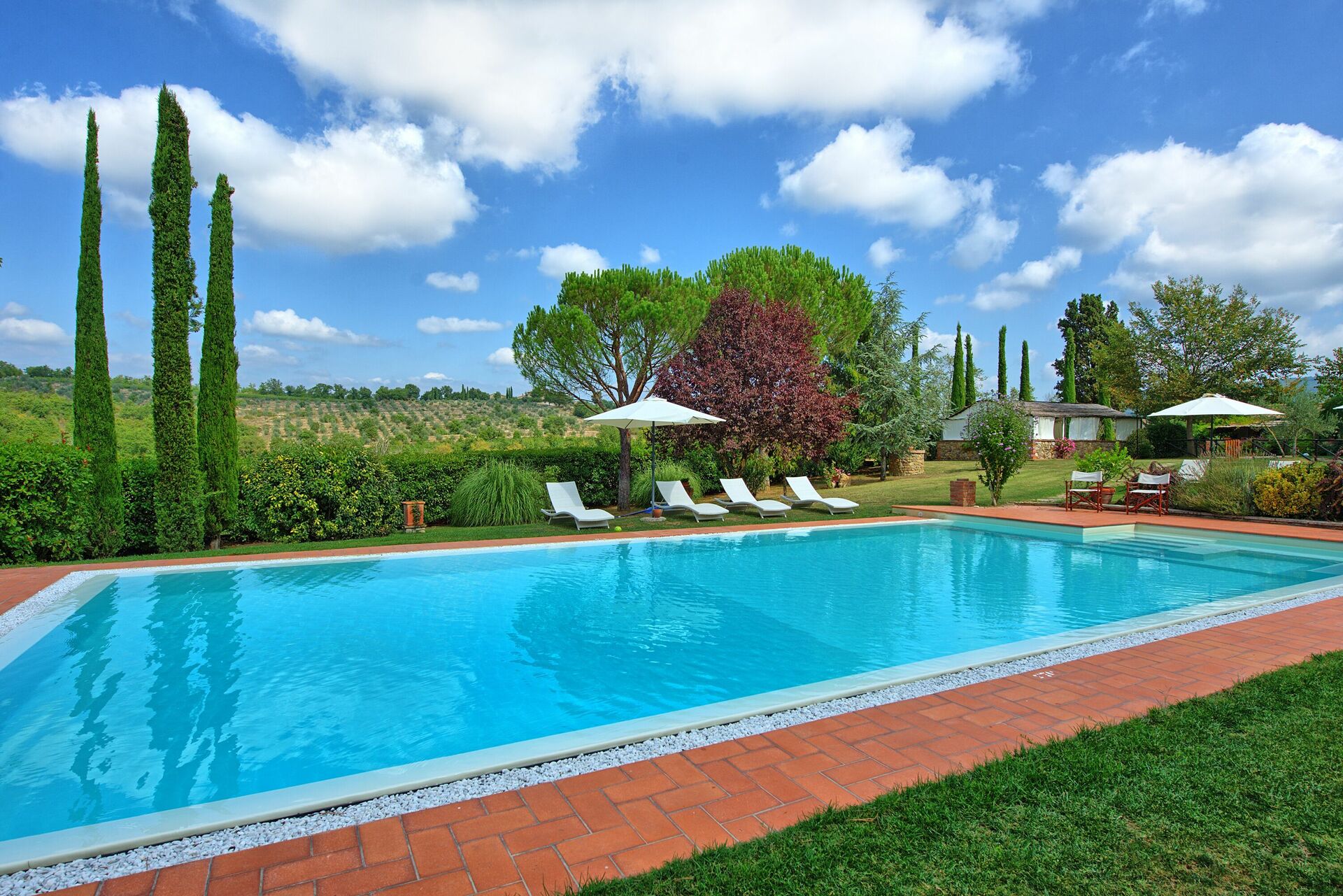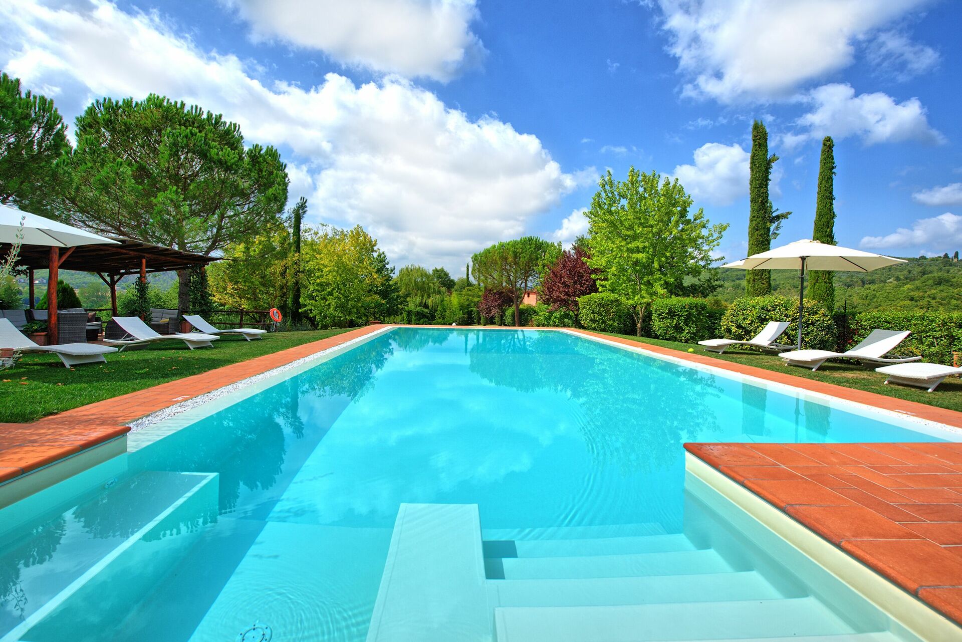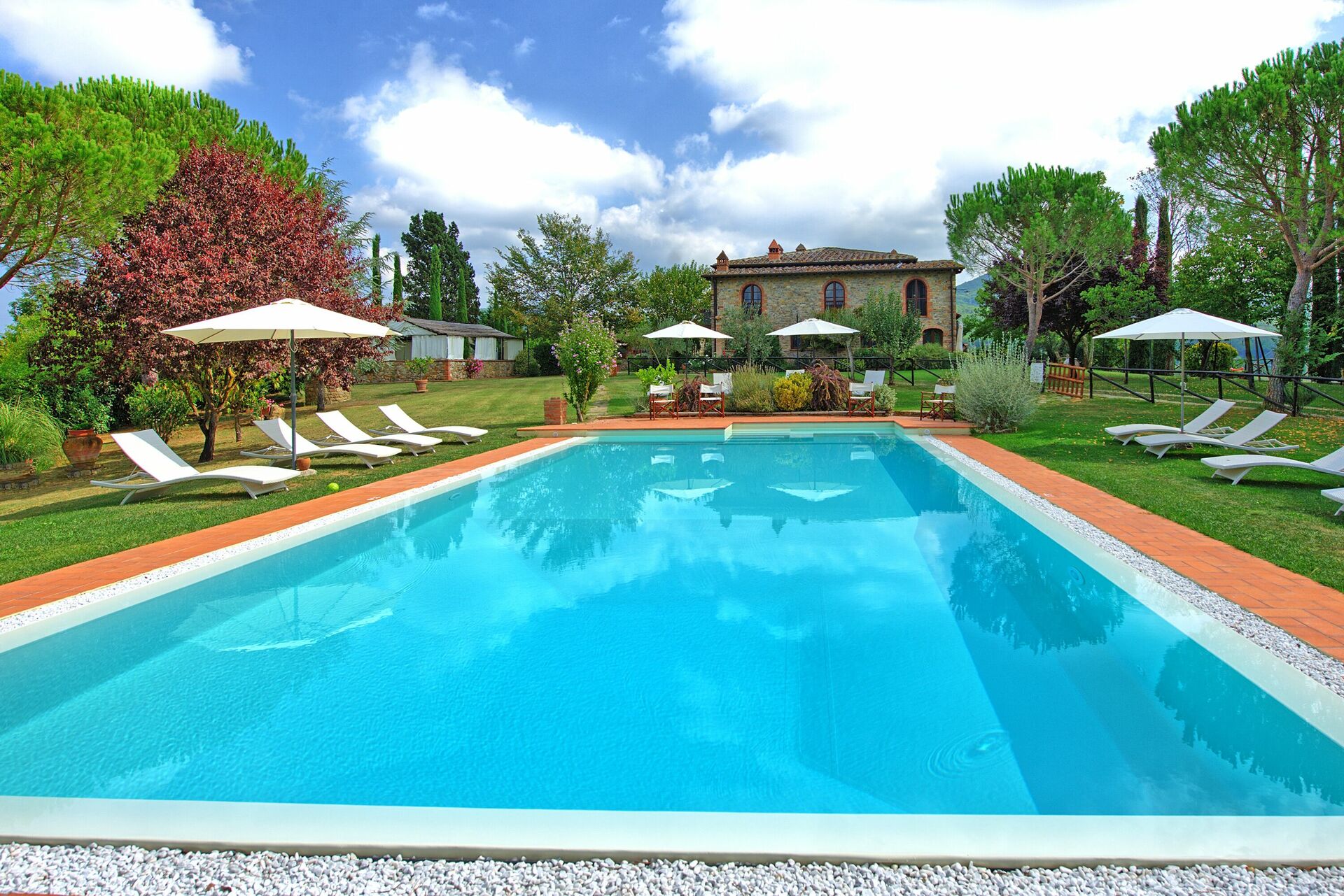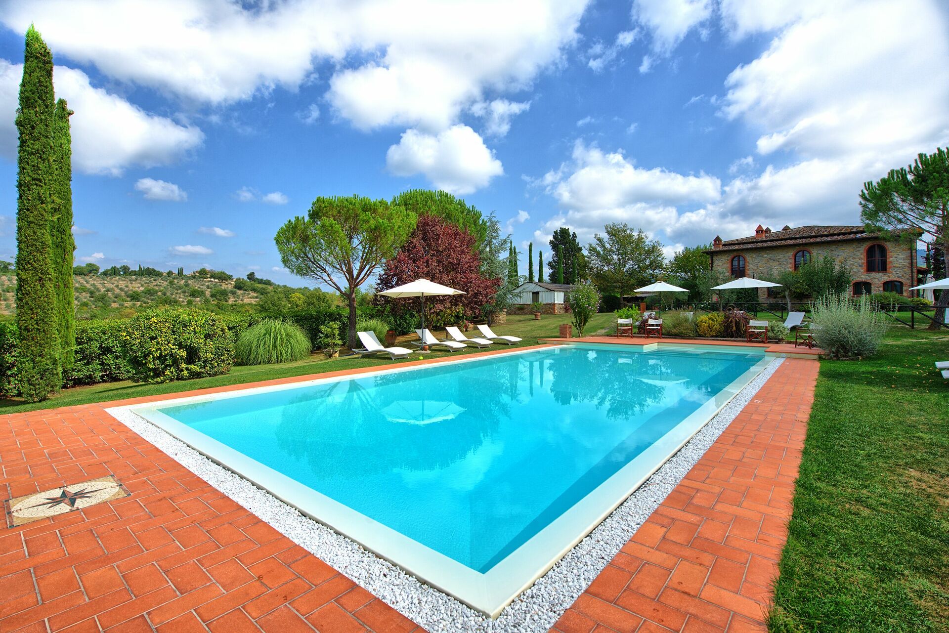 Villa for rent in Tuscany with private swimming pool, near the towns of Badia Agnano and Pieve a Presciano, just 25km from Arezzo. The property is fenced and the home is very spacious and welcoming.