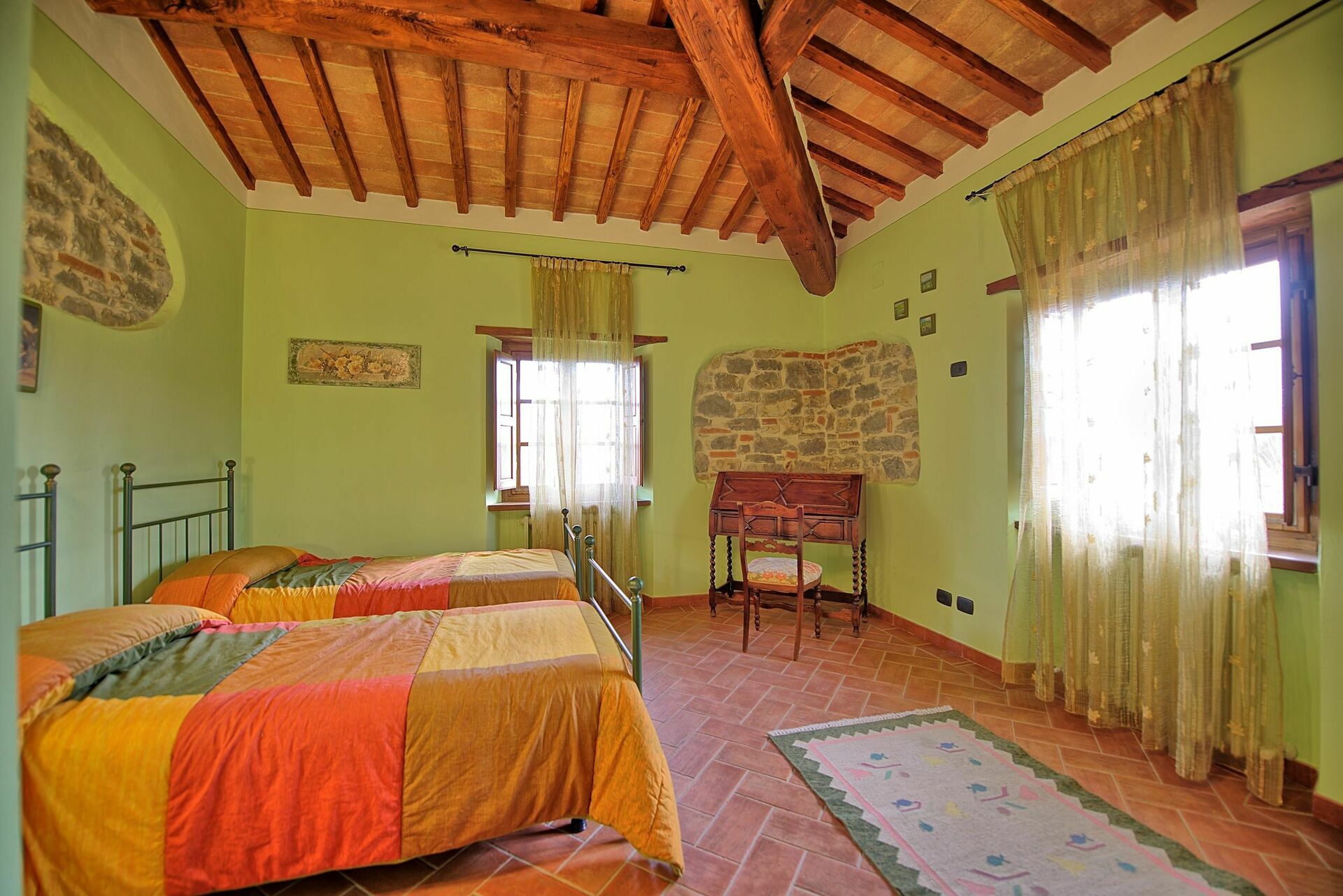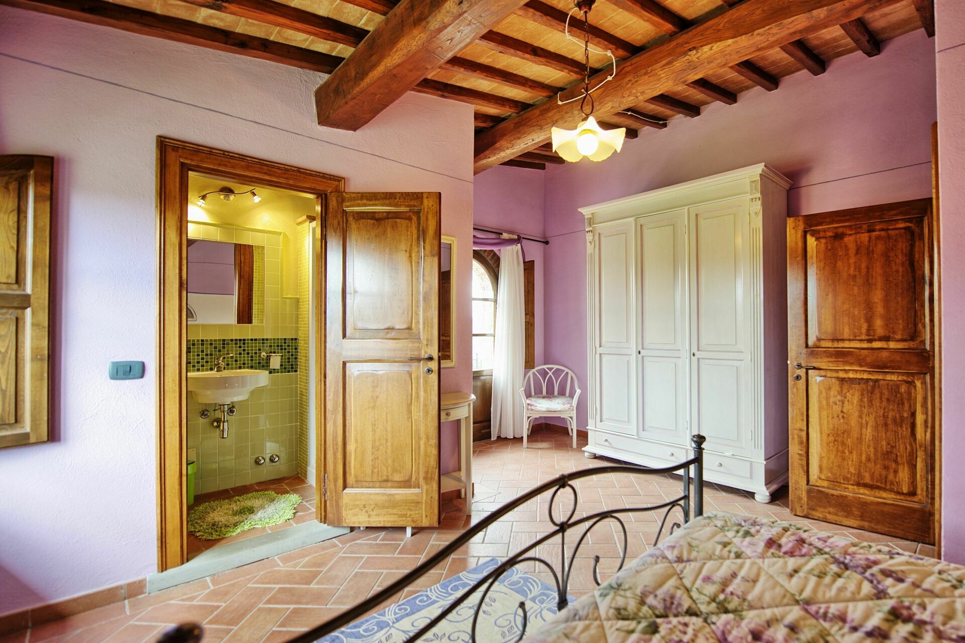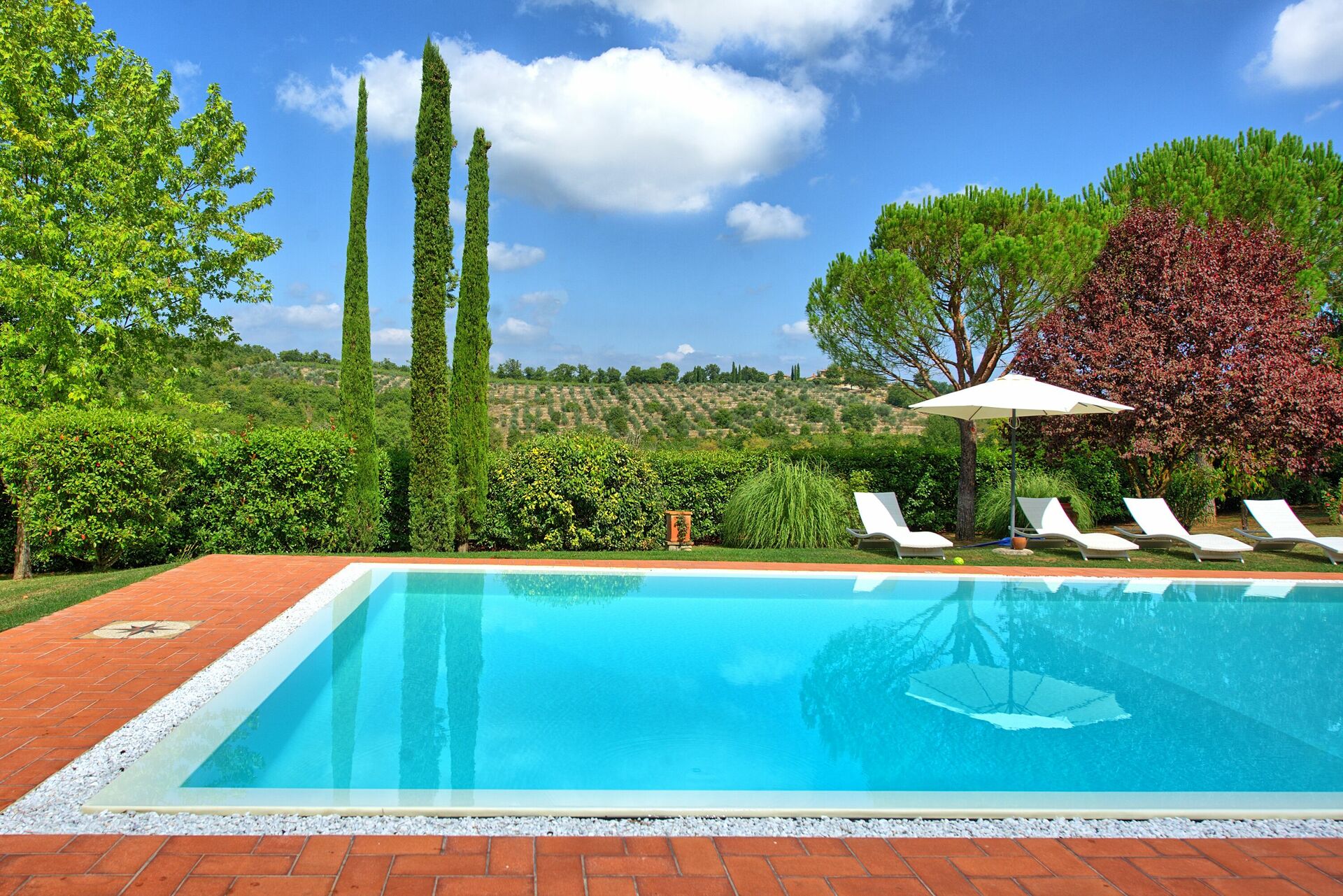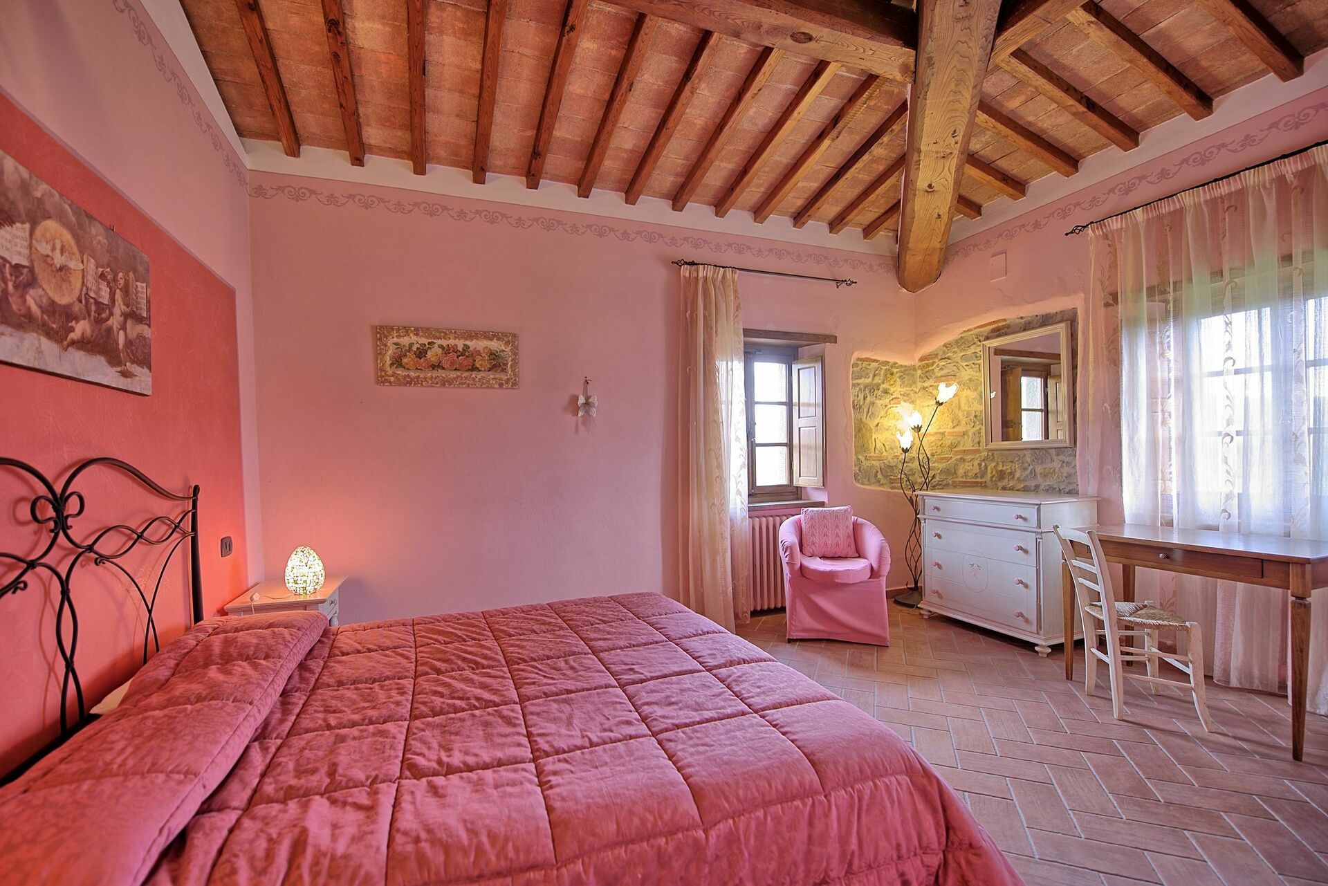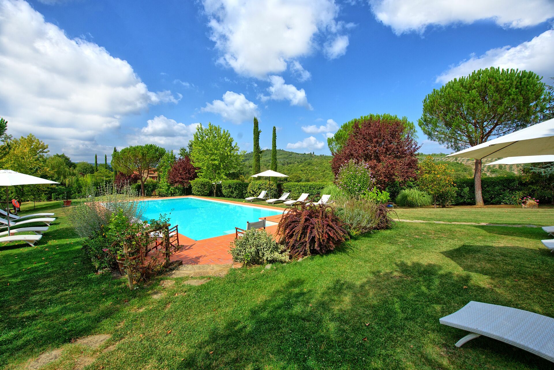 Villa for rent in Tuscany with private swimming pool, near the towns of Badia Agnano and Pieve a Presciano, just 25km from Arezzo. The property is fenced and the home is very spacious and welcoming.
