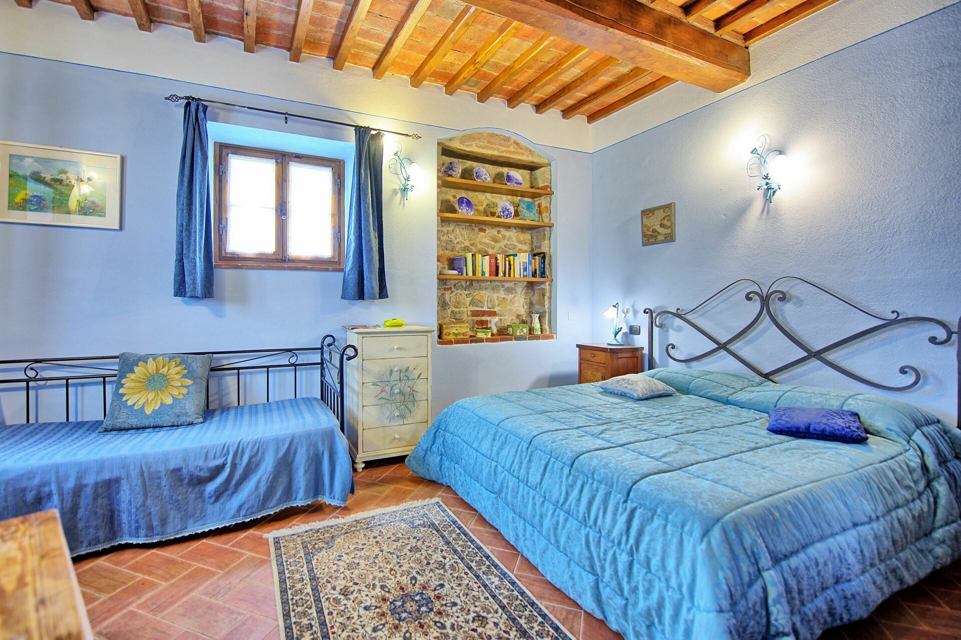 This Tuscan rental villa with a panoramic view and private swimming pool is a great base from which to explore the artistic beauty of the region: Arezzo, Siena, the Val d'Orcia, the Chianti wine area, Florence, San Gimignano, Volterra, etc.