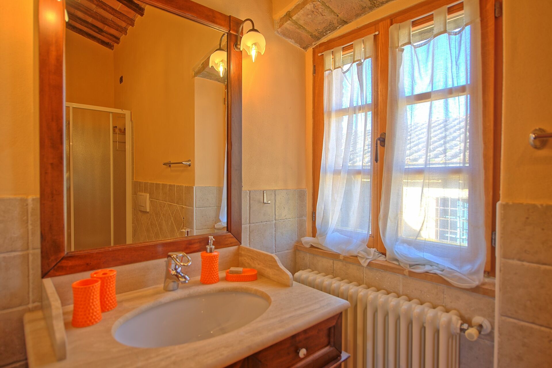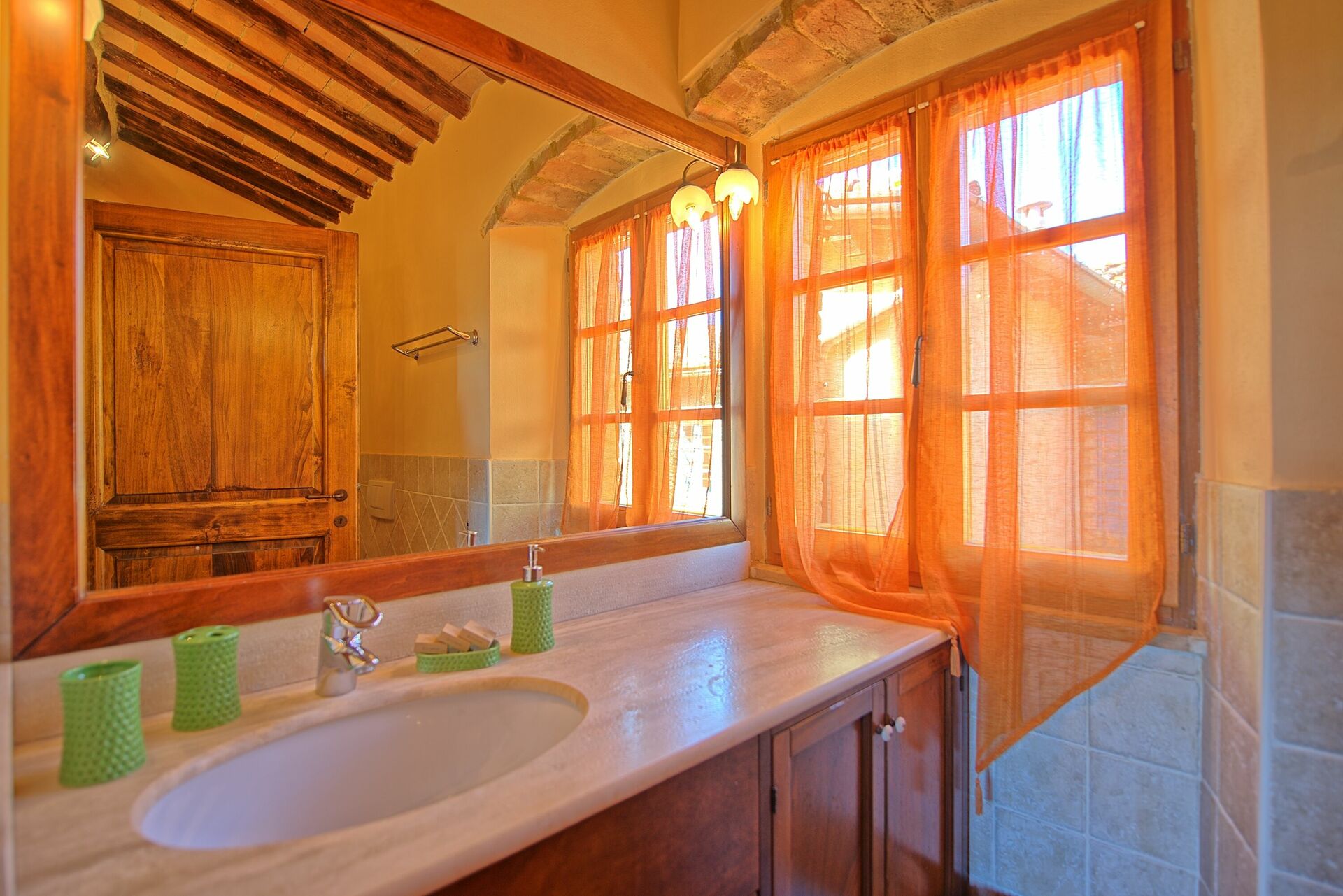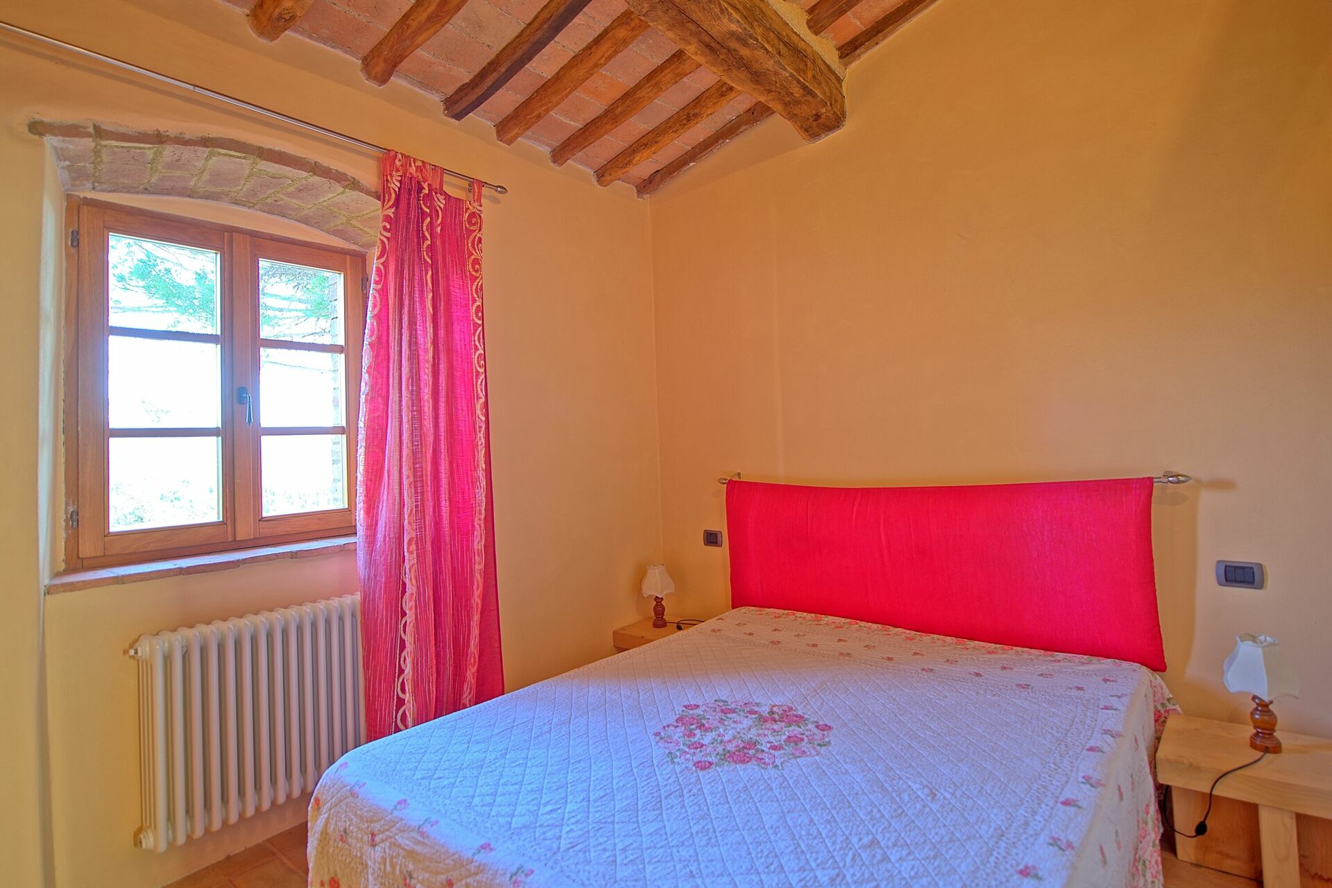 The grounds were beautiful and the location, pool and host were great, but the mattress in the master bedroom was extra firm, old and uncomfortable. The beds in the other rooms were somewhat better. Also, the curtains in all the bedrooms were very sheer material that let in all the light and prevented sleeping in the morning. The AC worked well in the bedrooms, but there were large cracks under the main exterior doors that let in mosquitos and even a lizard. The winery on the property was great as was their olive oil. The kitchen was nice and the property had a peaceful, rustic charm.