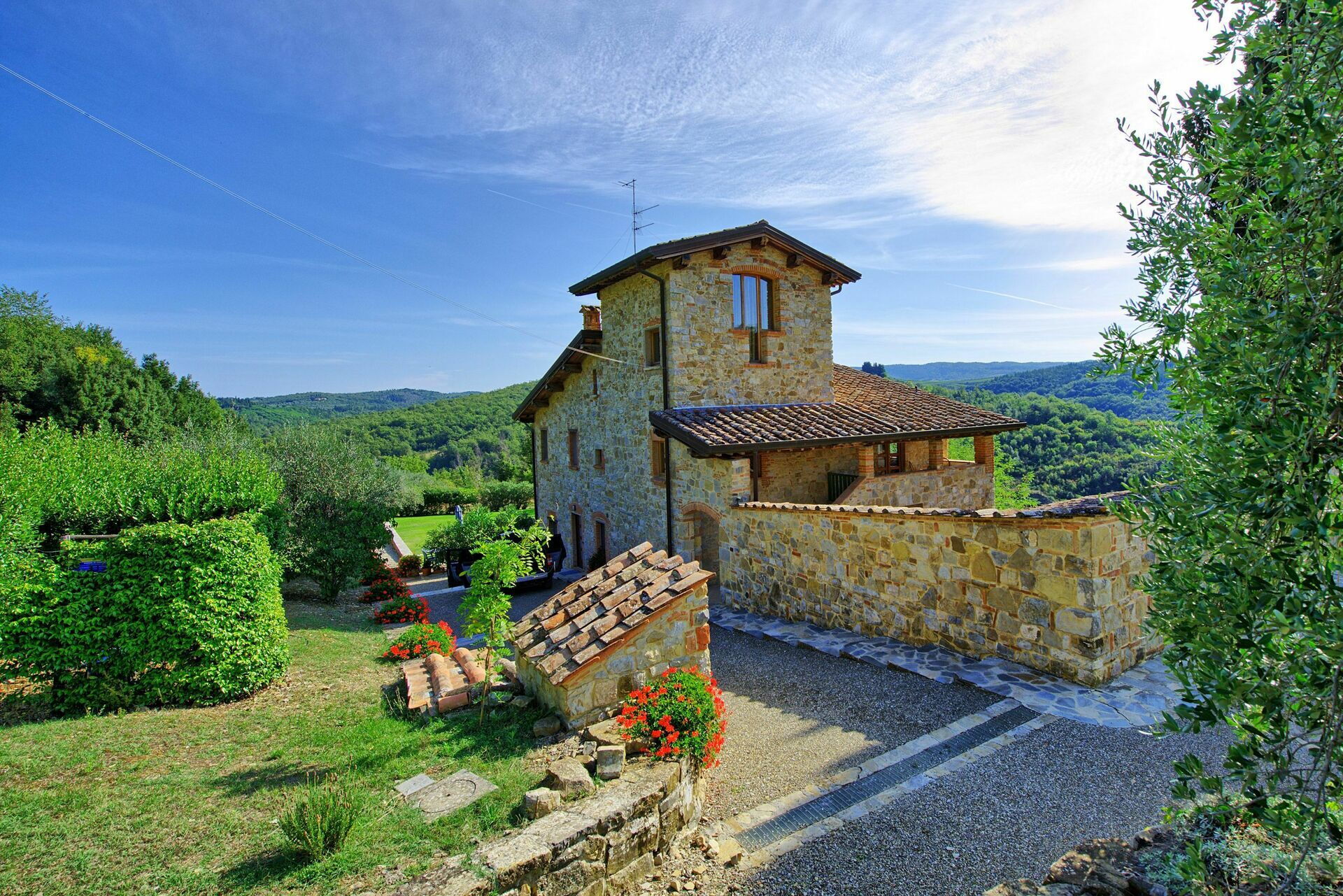 1st Floor: living room (Satellite TV) with fireplace and access to a small, private furnished terrace, bedroom with 2 single beds (air conditioning)