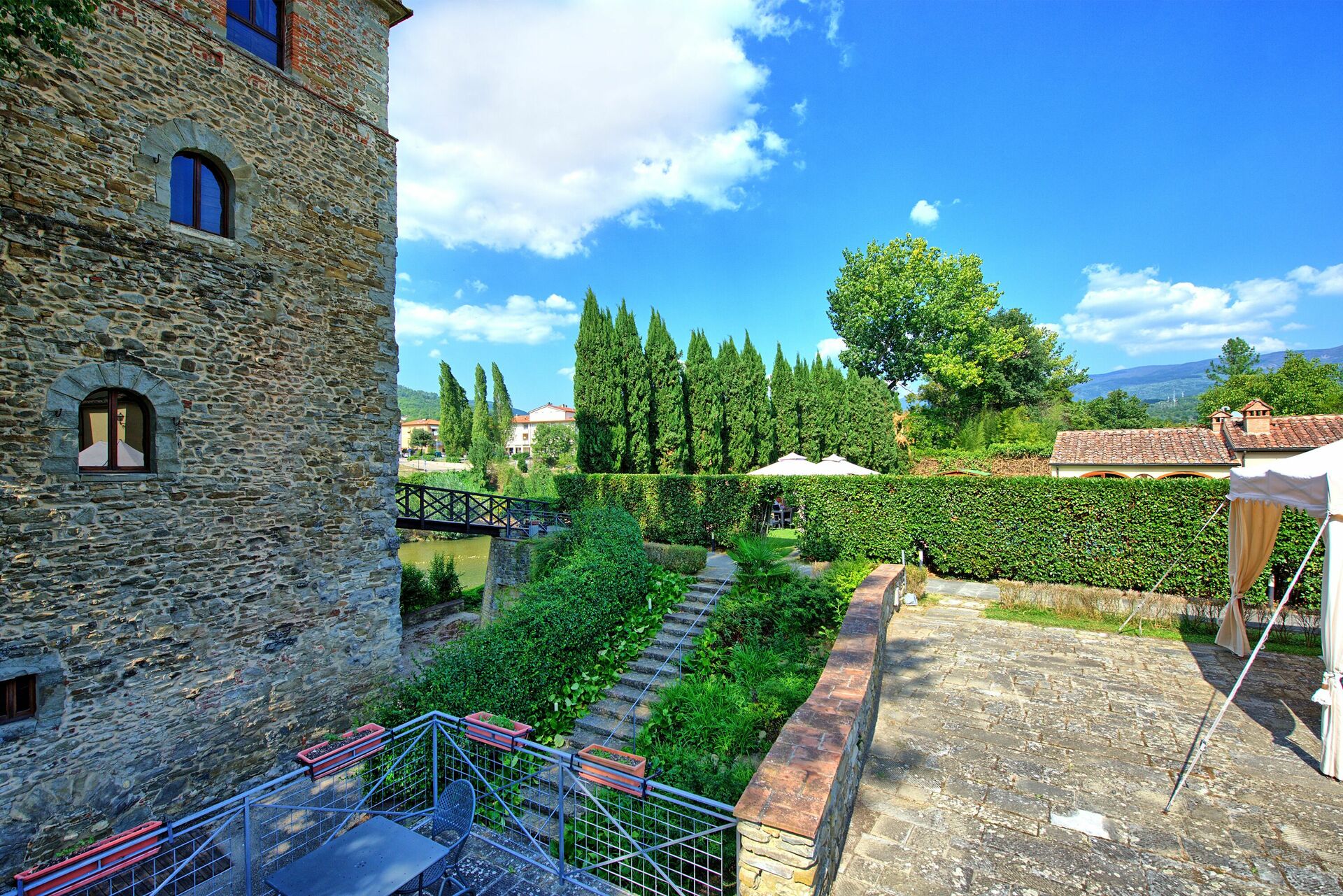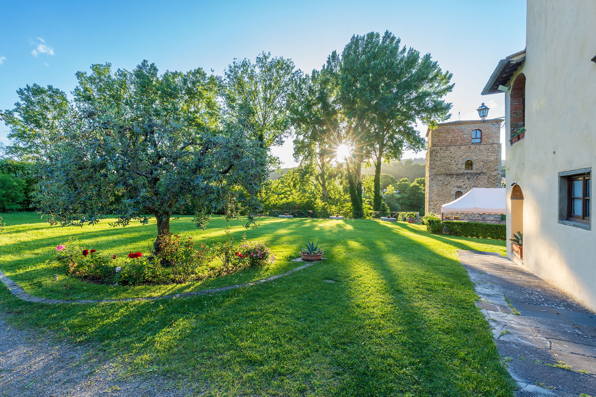 The garden is partially paved and offers a large lawn with tall and flourishing trees. The Arno River (which springs about 50 km above) is reachable on foot from the garden and offers a beautiful landscape.