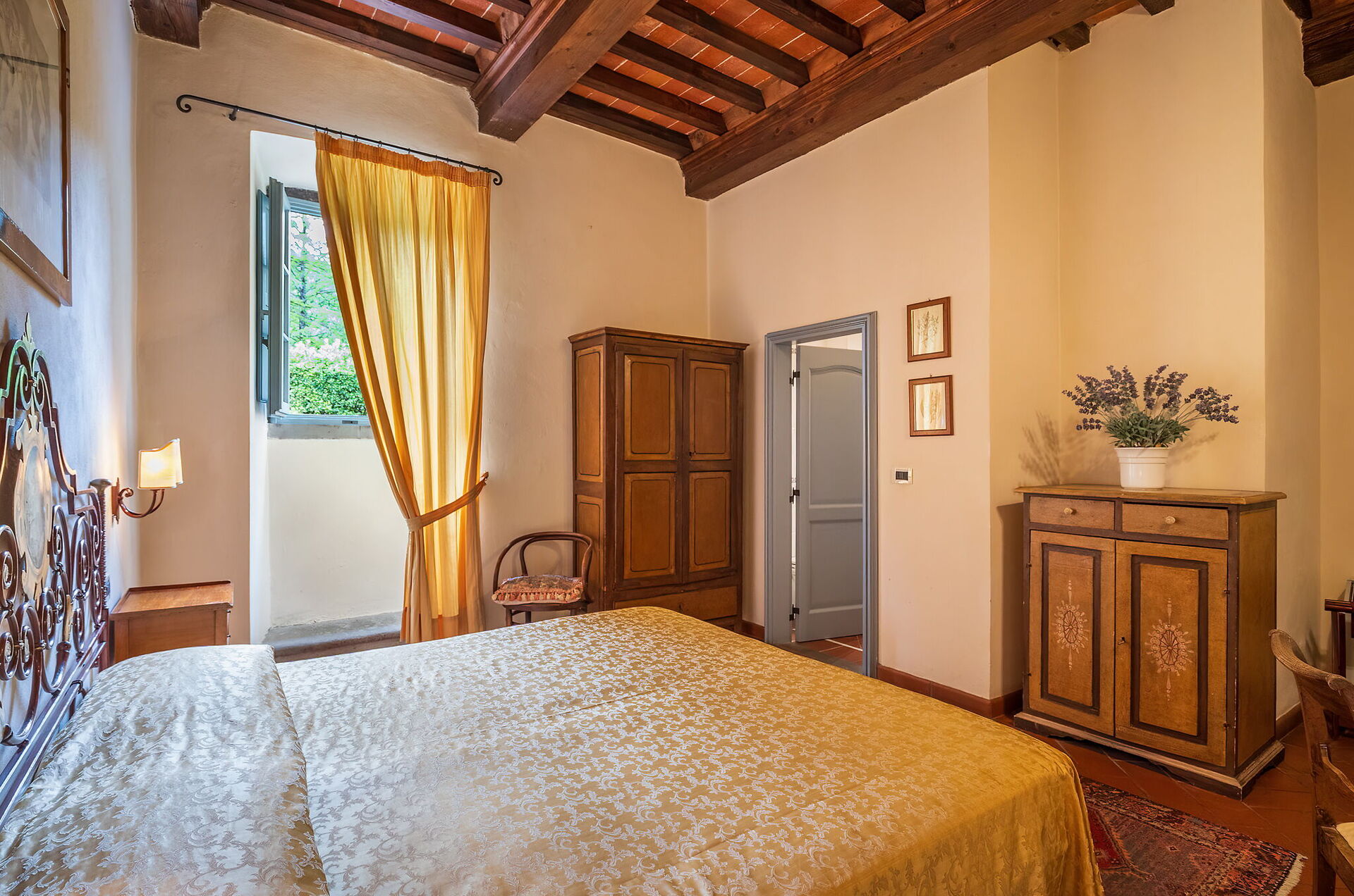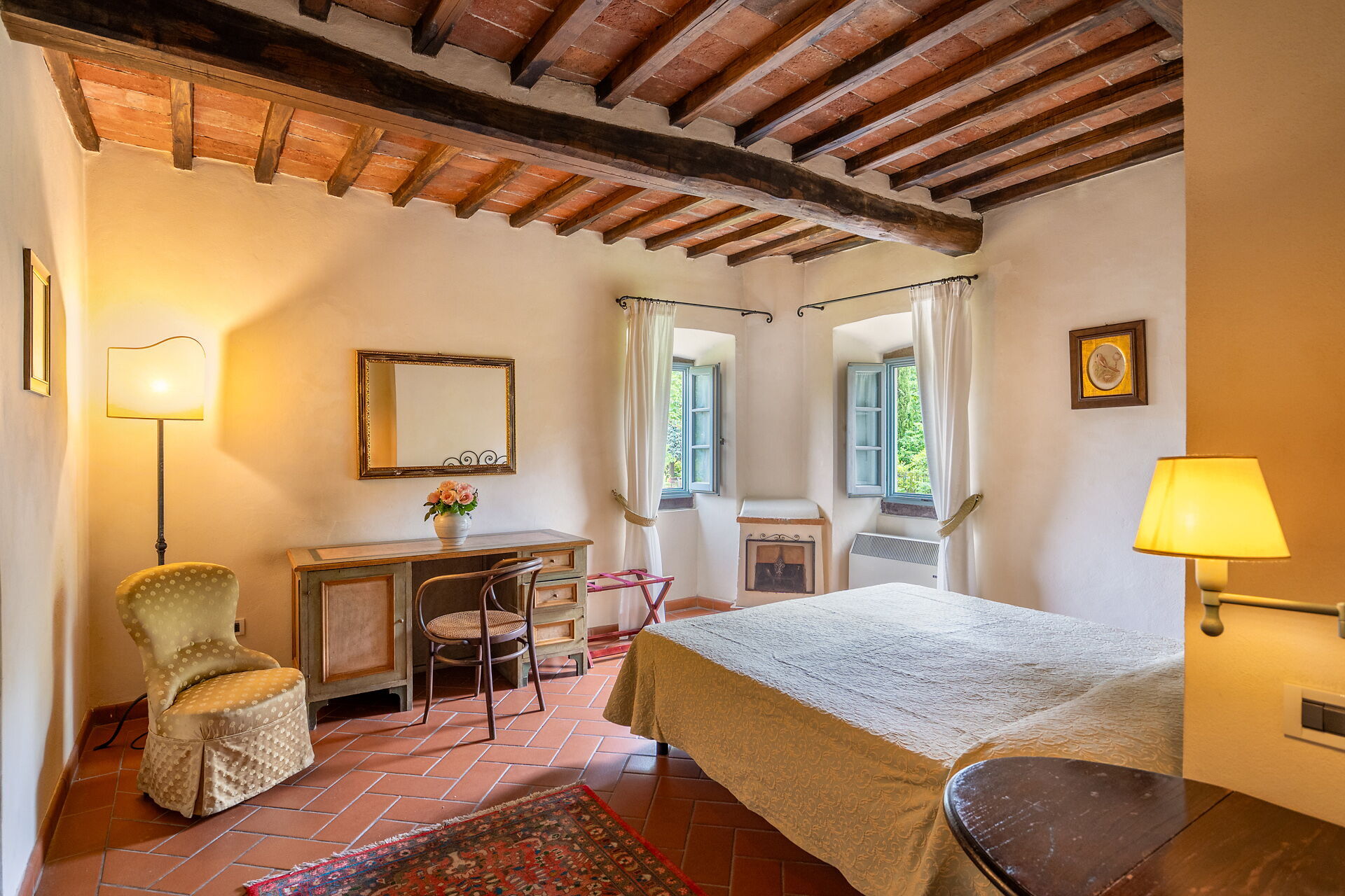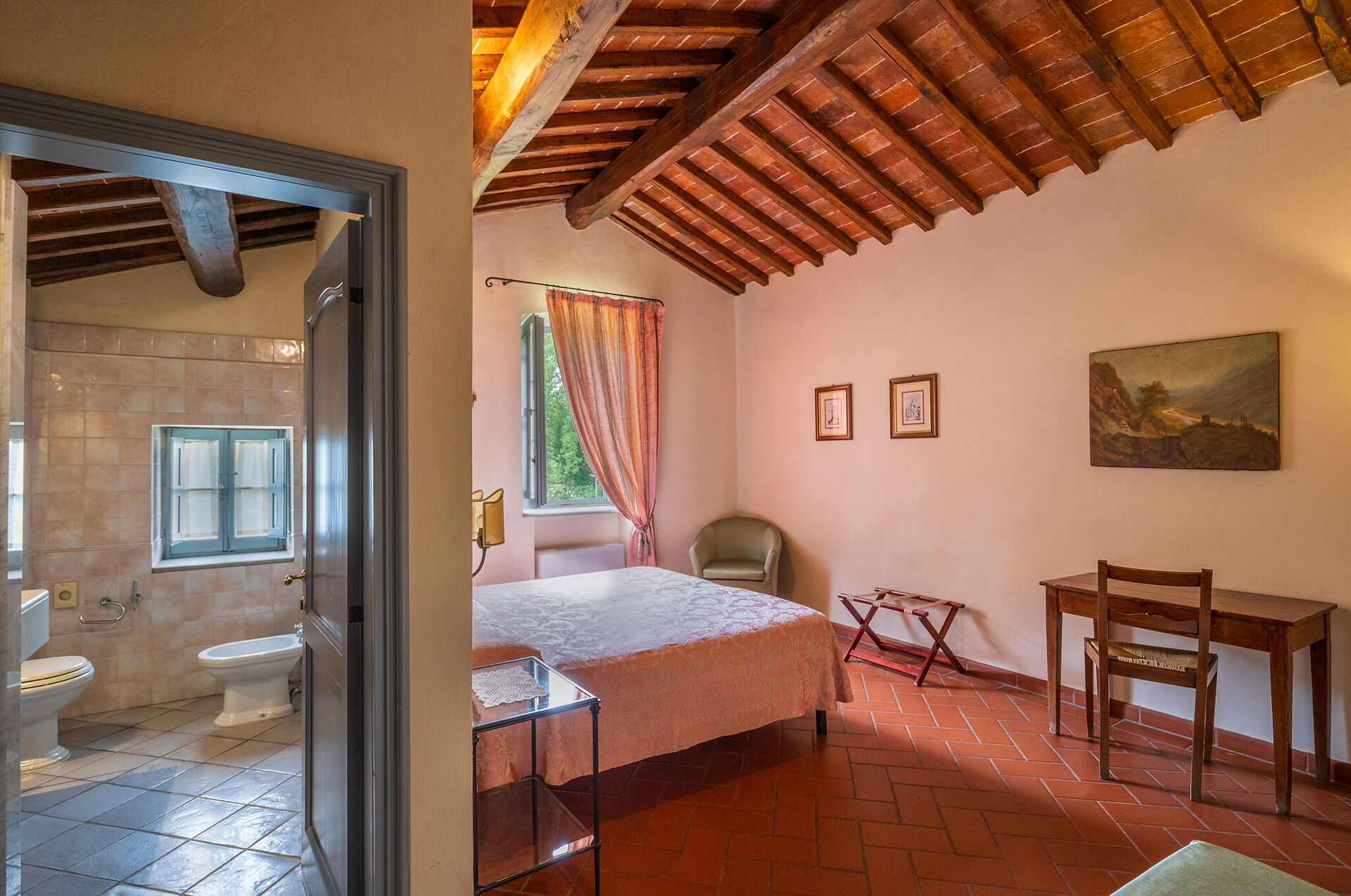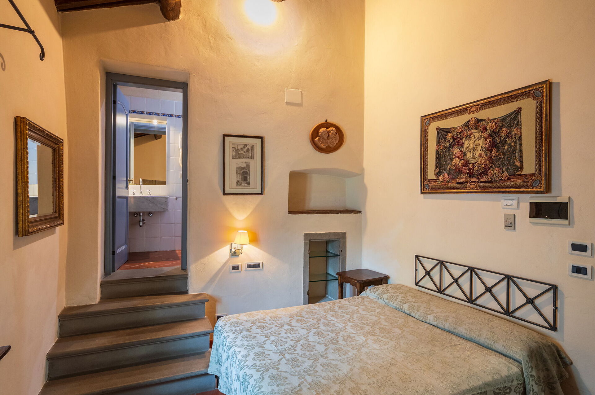 Ground floor: suite with entrance from a panoramic terrace with view over the Arno. This suite is composed by a double bedroom with en-suite bathroom with bath tube and shower.