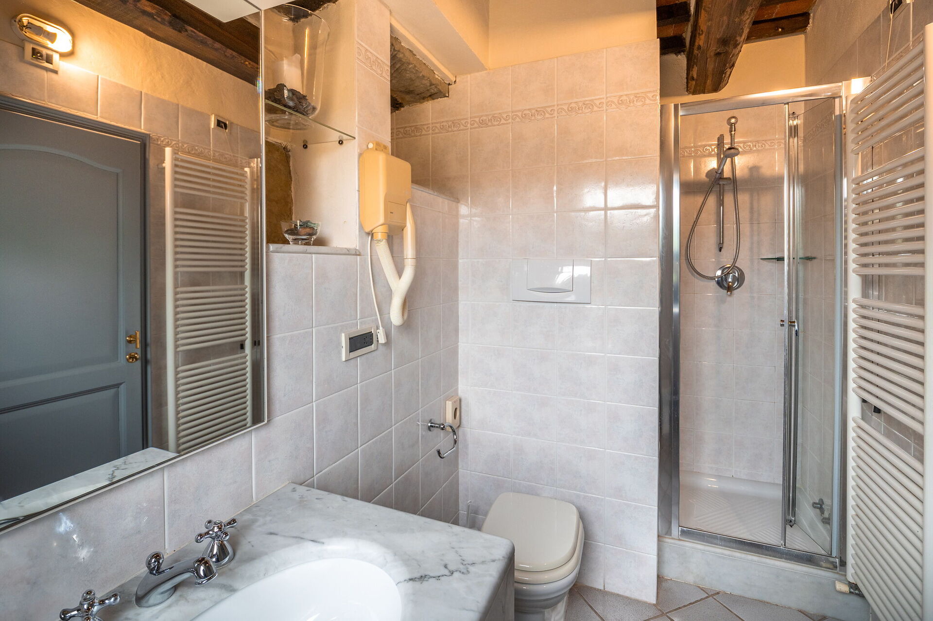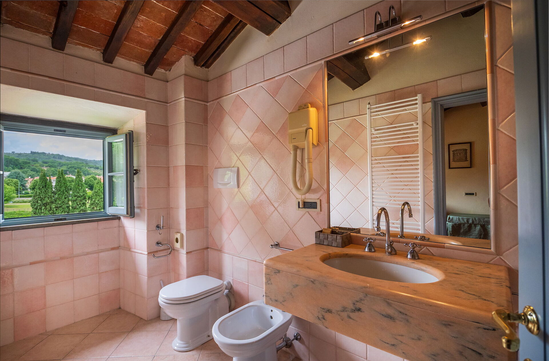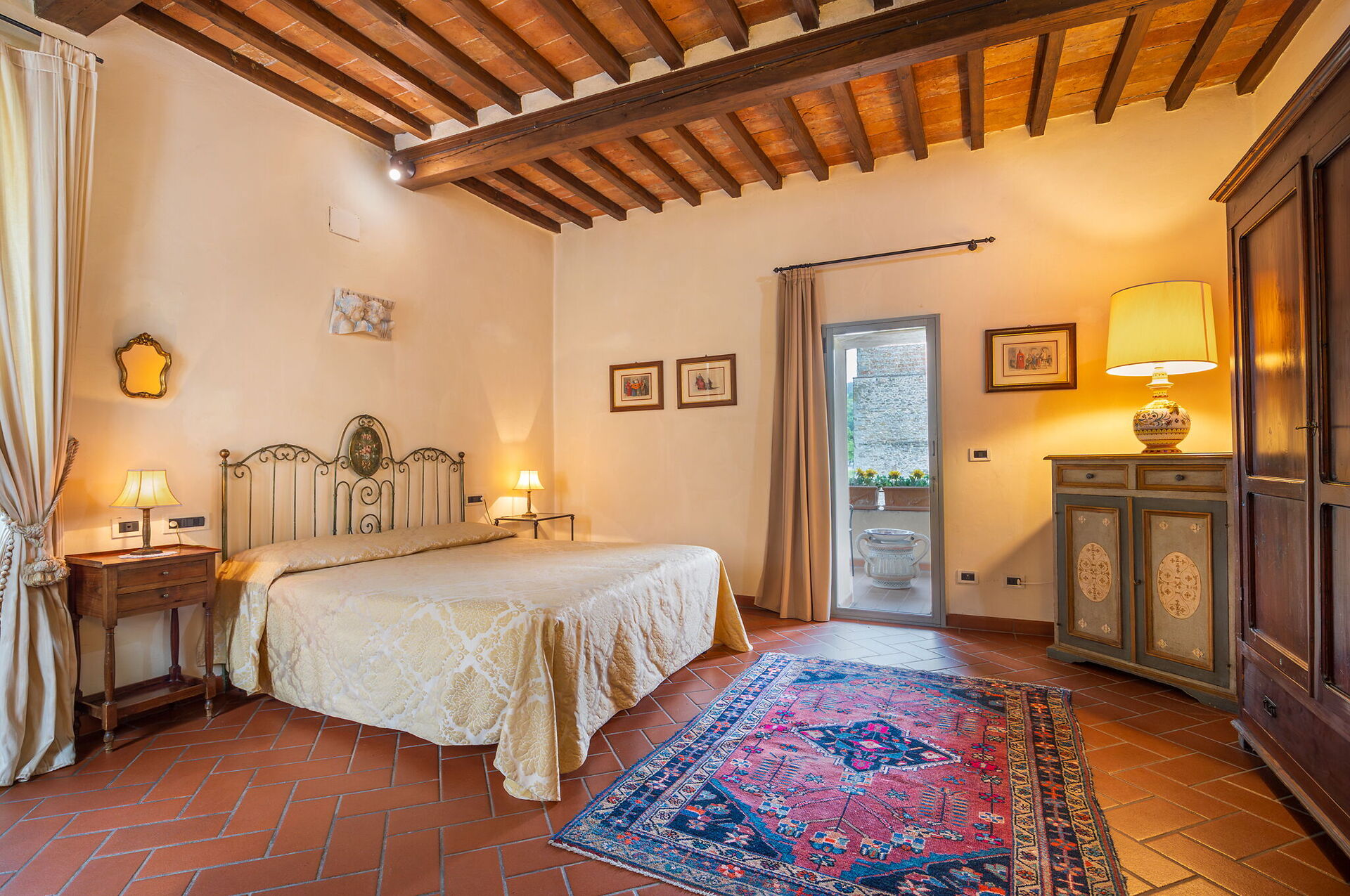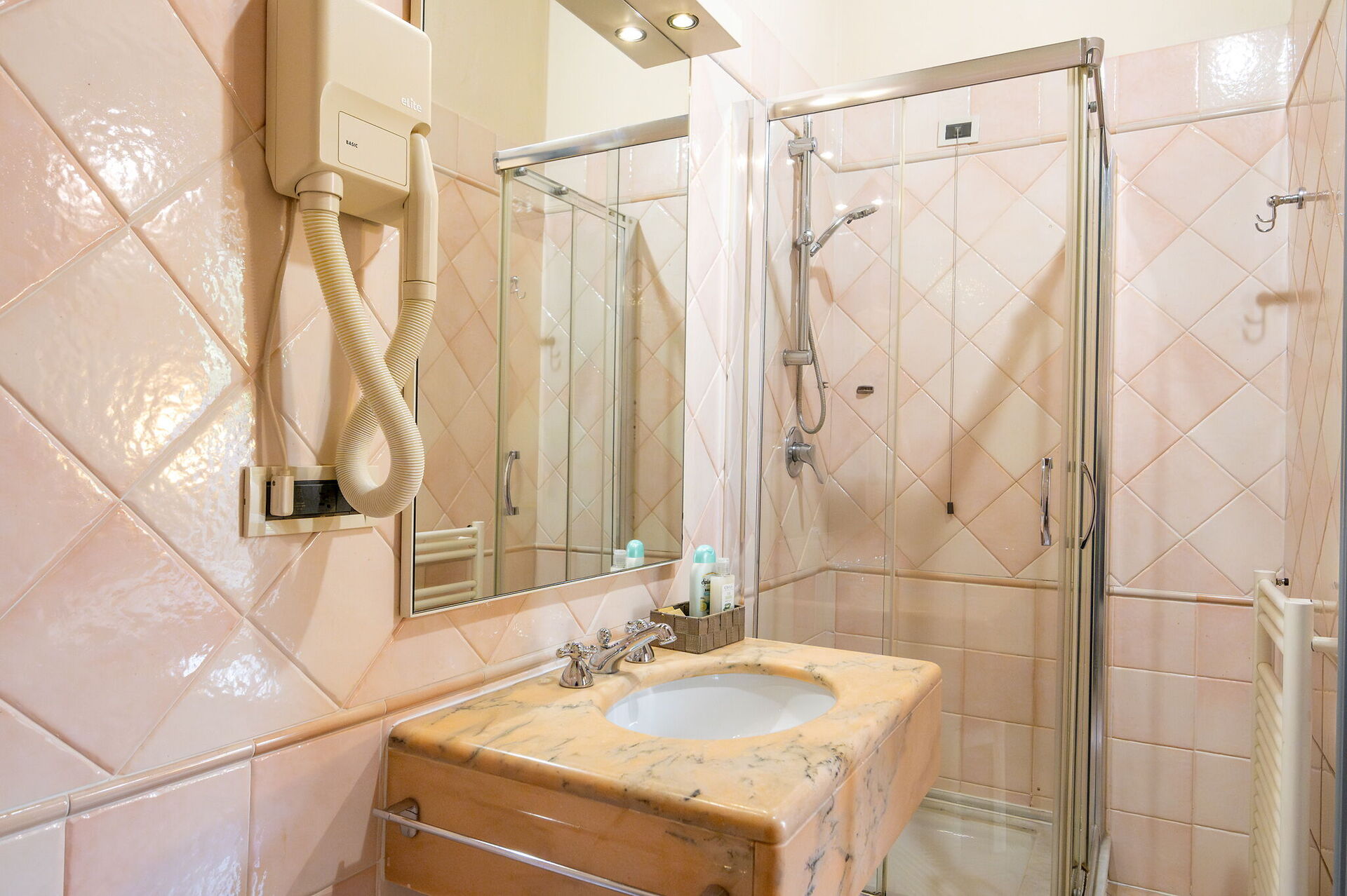 Ground floor: suite with entrance from a panoramic terrace with view over the Arno. This suite is composed by a double bedroom with en-suite bathroom with bath tube and shower.