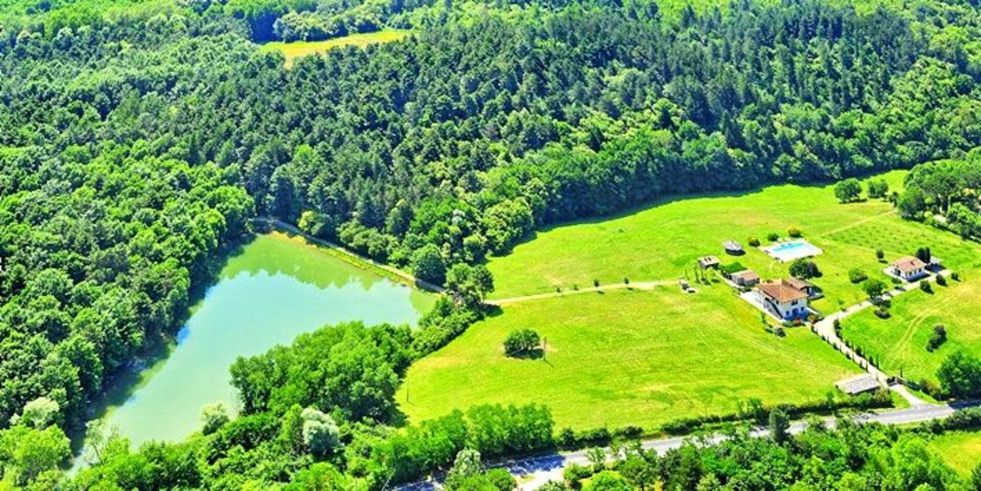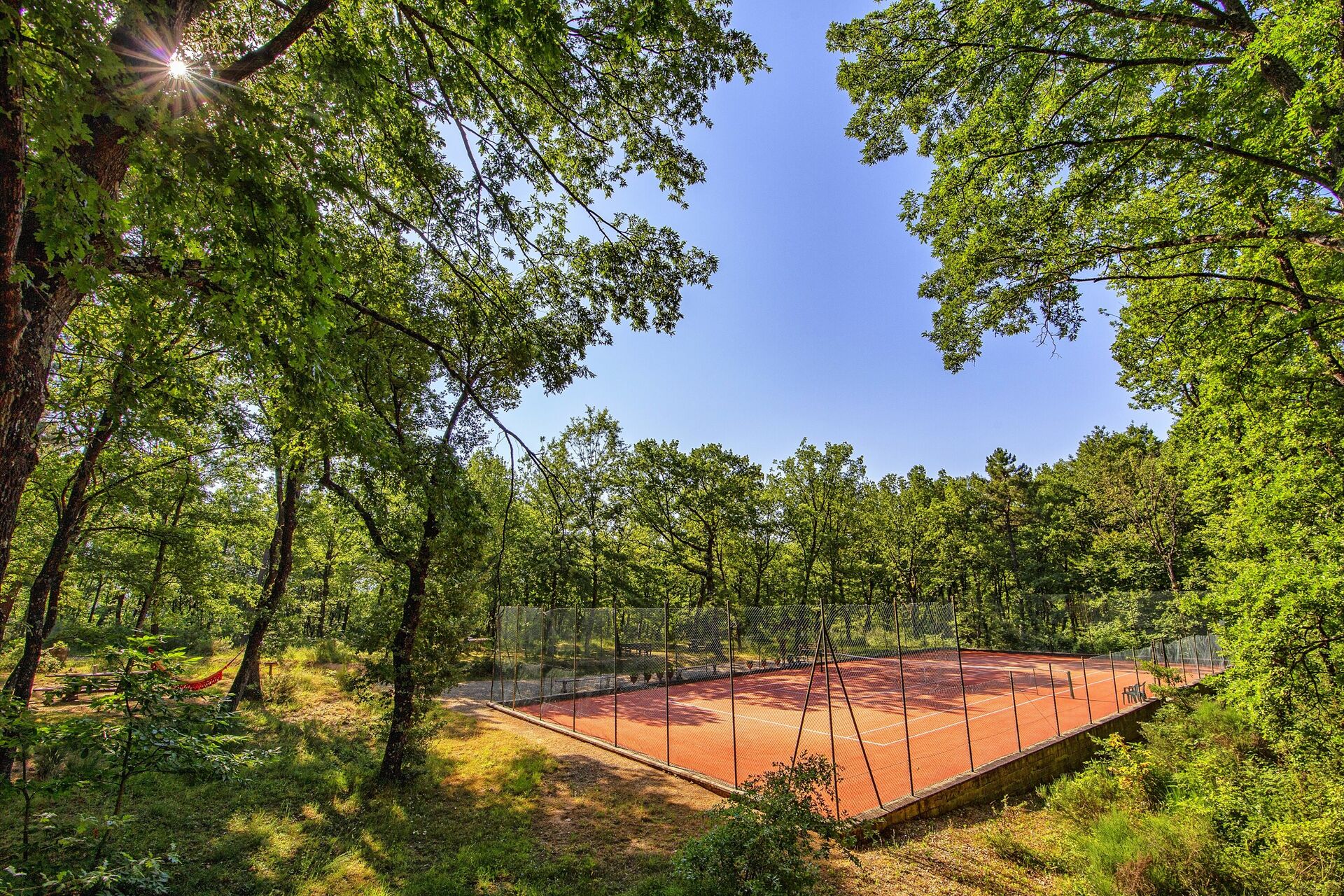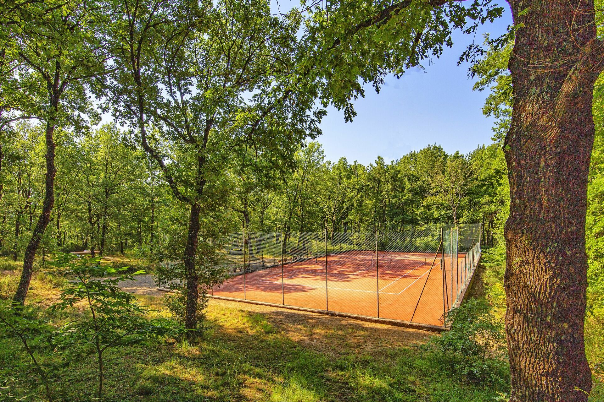 The farm is situated next to a large dense wood, and here there is a natural footpath which permits guests to reach the tennis court and lake.