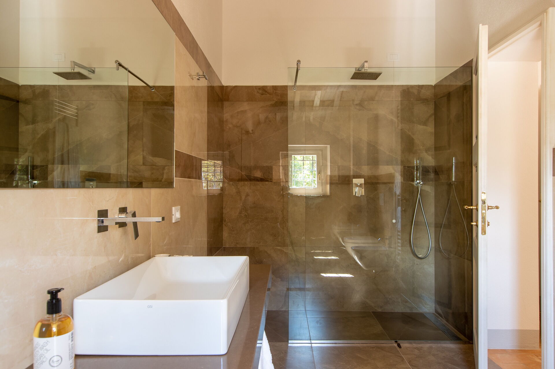 First floor: 2 bedrooms with king size bed, each with air conditioning and private bathroom with shower; 2 double bedrooms each with air conditioning and private bathroom with shower.