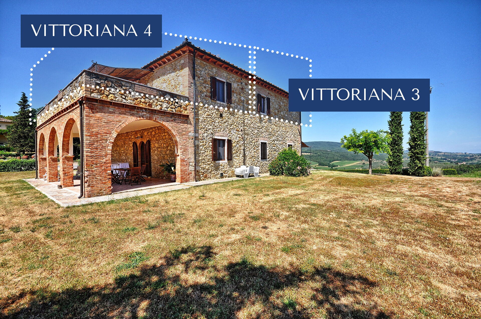 The estate offers 2 restored farmhouses, a manor house occasionally occupied by the property owners and a nice shared pool (approx. 100 m from the units Vittoriana 1, 2 and 150 m from Vittoriana 3 away).