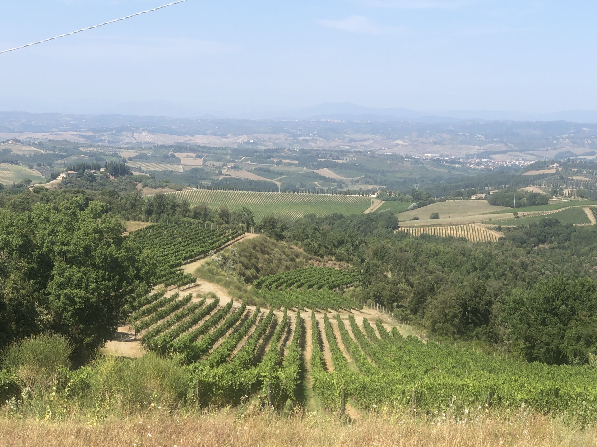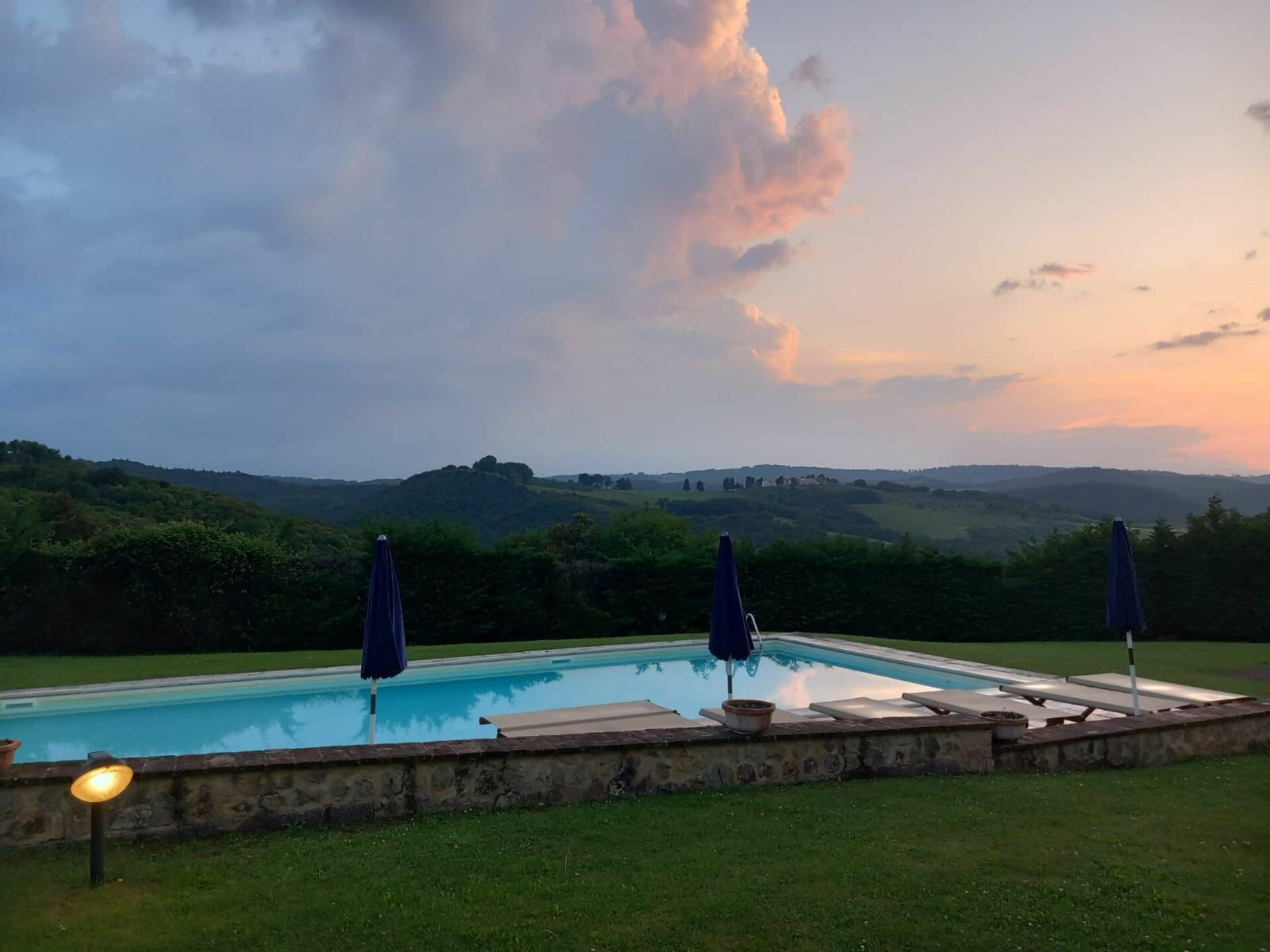 Pool is great. Rooms comfortable and each has an en suite. No fight over showers! Great spaces, nice to have a BBQ Rosemary and bay leaves at your doorstep to add to your recipes. Beautiful view from outdoor dining area. Well worth the walk up the road to watch sunset over the hills. Property in need of some minor care, a bedroom door doesn t close easily, noisy clicking AC in a few rooms, road could use a little grooming. We also recommend cutting hedges to enjoy beautiful view from outdoor dining area. Very accomodating owner, arrived as promised to open gate and show us around. We had to check out early and she was friendly and return to our call promptly to verify our stay had been satisfactory. loved walking up the road to enjoy view of vineyards such a pleaseure discover San Gimignsno wish we would have had time for a wine tasting up The road.