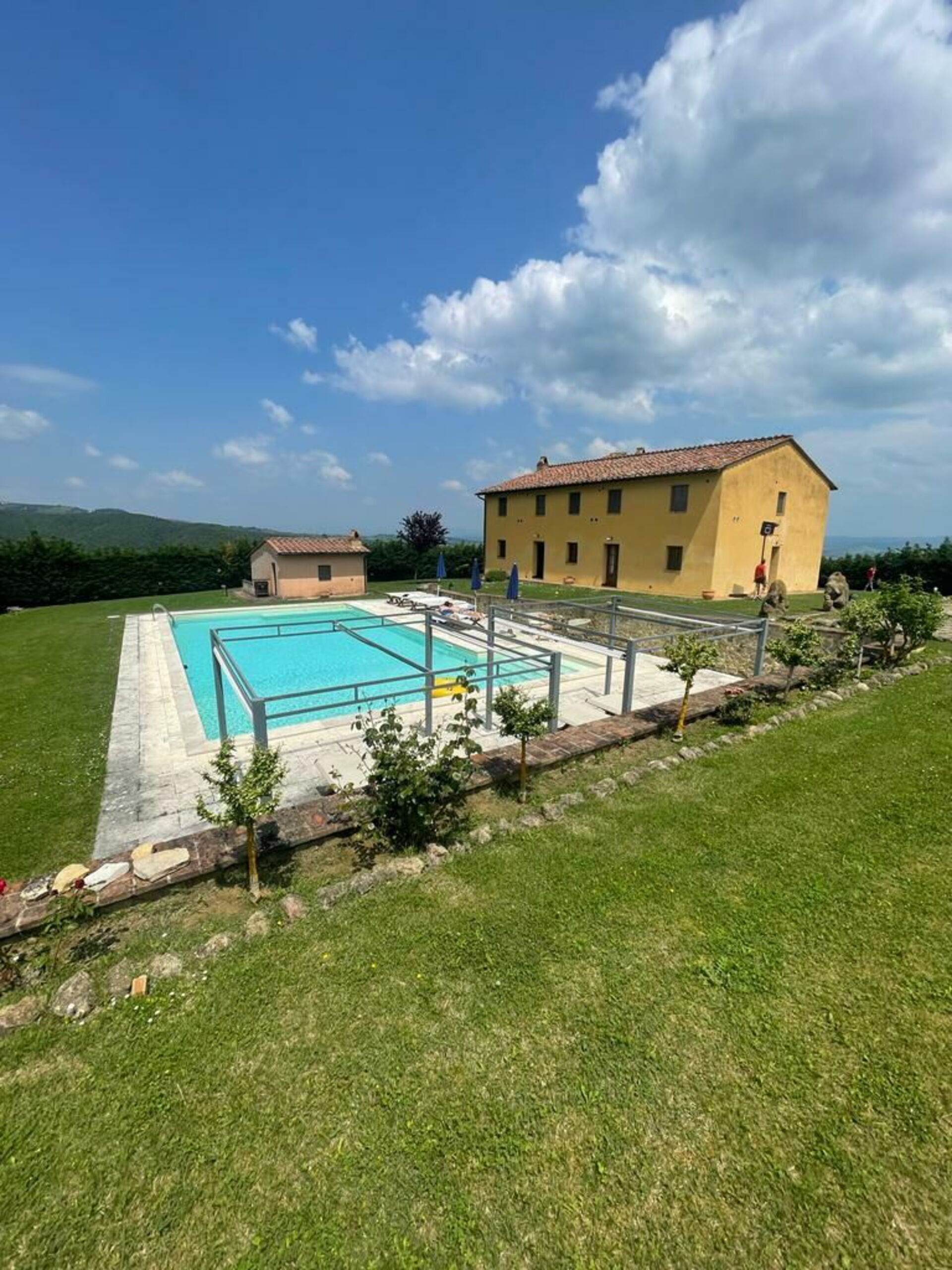 Although the Villa is dated, the amount of space in terms of sitting areas, bedrooms (7) and washrooms was amazing. There is also a separate building (as noted on the listing) which provided an additional bedroom, washroom, sitting area and kitchen -perfect for a couple. The fenced pool area was a hit with our grandchildren and adults and despite not being heated was still perfect for swimming. We received daily pool service, garbage removal and throughout our stay did not experience any issues. The most positive aspect of this Villa was the short driving distance to area attractions and towns such San Gimignano where we visited several times (a car is a must) with fabulous restaurants and shopping. The CO OP in town was great for picking up groceries. We visited several other beautiful towns and restaurants as recommended by Emma as well experienced the wines offered by the on-site winery. If anyone is looking for great space and privacy I would definitely recommend VILLA IL CAGGIO for your next vacation. Thank you to and Valentina from Posarelli Villas for your assistance with our bookings and to Emma for the on-site assistance.