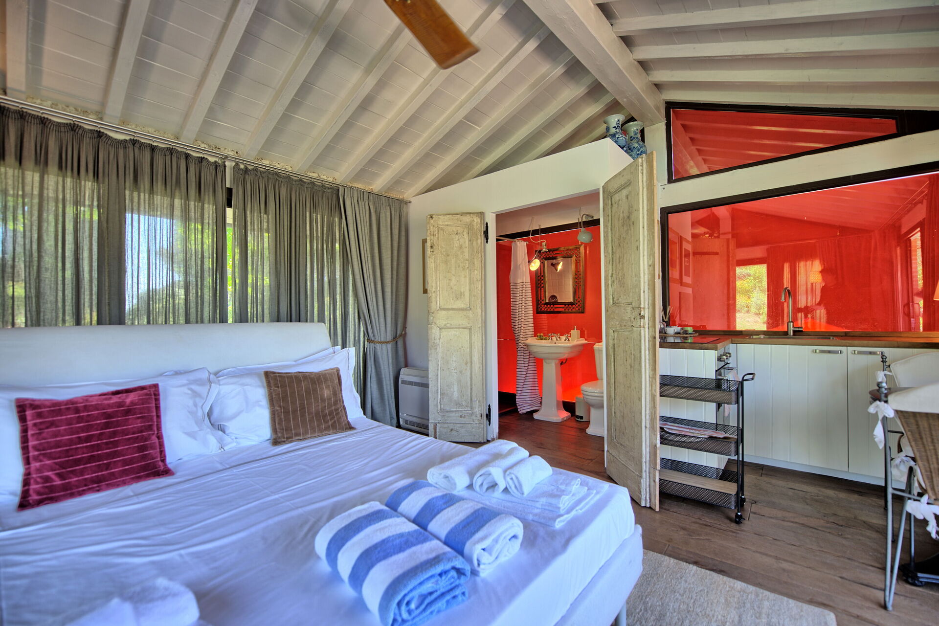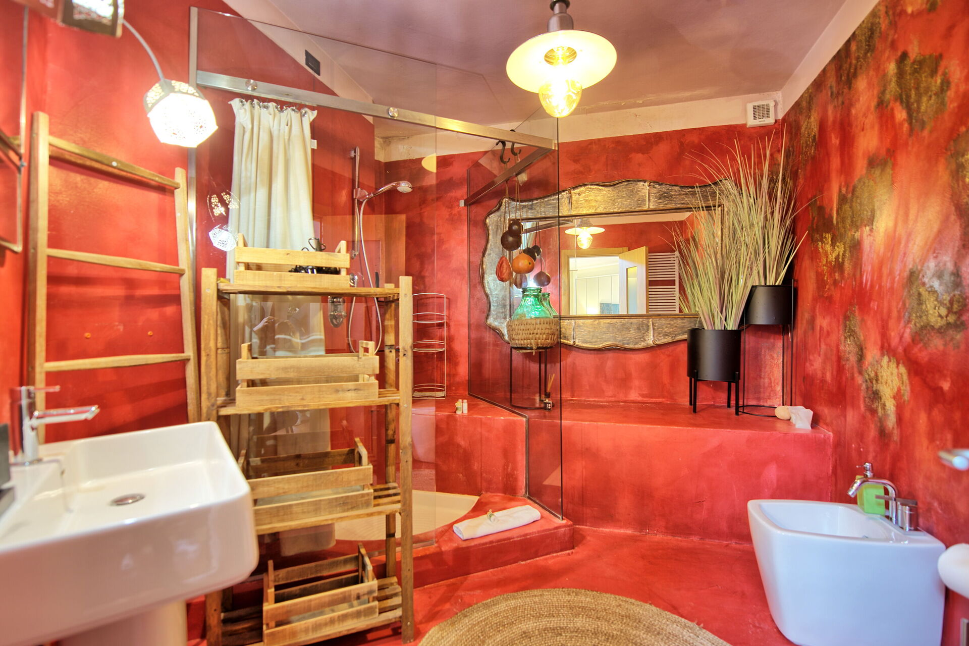 Ground floor: double bedroom (air conditioning and ceiling fan) with private bathroom with shower.