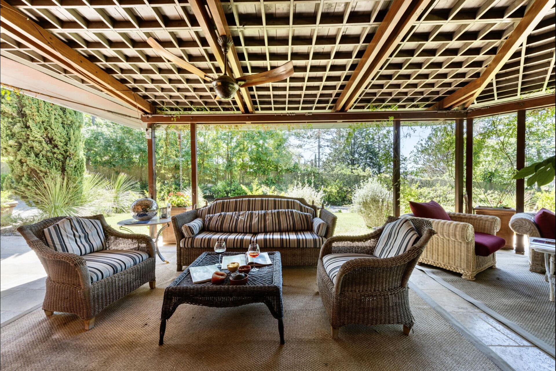 Spend time together with friends and family in the large, furnished outdoor area just outside the large French doors. With 5 bedrooms (4 in the main house and 1 in the annex), and elegant, well-appointed interiors, the property can accommodate up to 10 people.