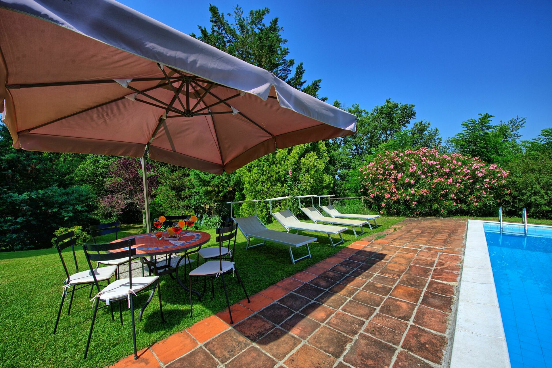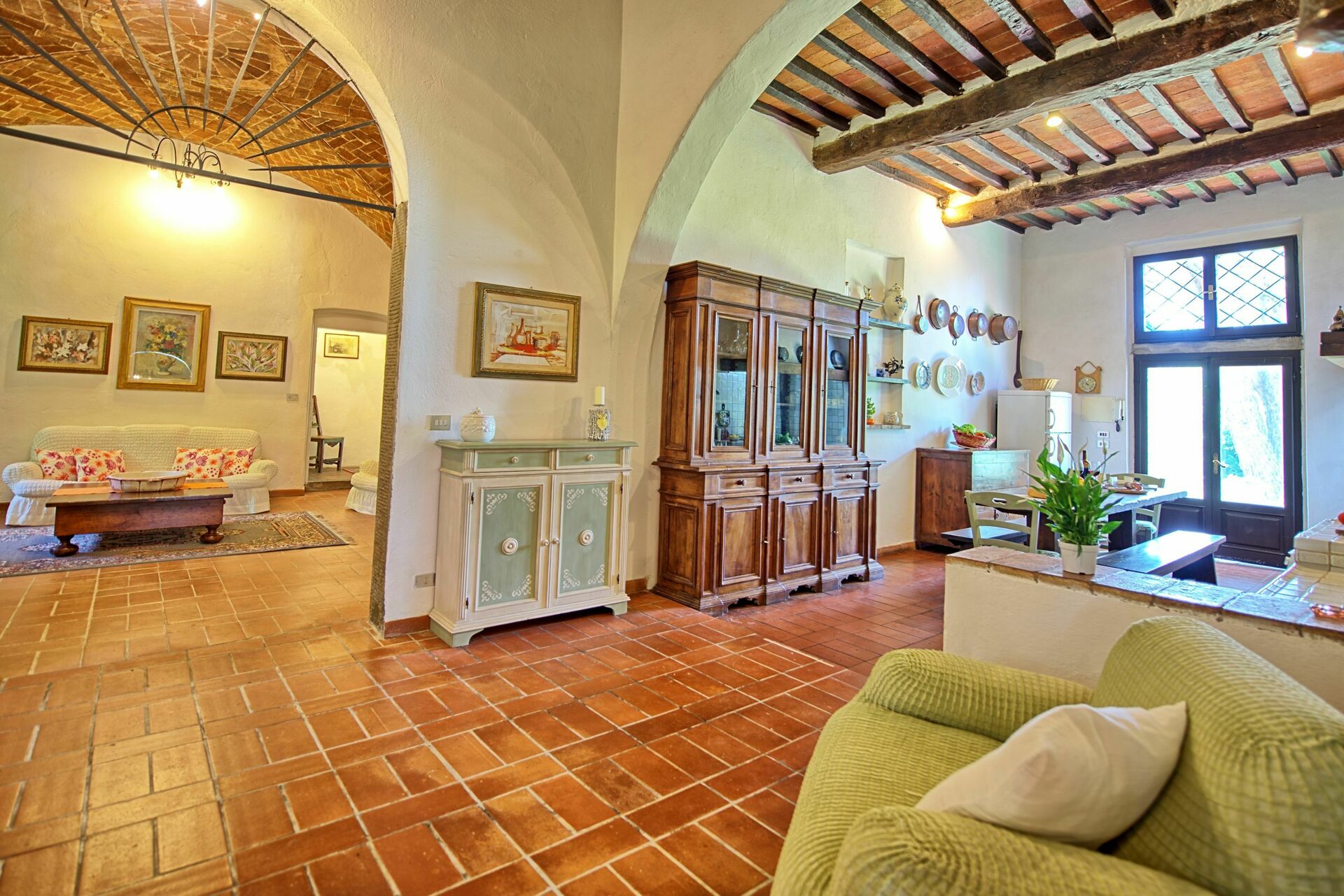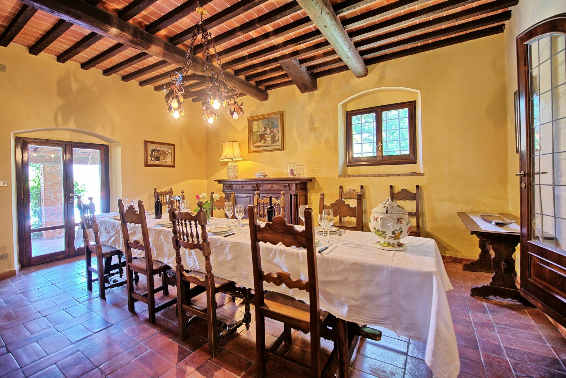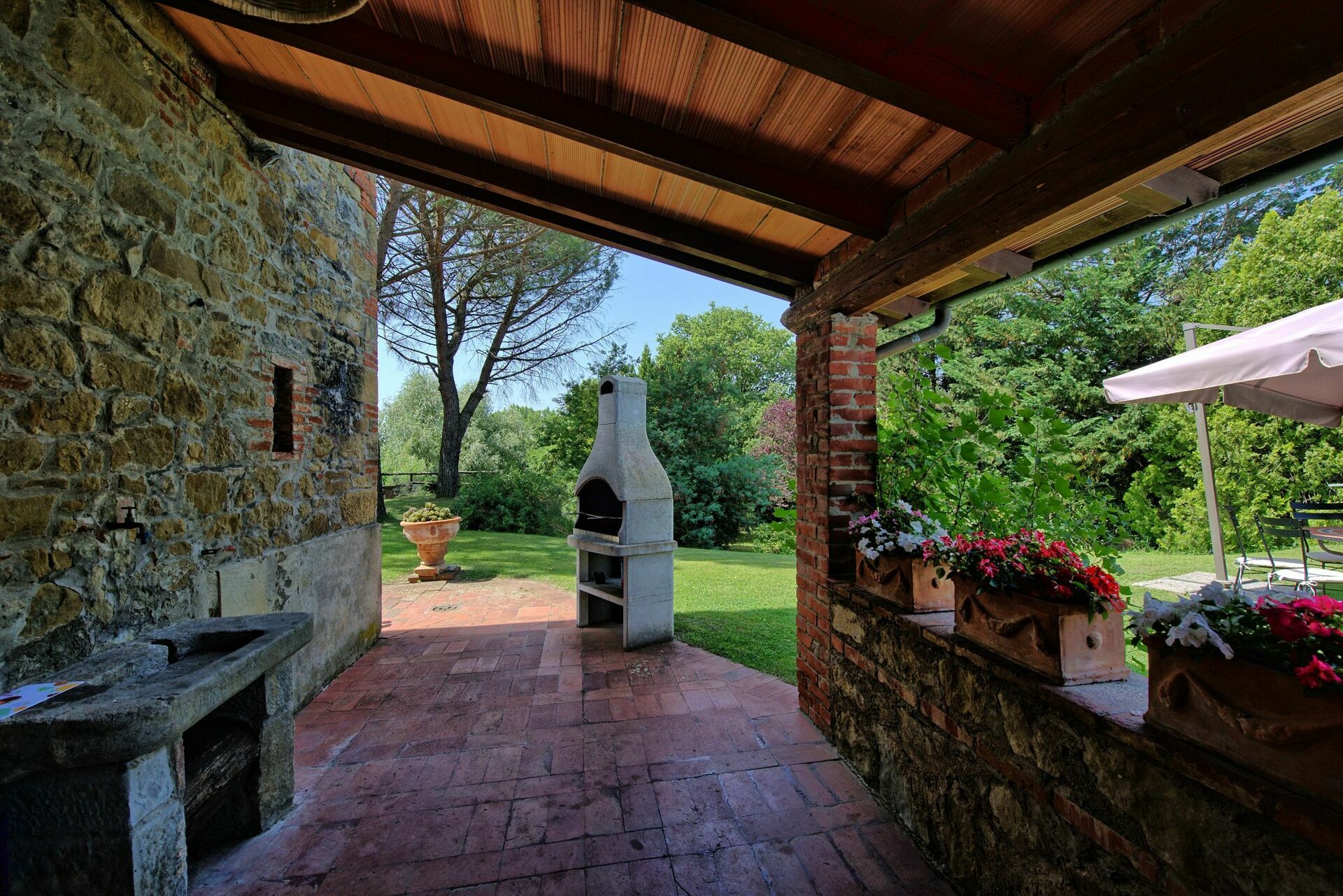 A nice large outdoor area furnished with a pergola is accessible from the kitchen and is ideal for al-fresco dining. Barbecue.
