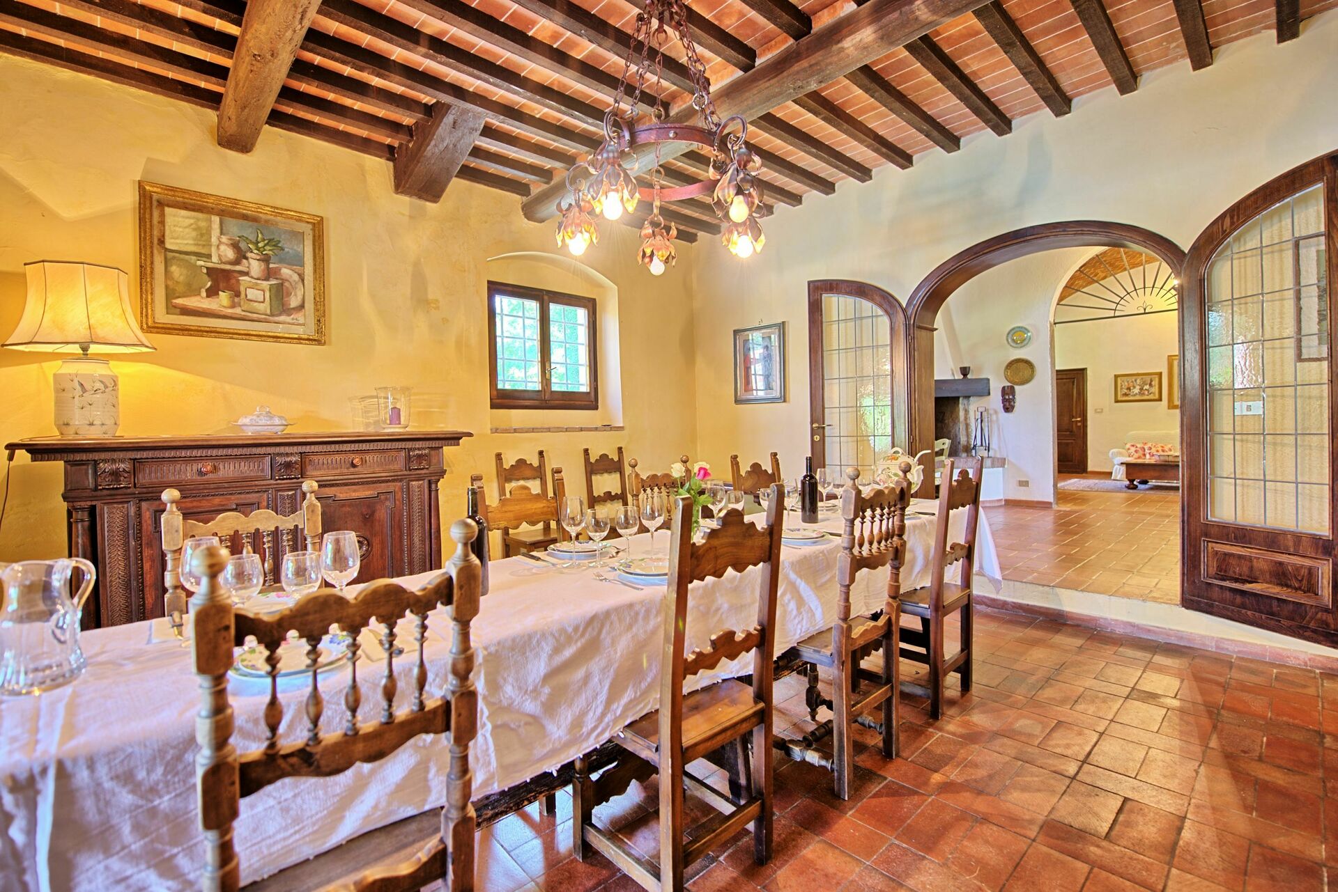 Villa Campogialli offers a beautiful pool to live hours of relax with family and friend, a spacious garden for the outdoors days equipped with a barbecue area which enhances your summer feasts, a lovely fireplace which makes the ambience warmer and comfortable on colder days. This property has been carefully restored preserving its ancient charm and original architectural features and has been turned into an elegant villa providing all modern comforts and offering beautiful interiors furnished with antiques.