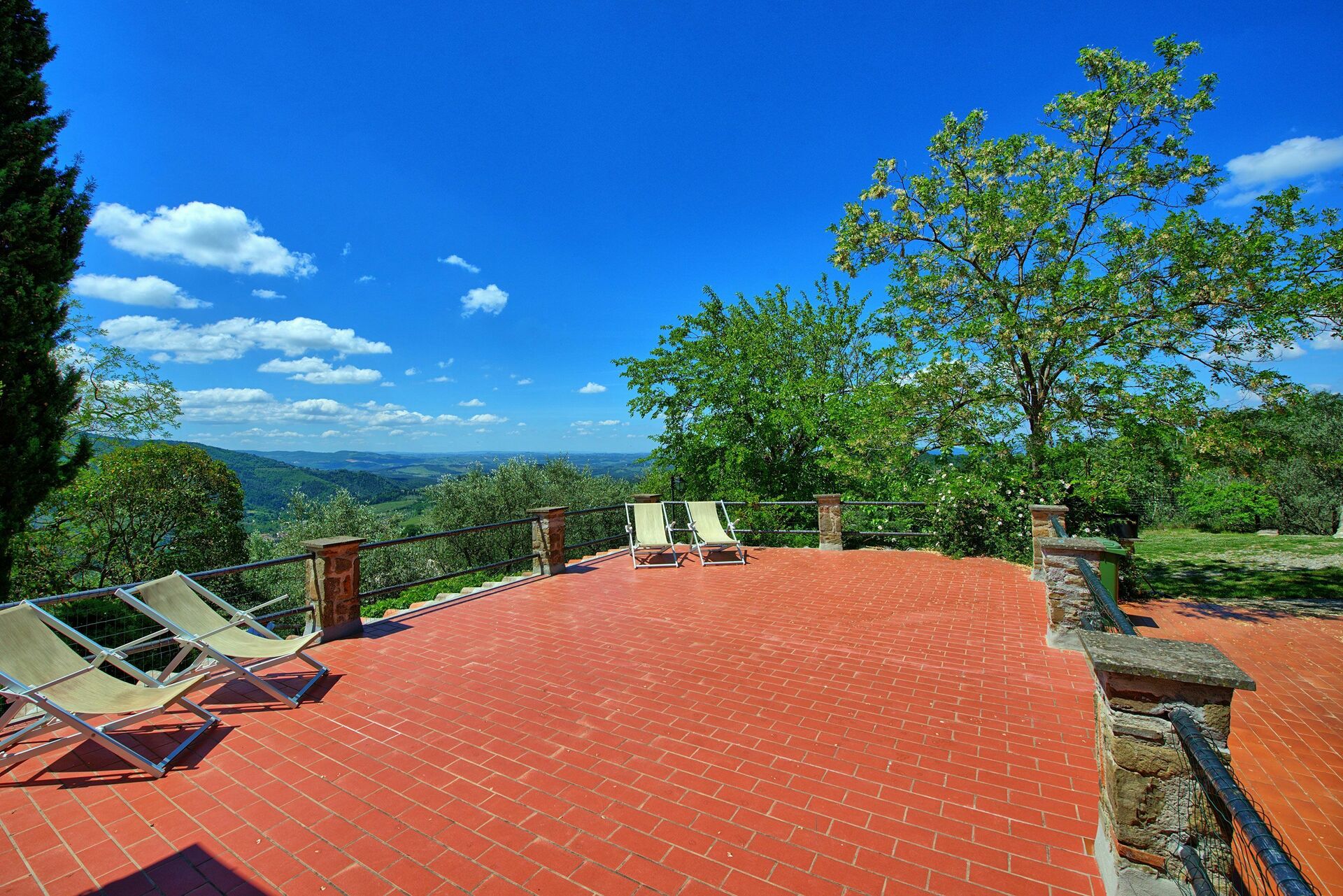 It features a spacious, private terrace with stunning views, complete with garden furniture.
